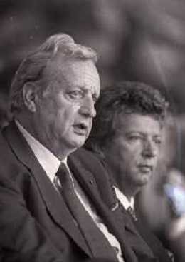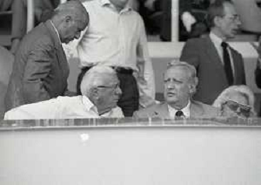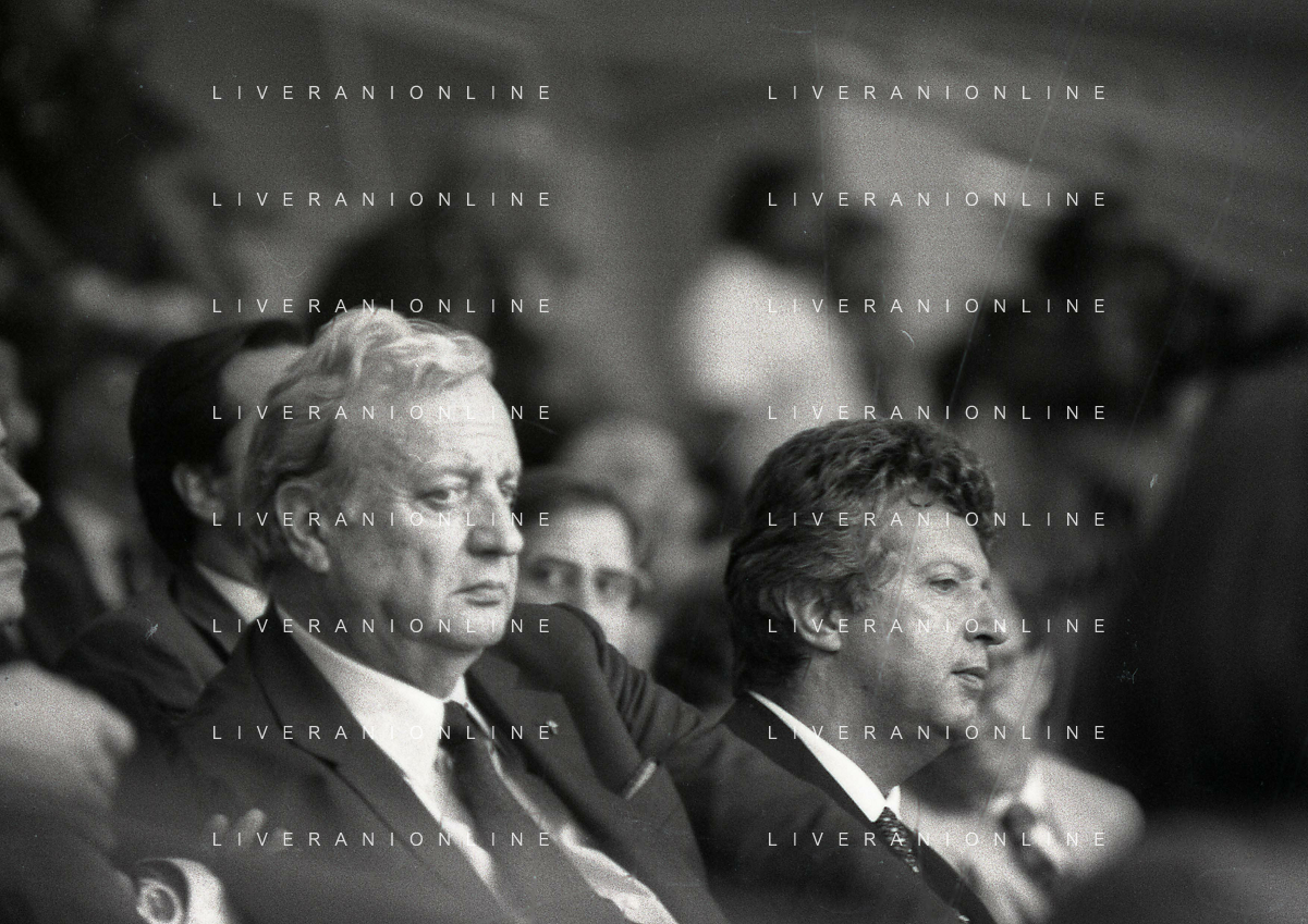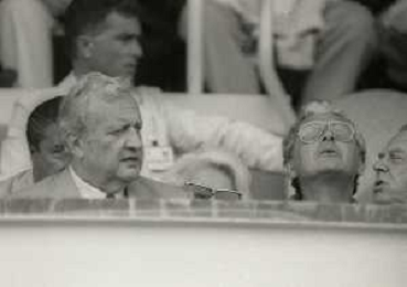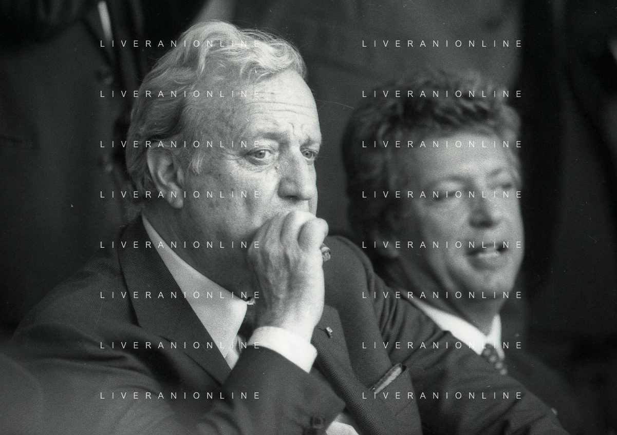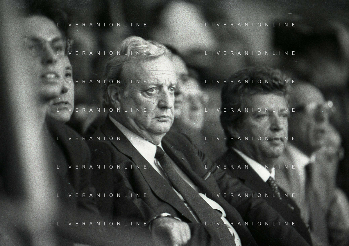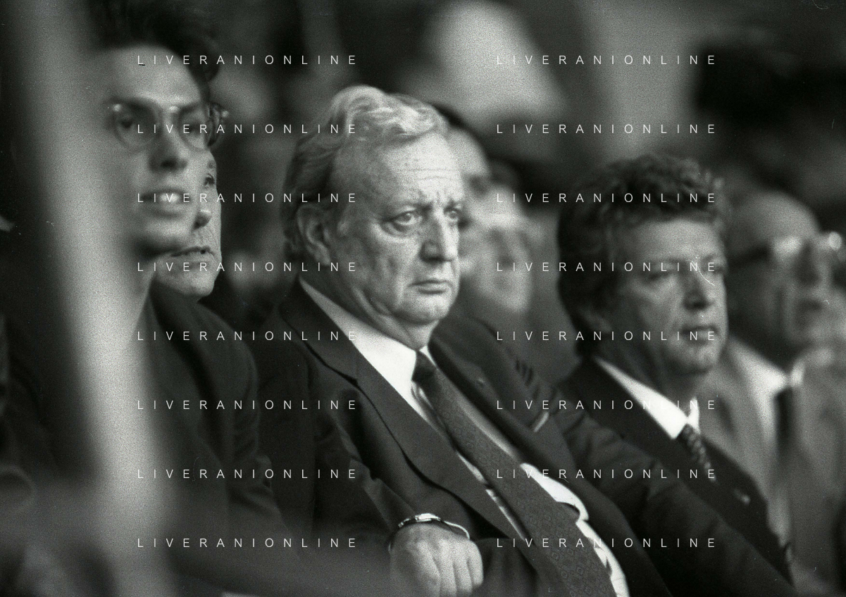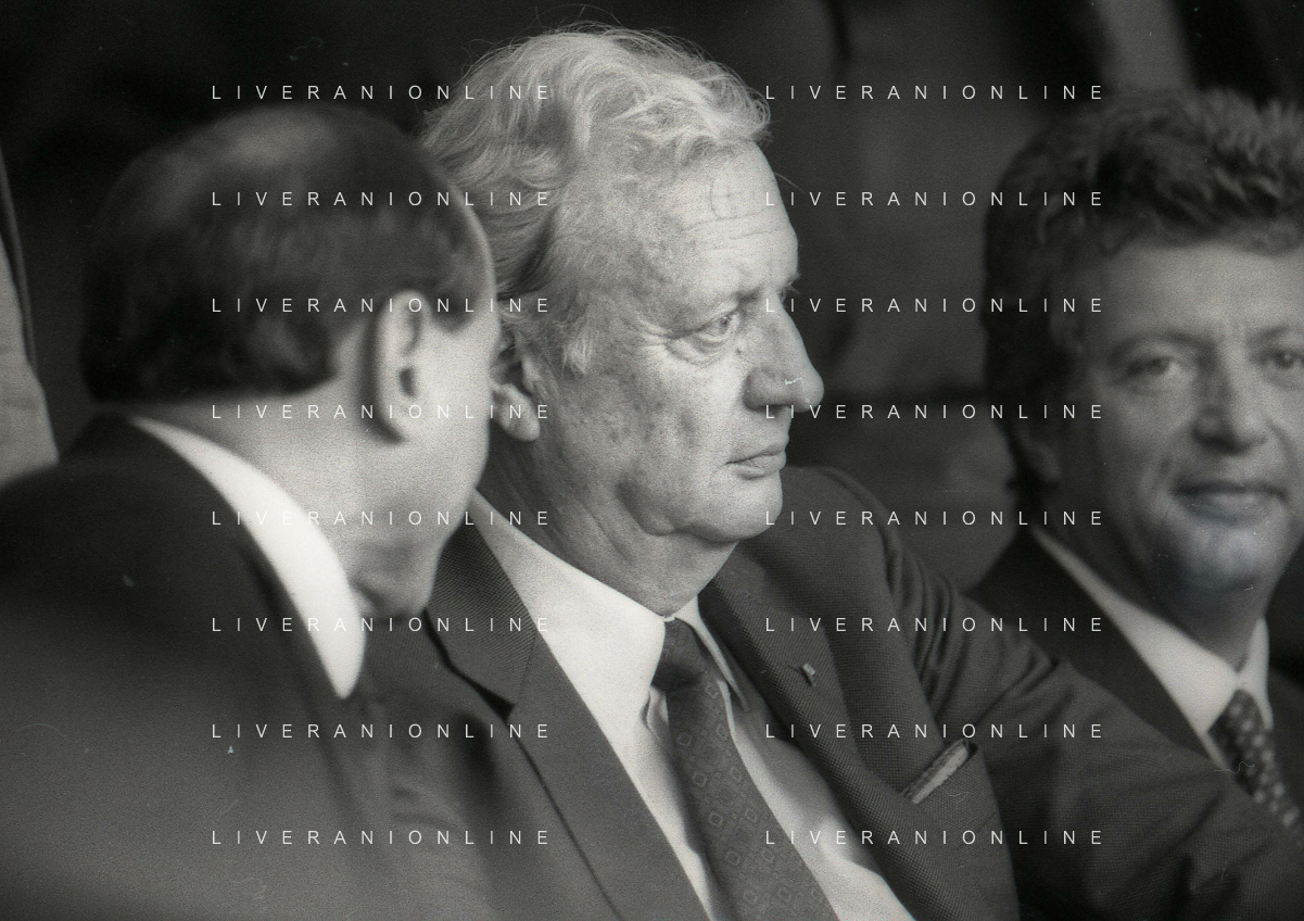 1990-1991 RETROSPETTIVA MARIO CECCHI GORI PRESIDENTE DELLA FIORENTINA CALCIO NELLA FOTO MARIO CECCHI GORICON VITTORIO CECCHI GORI AG ALDO LIVERANI SAS