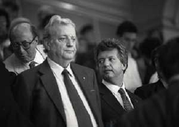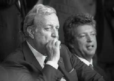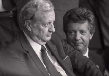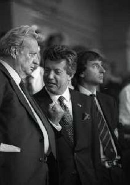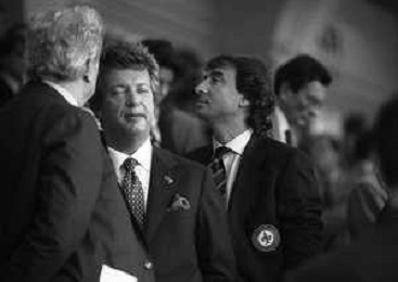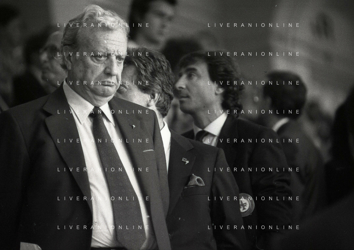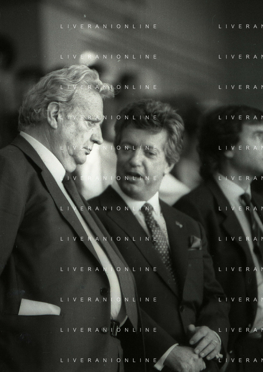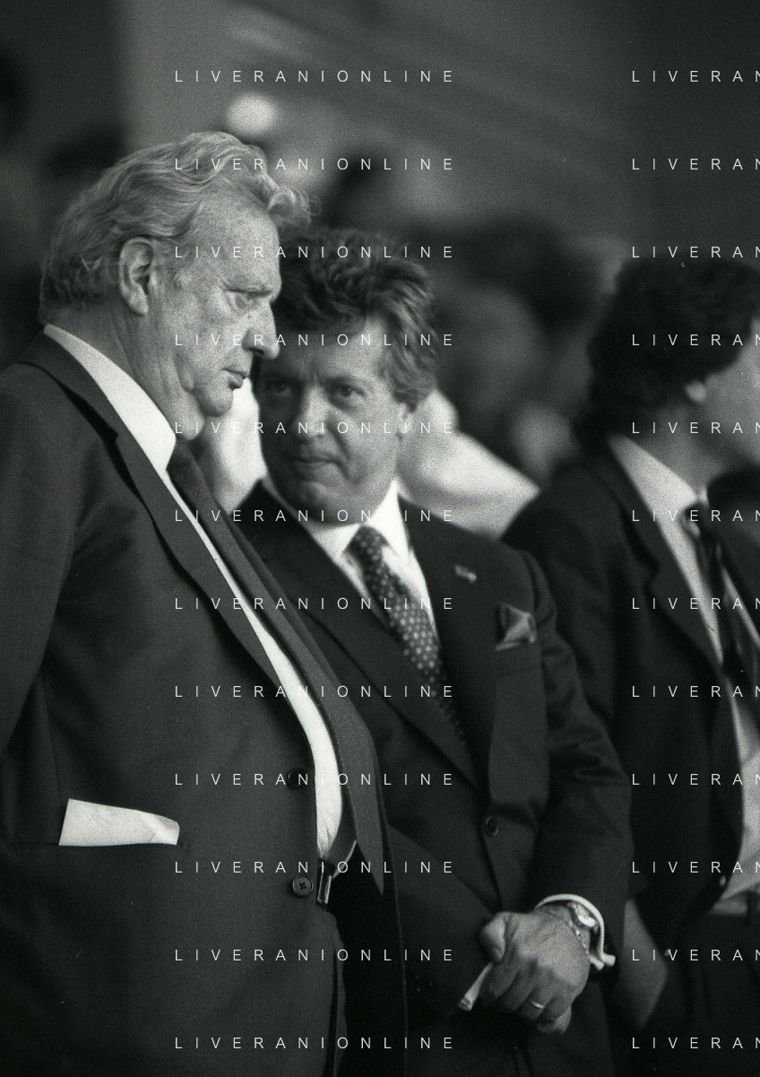 1990-1991 RETROSPETTIVA MARIO CECCHI GORI PRESIDENTE DELLA FIORENTINA CALCIO NELLA FOTO MARIO CECCHI GORI CON LUCA CORDERO DI MONTEZEMOLO AG ALDO LIVERANI SAS