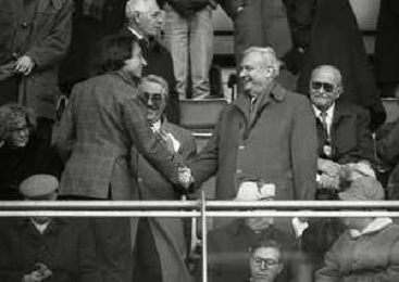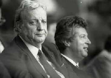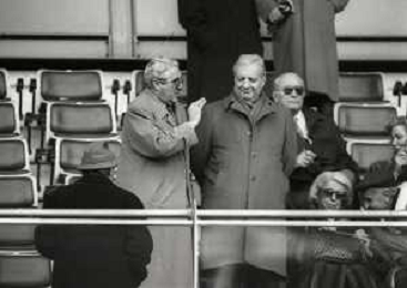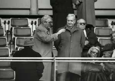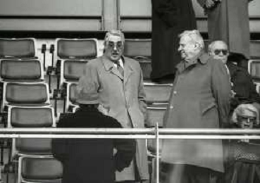 1990-1991 RETROSPETTIVA MARIO CECCHI GORI PRESIDENTE DELLA FIORENTINA CALCIO NELLA FOTO MARIO CECCHI GORI CON FERRUCCIO VALCAREGGI AG ALDO LIVERANI SAS
