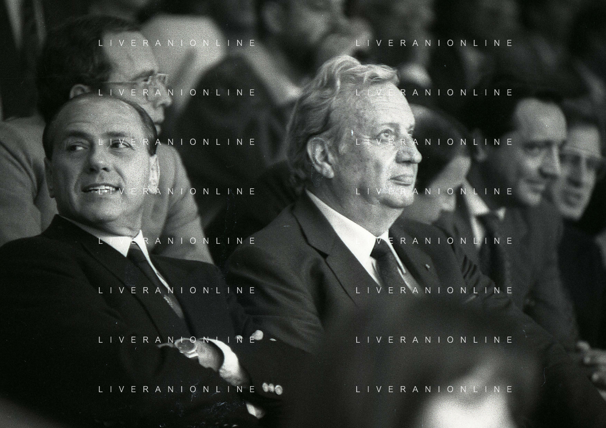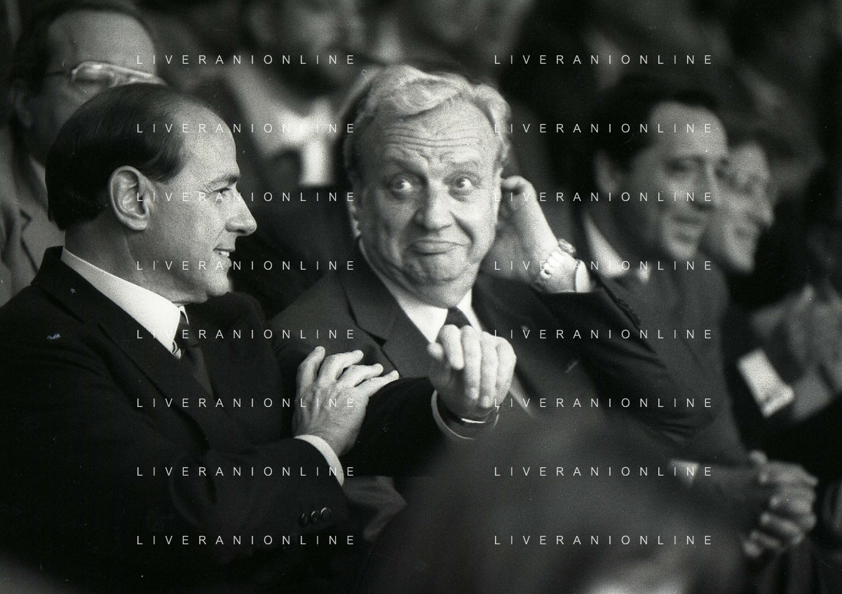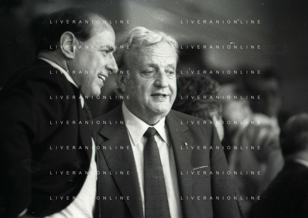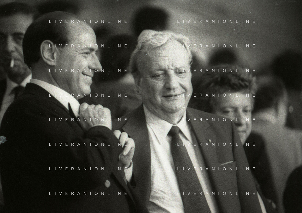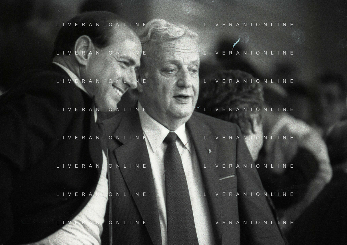 1990-1991 RETROSPETTIVA MARIO CECCHI GORI PRESIDENTE DELLA FIORENTINA CALCIO NELLA FOTO MARIO CECCHI GORI CO SILVIO BERLUSCONI AG ALDO LIVERANI SAS