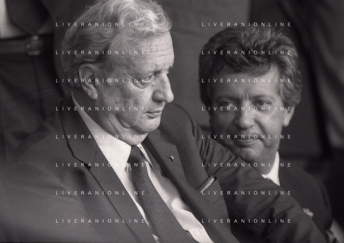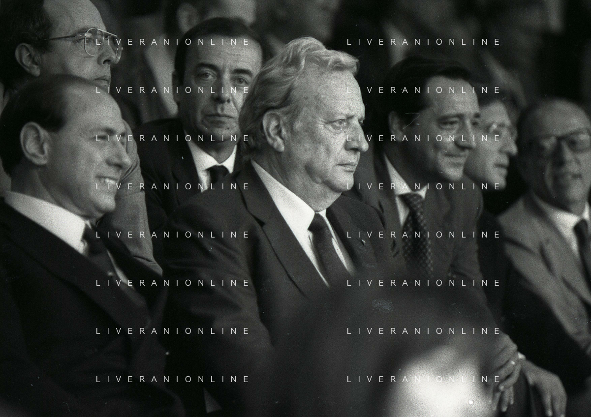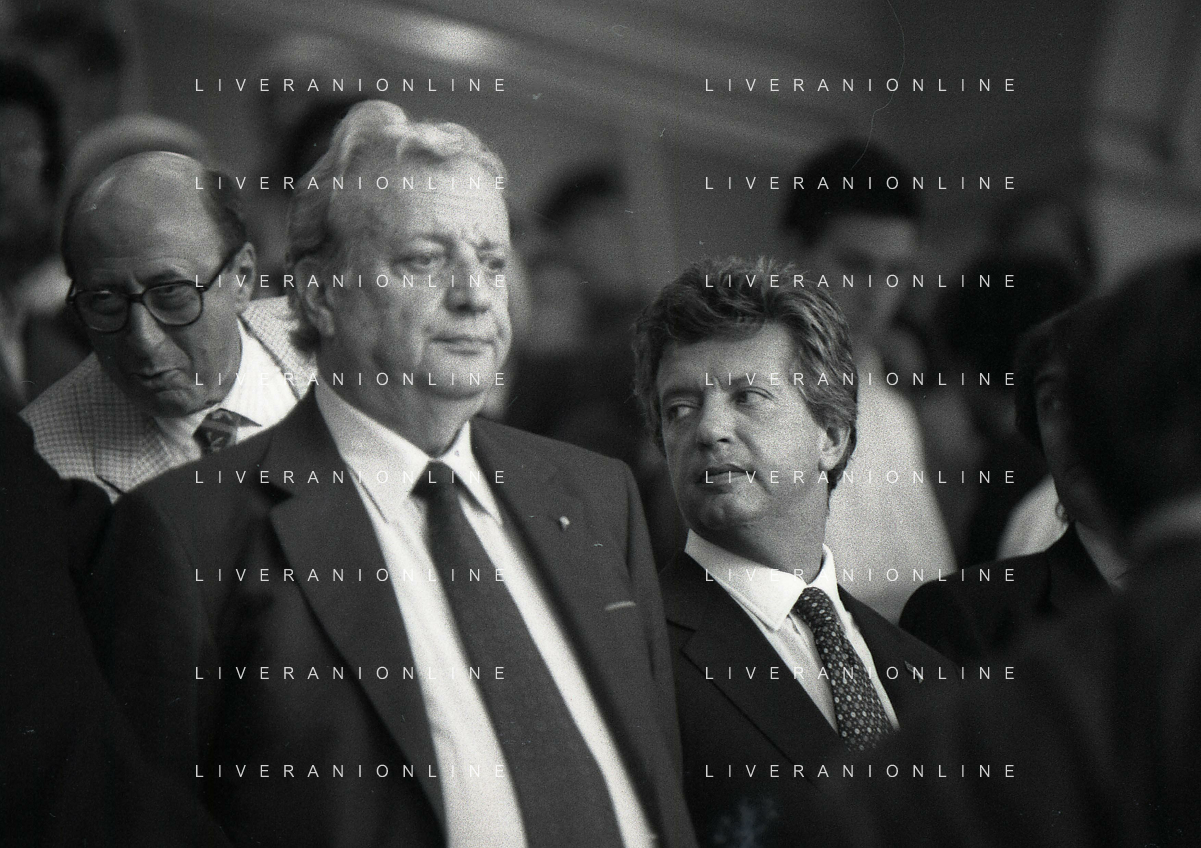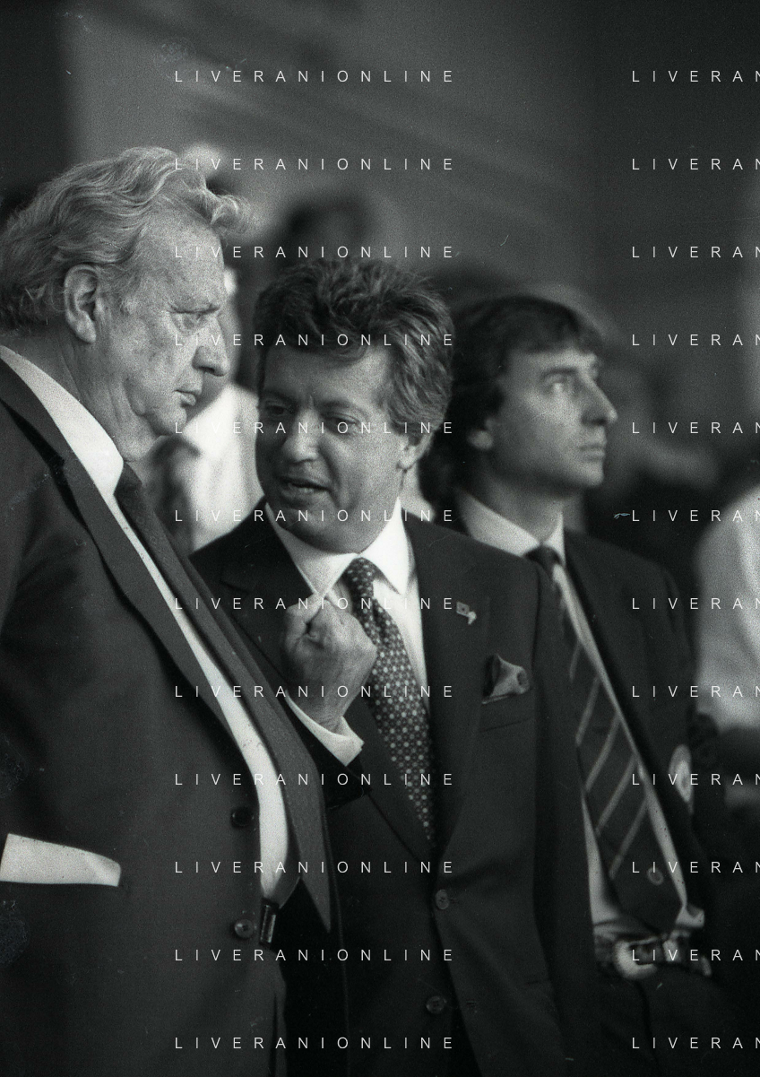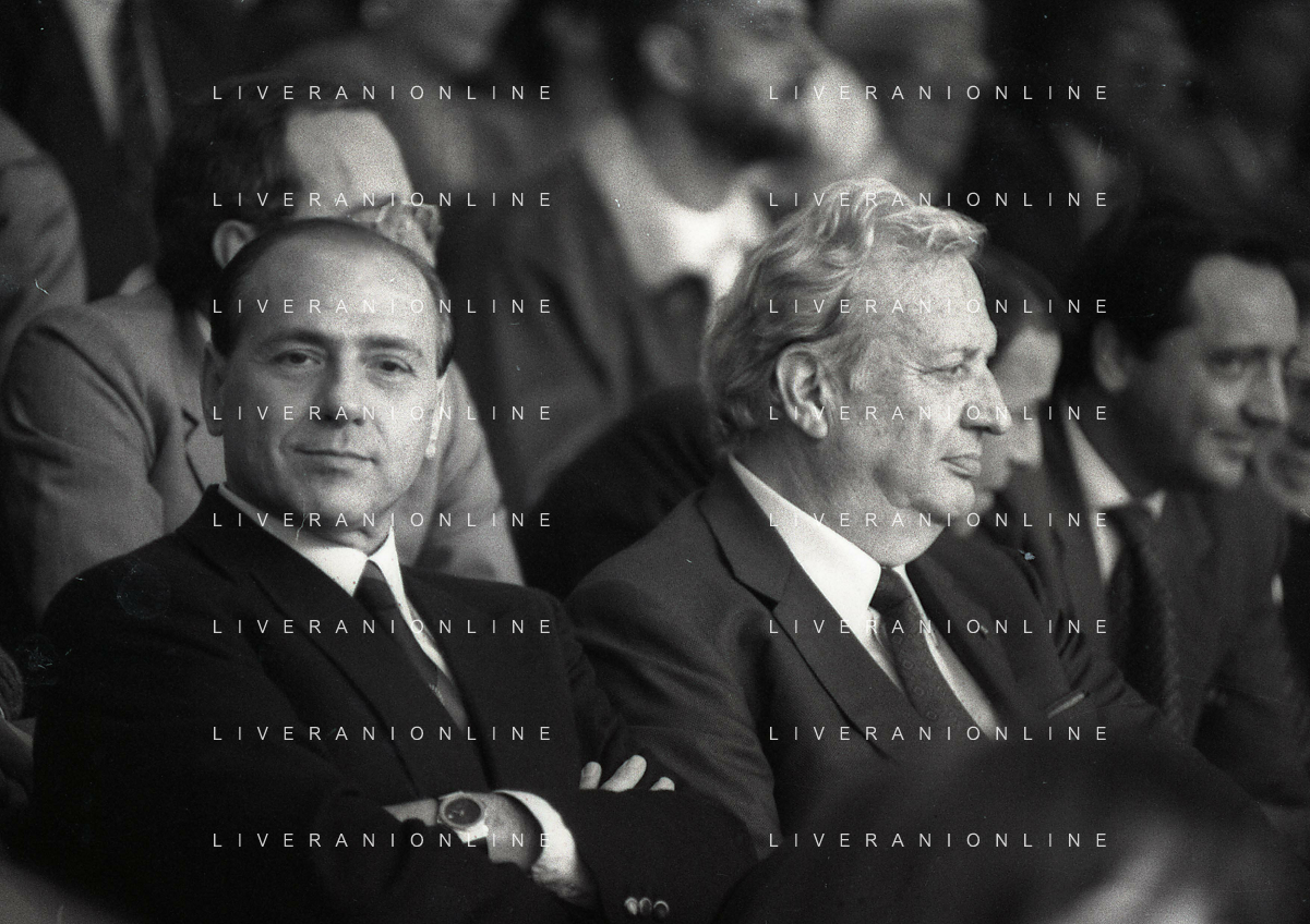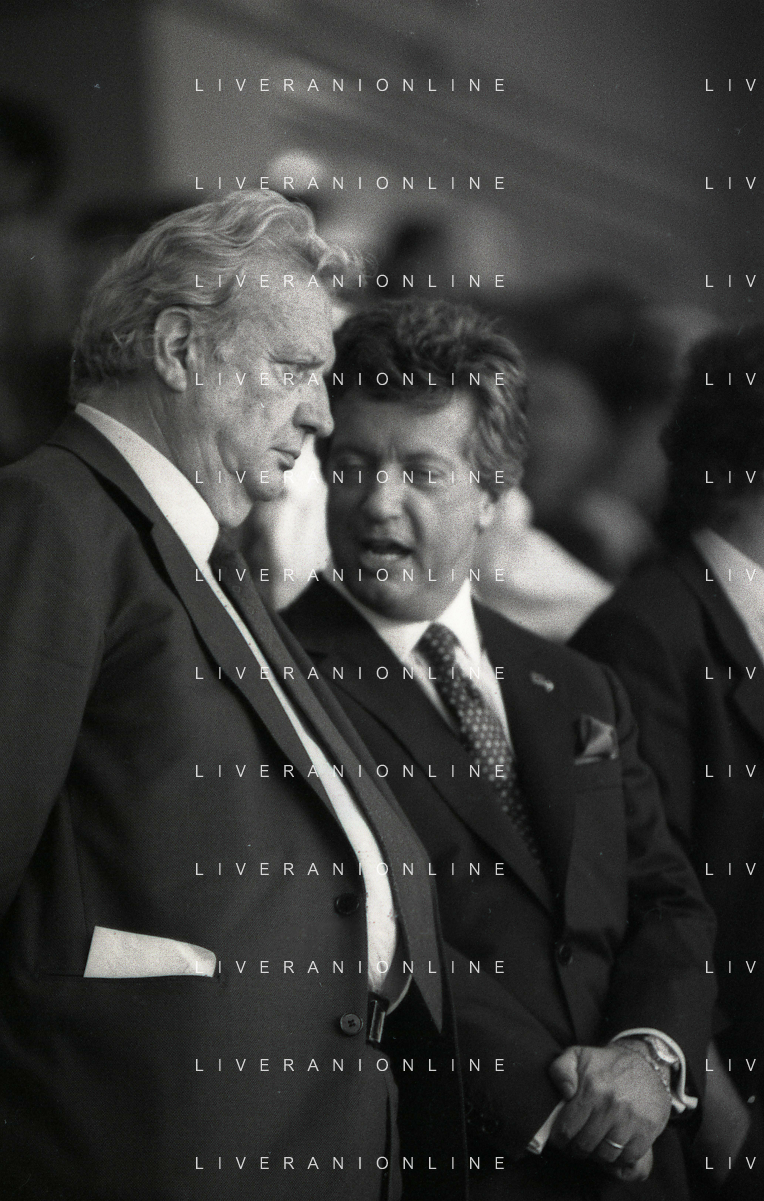 1990-1991 RETROSPETTIVA MARIO CECCHI GORI PRESIDENTE DELLA FIORENTINA CALCIO NELLA FOTO MARIO CECCHI GORI CO SILVIO BERLUSCONI AG ALDO LIVERANI SAS