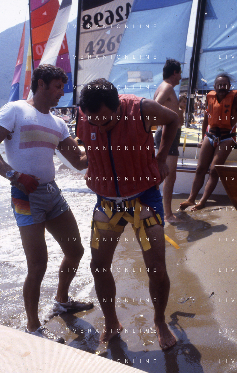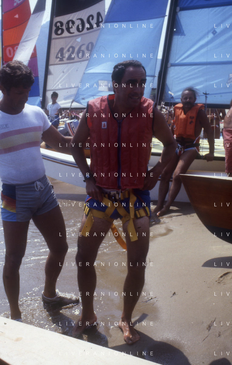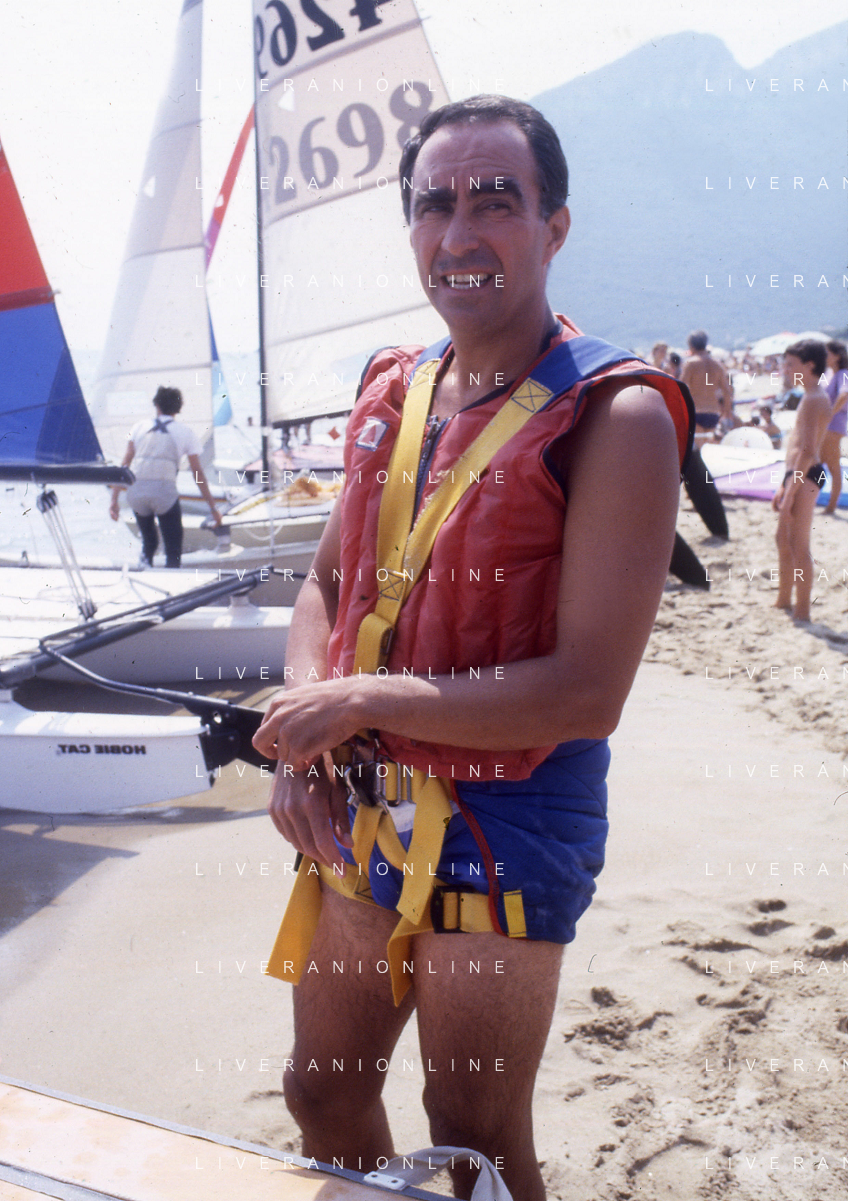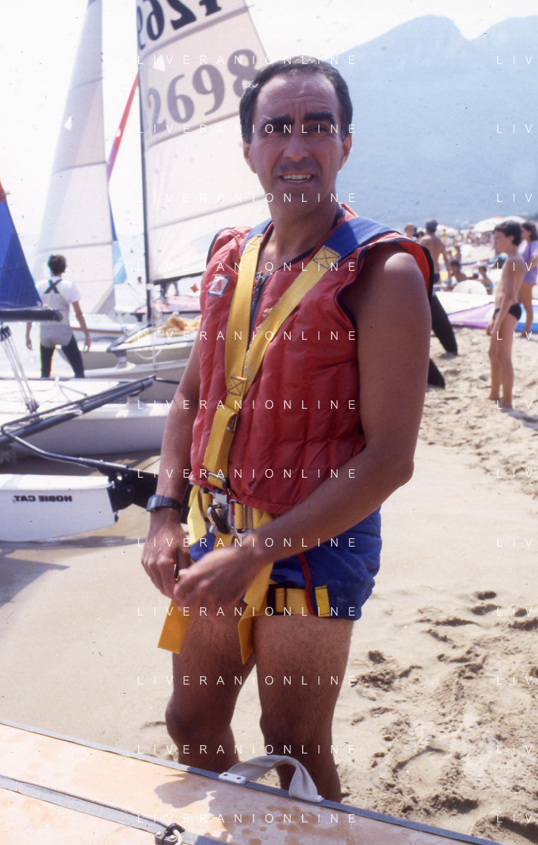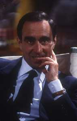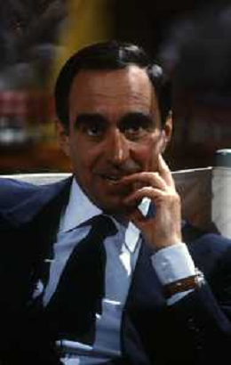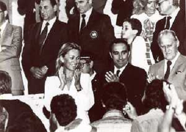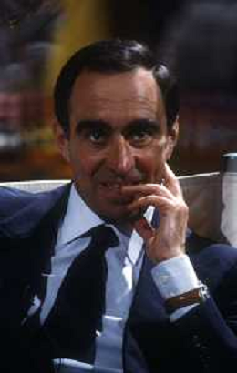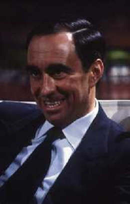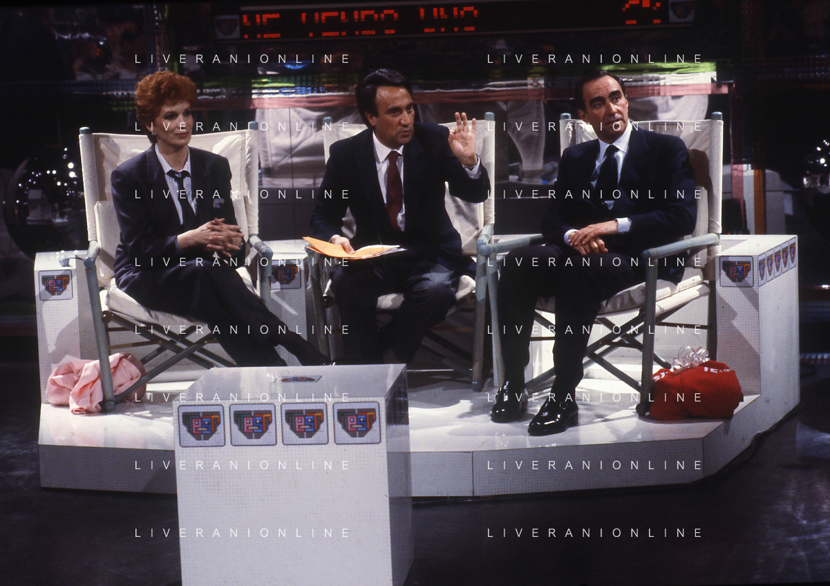 RETROSPETTIVA FRANCO CARRARO DIRIGENTE SPORTIVO E POLITICO NELLA FOTO FRANCO CARRARO NELL'ANNO 1984 A MILANO NELLA TRASMISSIONE “TEST“CON EMILIO FEDE E IVA ZANICCHI AG ALDO LIVERANI SAS