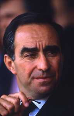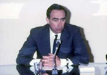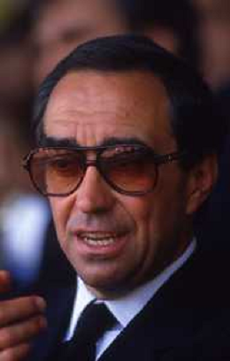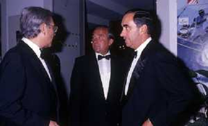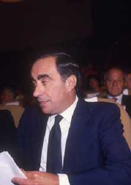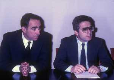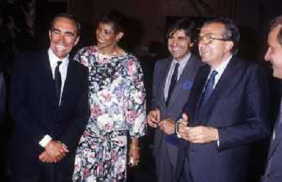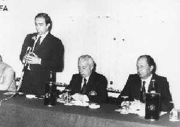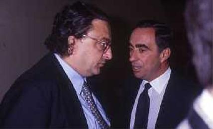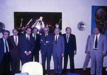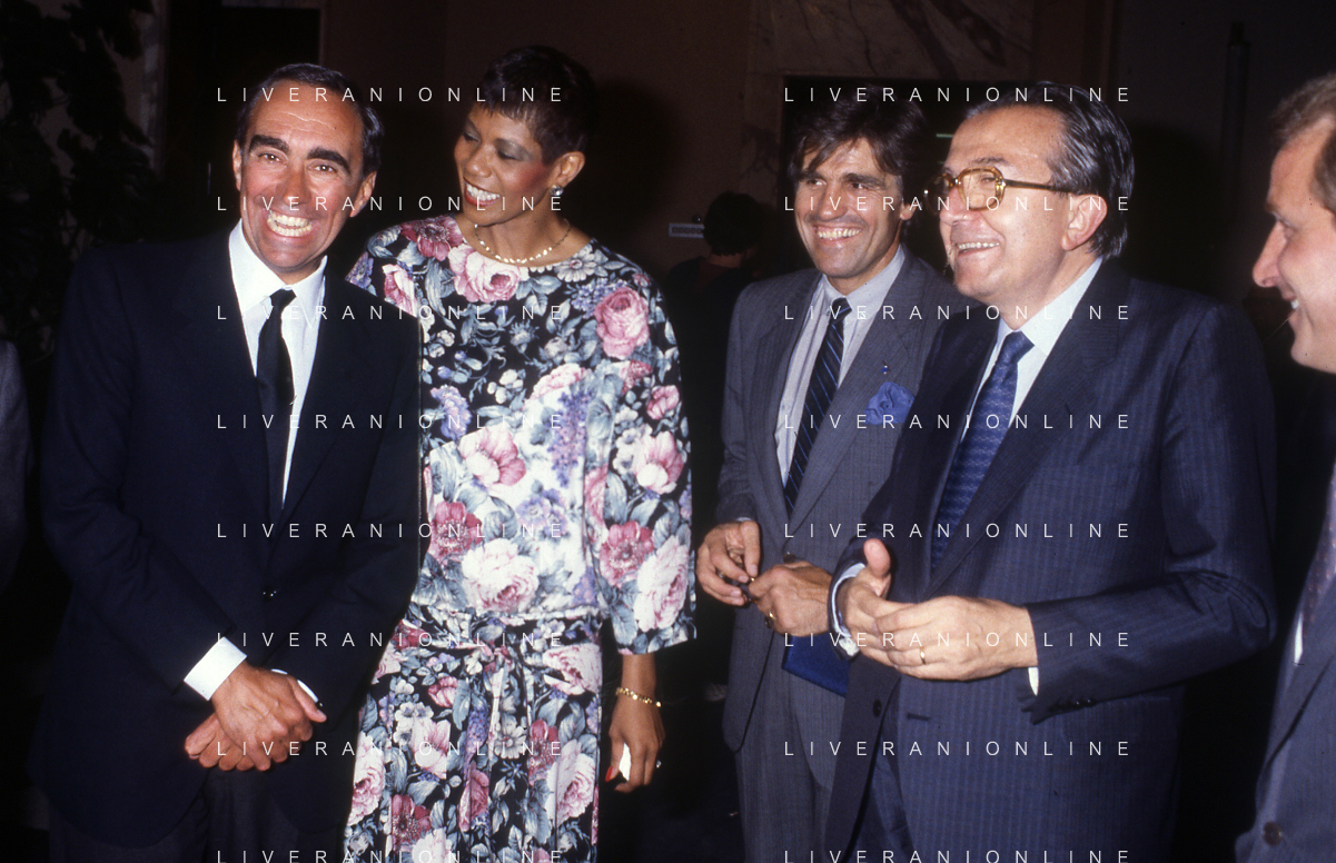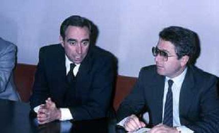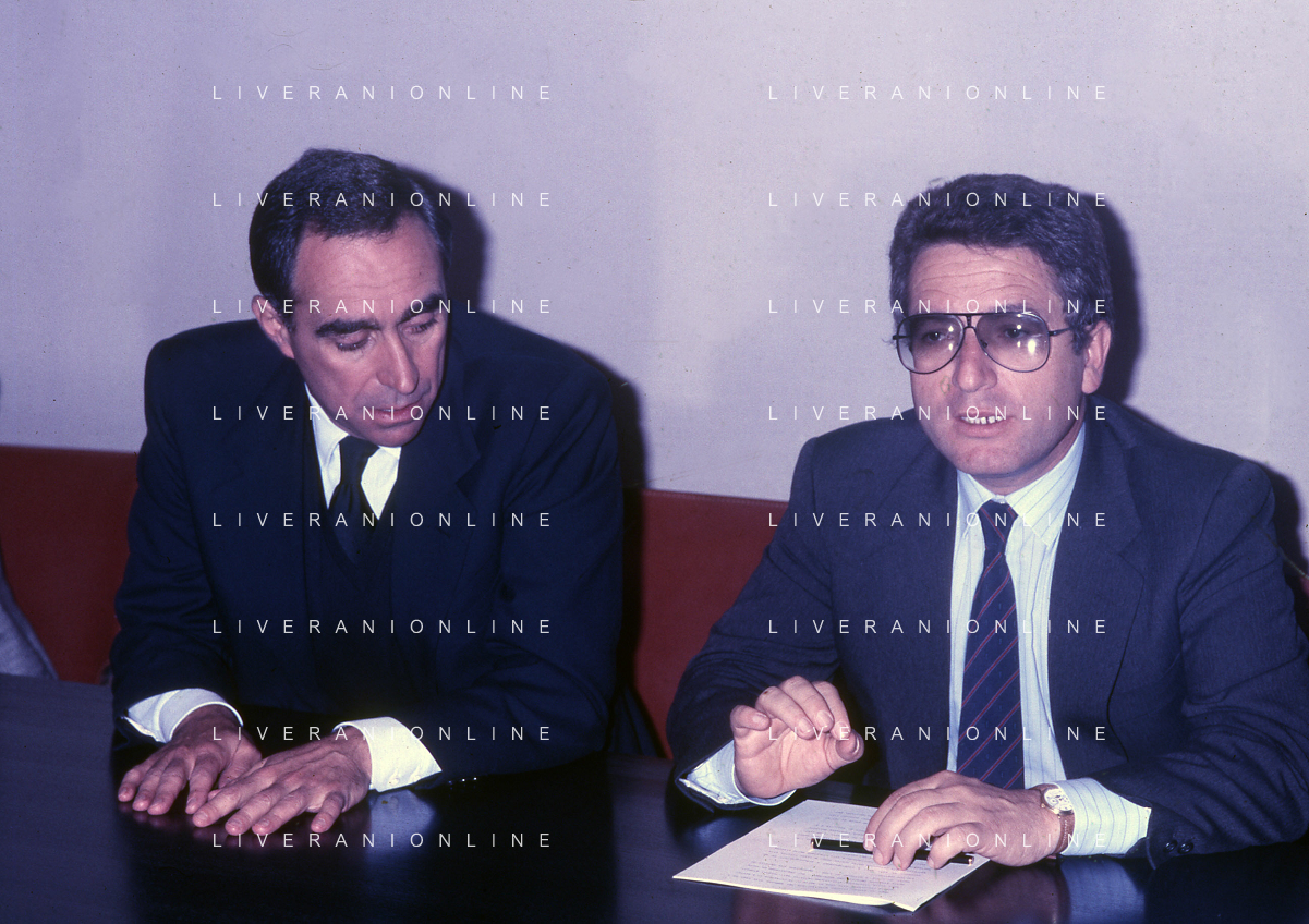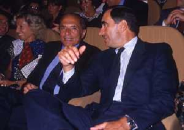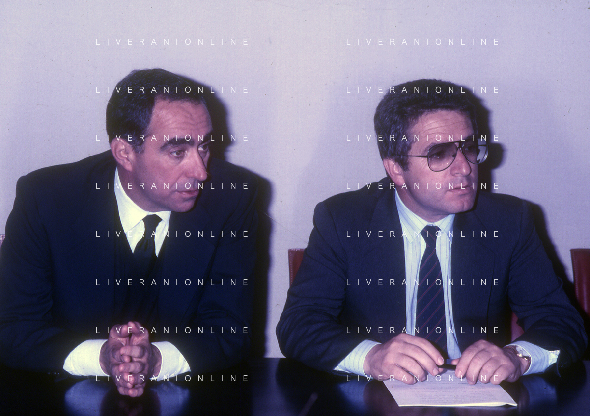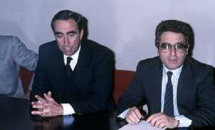 RETROSPETTIVA FRANCO CARRARO DIRIGENTE SPORTIVO E POLITICO NELLA FOTO FRANCO CARRARO NELL'ANNO 1987 A MILANO CON GIANNI DE MICHELIS AG ALDO LIVERANI SAS
