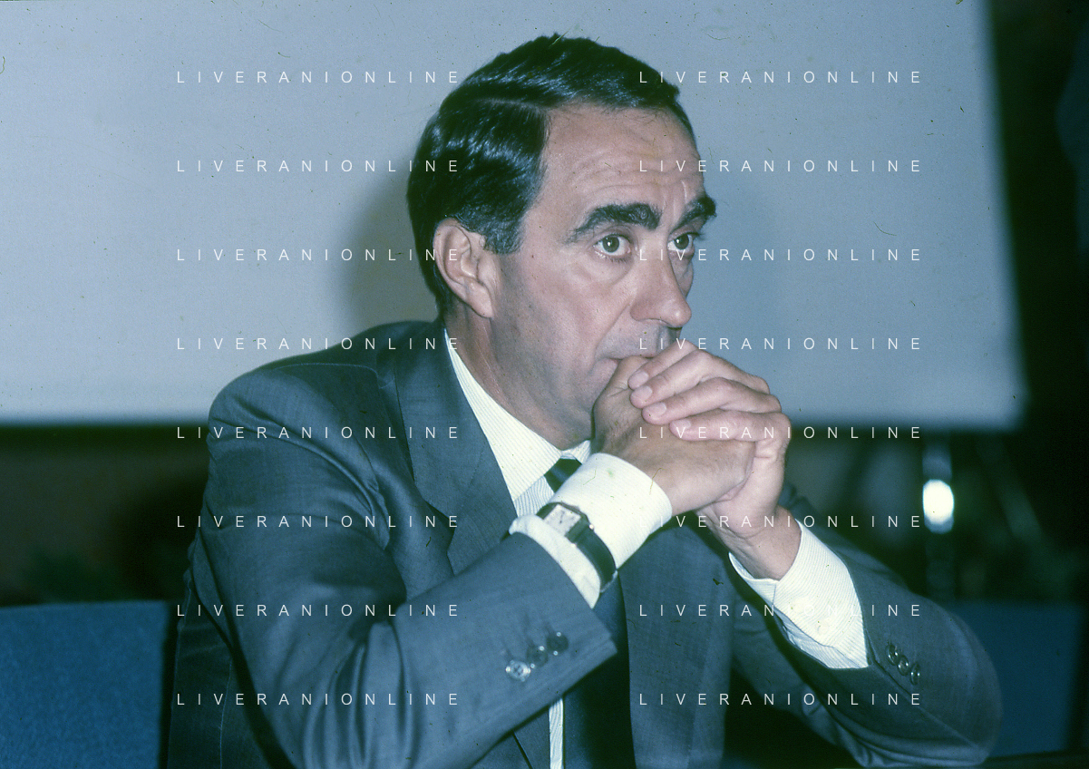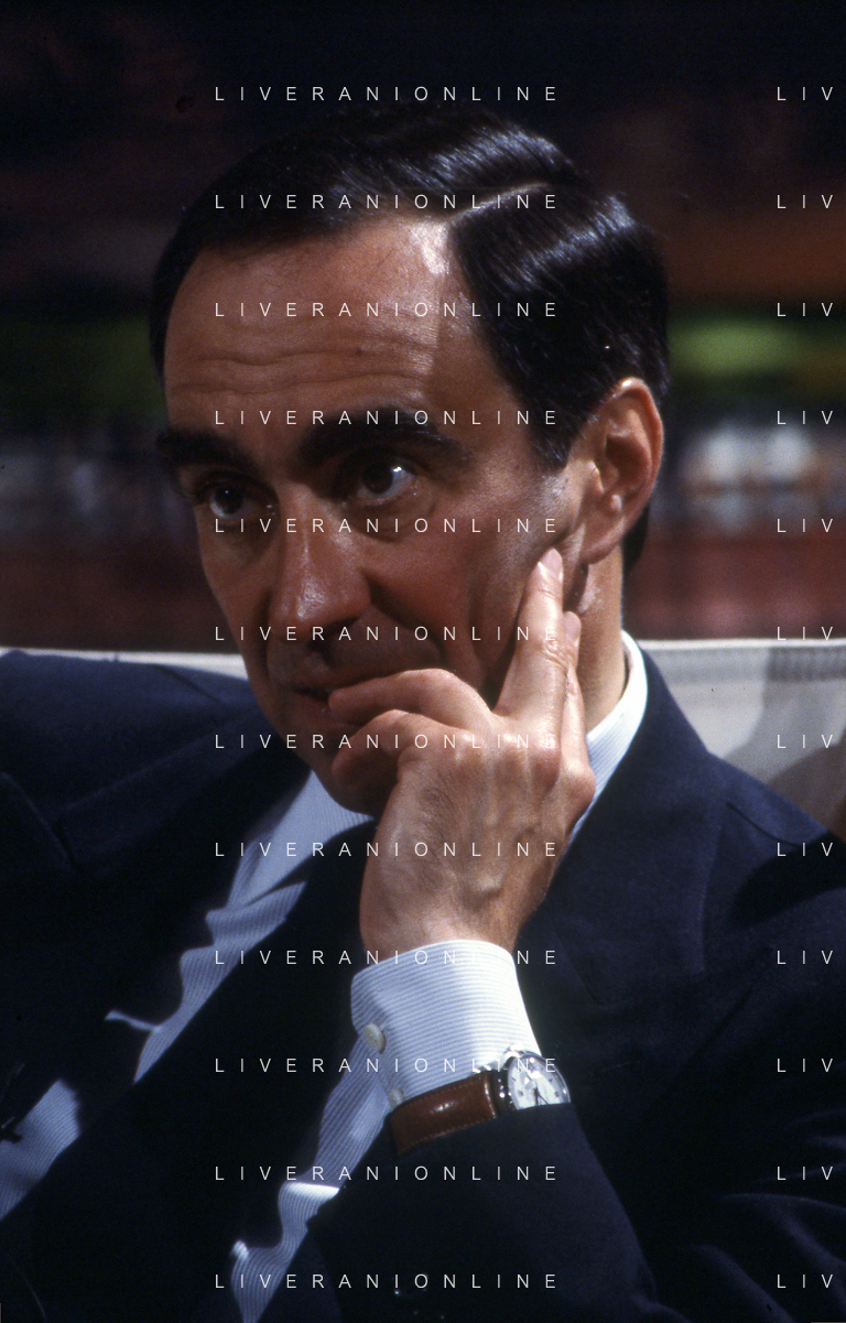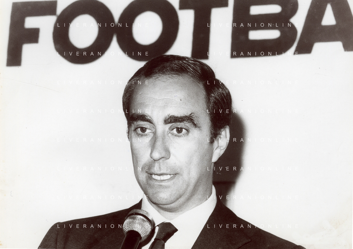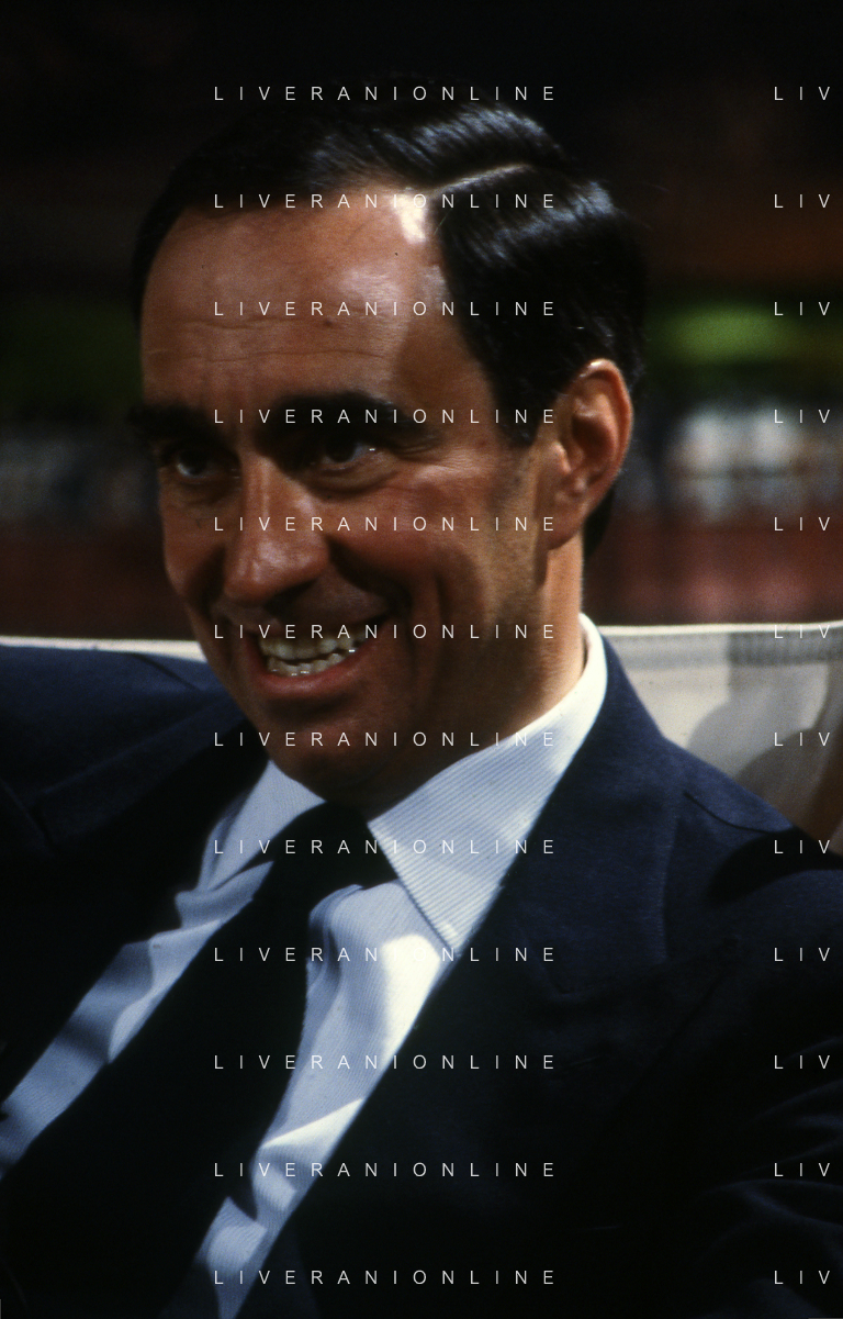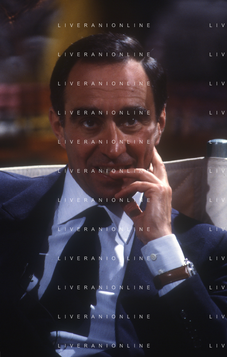 RETROSPETTIVA FRANCO CARRARO DIRIGENTE SPORTIVO E POLITICO NELLA FOTO FRANCO CARRARO NELL'ANNO 1984 A MILANO NELLA TRASMISSIONE “TEST“ AG ALDO LIVERANI SAS