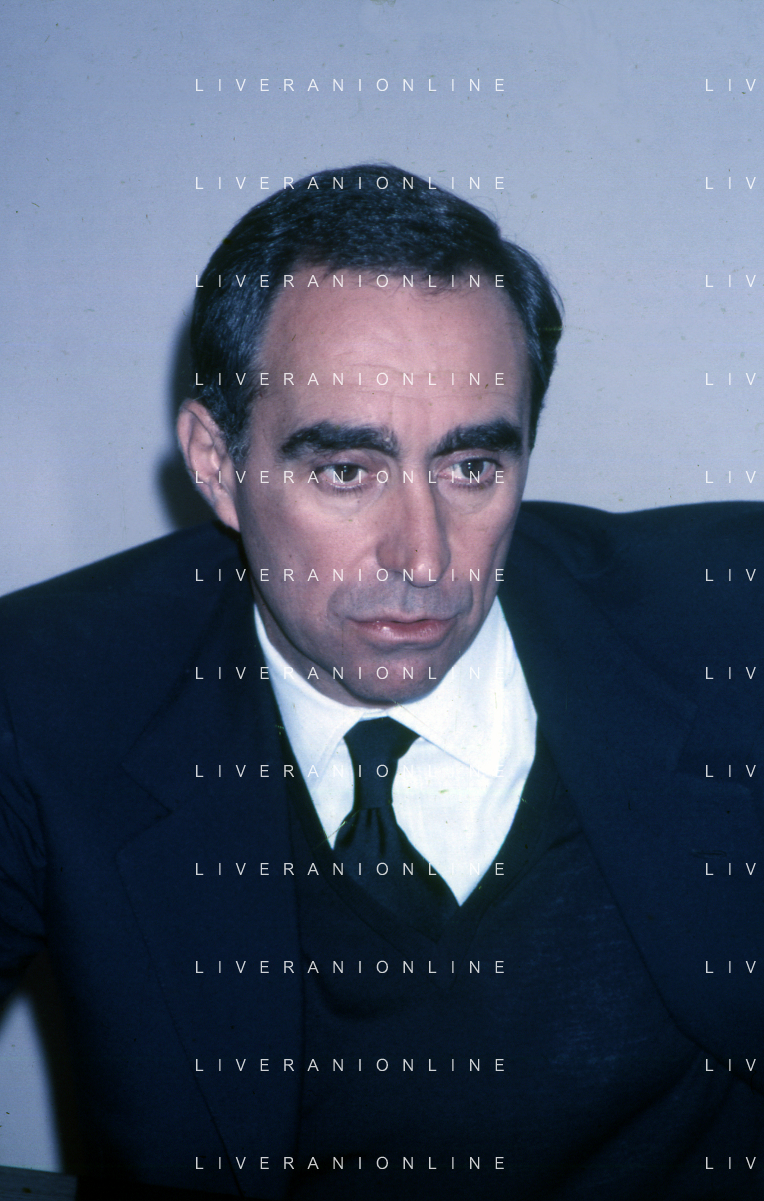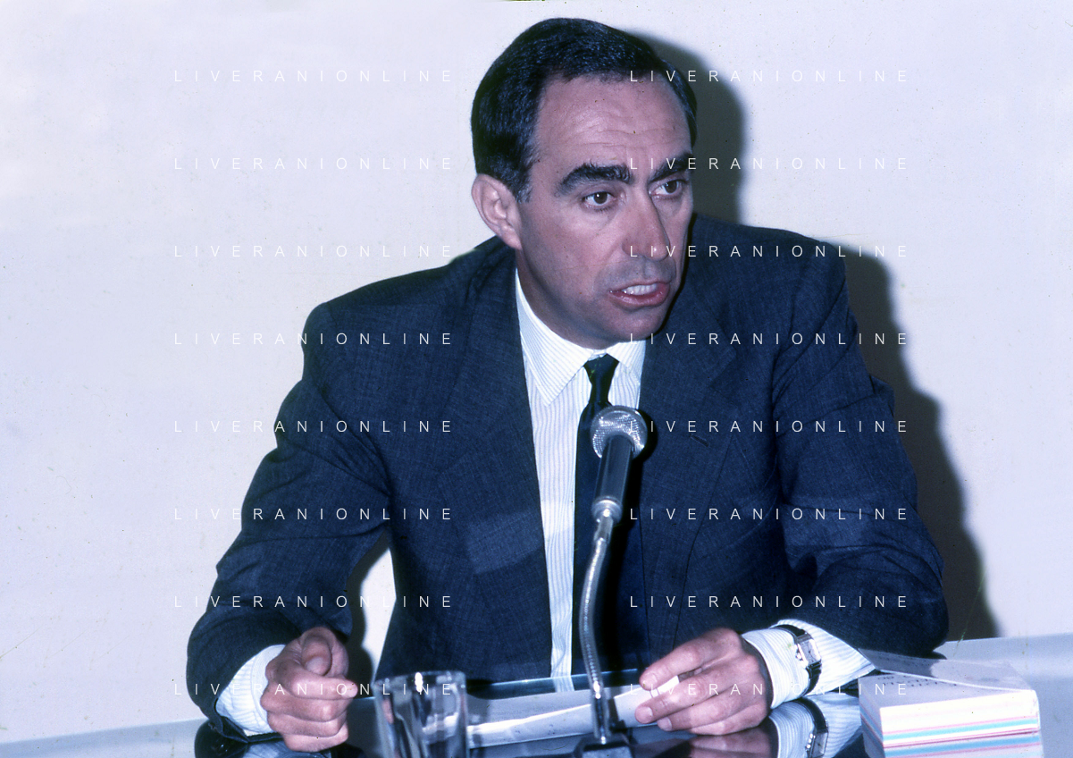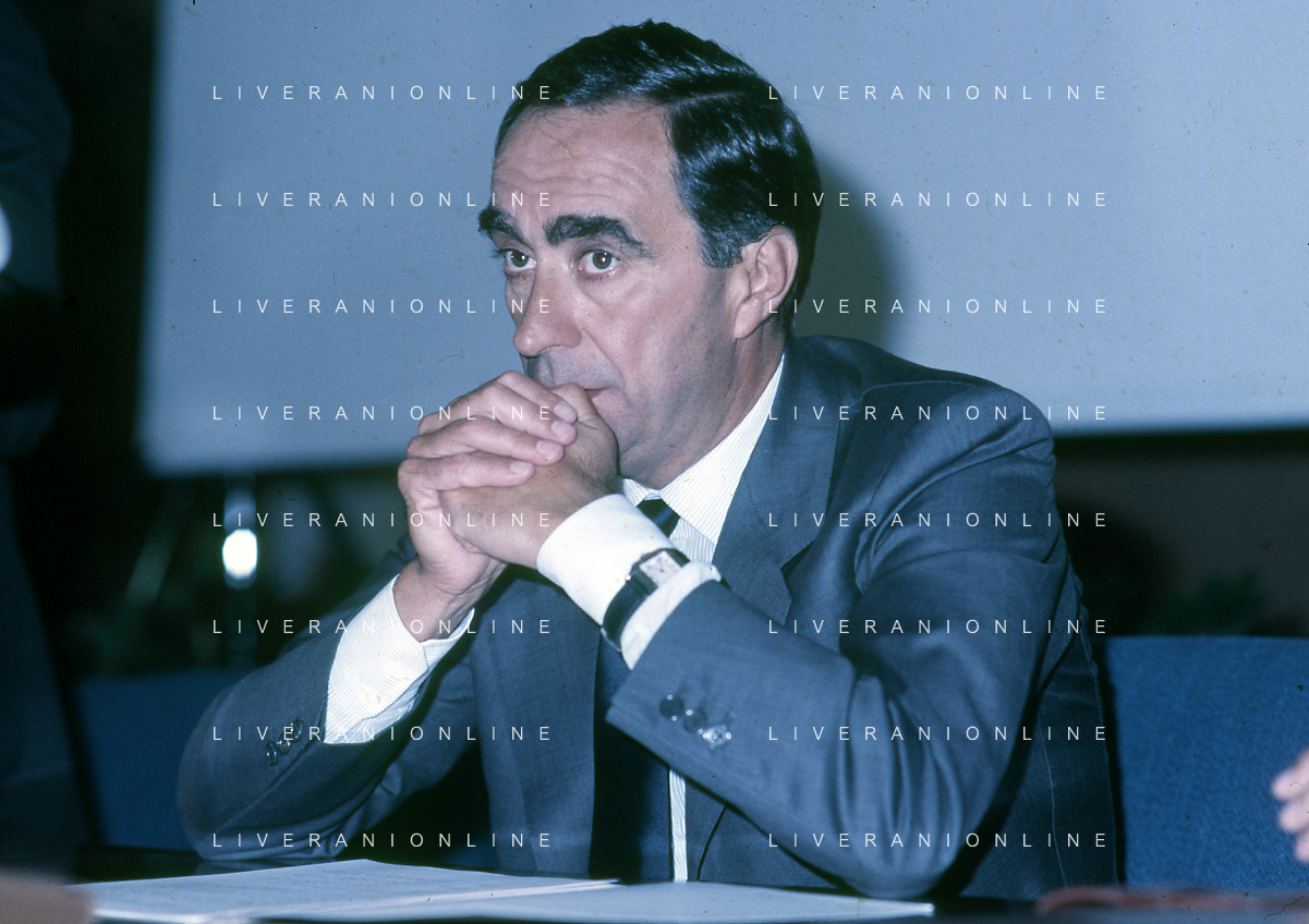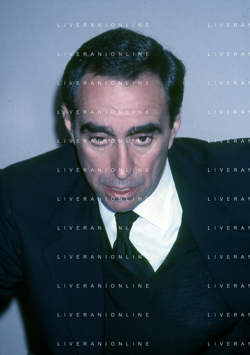 RETROSPETTIVA FRANCO CARRARO DIRIGENTE SPORTIVO E POLITICO NELLA FOTO FRANCO CARRARO NELL'ANNO 1984 A MILANO NELLA TRASMISSIONE “TEST“ AG ALDO LIVERANI SAS