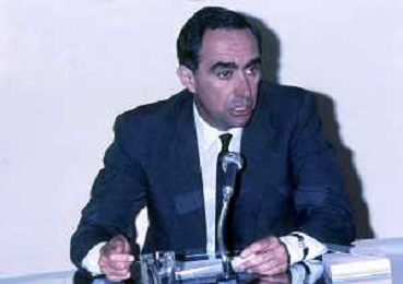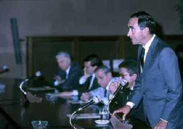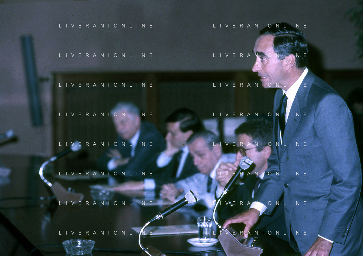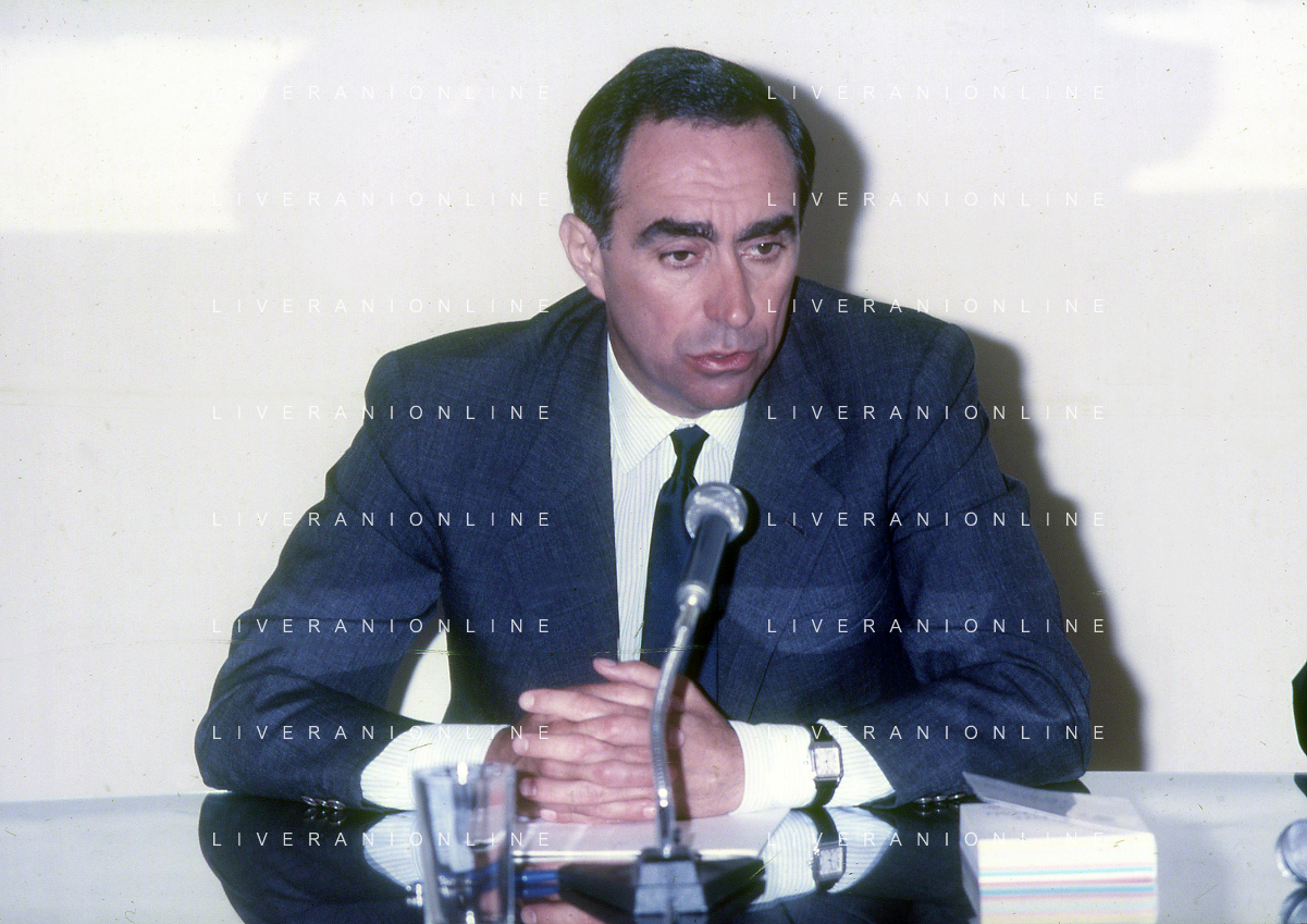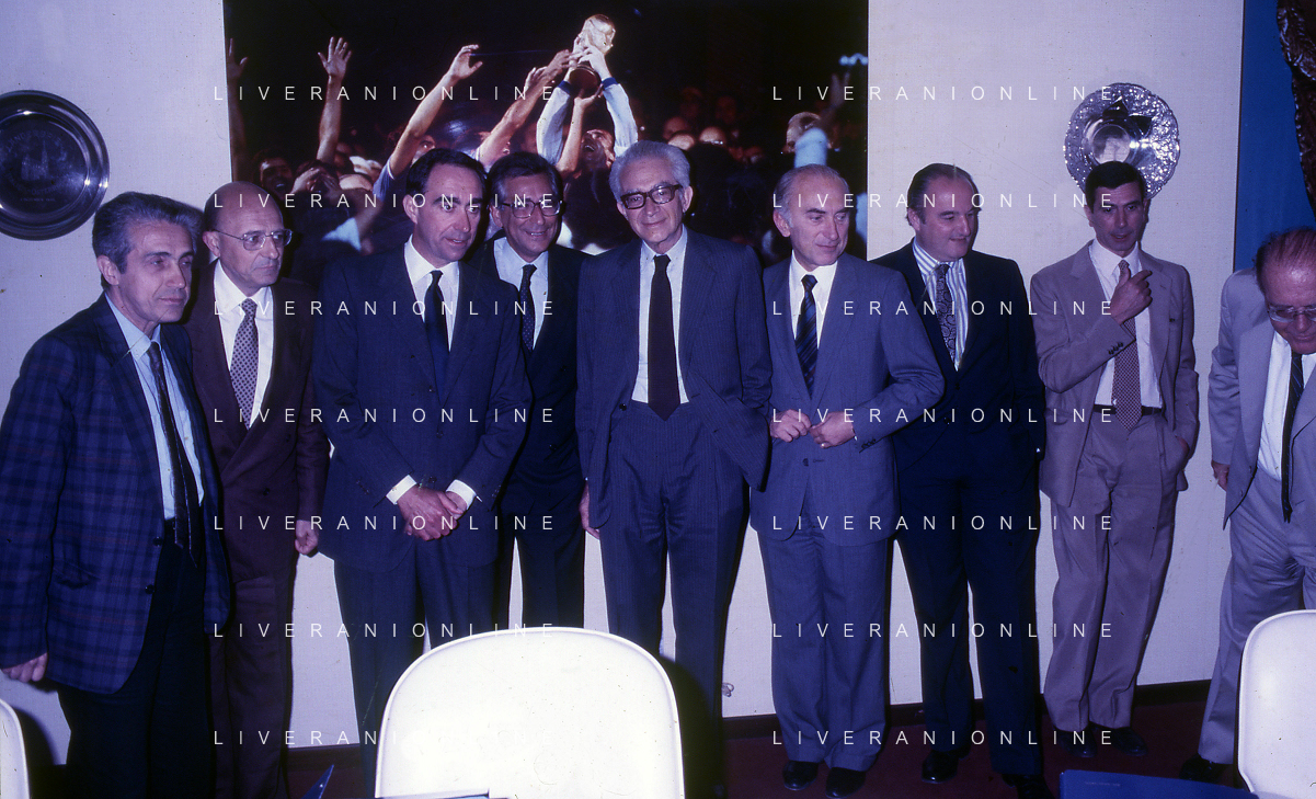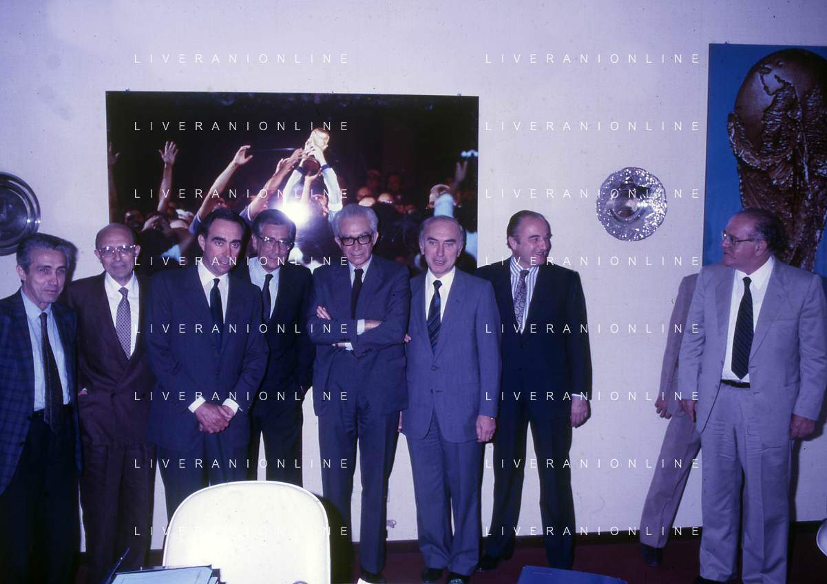 RETROSPETTIVA FRANCO CARRARO DIRIGENTE SPORTIVO E POLITICO NELLA FOTO FRANCO CARRARO NELL'ANNO 1984 A MILANO NELLA TRASMISSIONE “TEST“ AG ALDO LIVERANI SAS