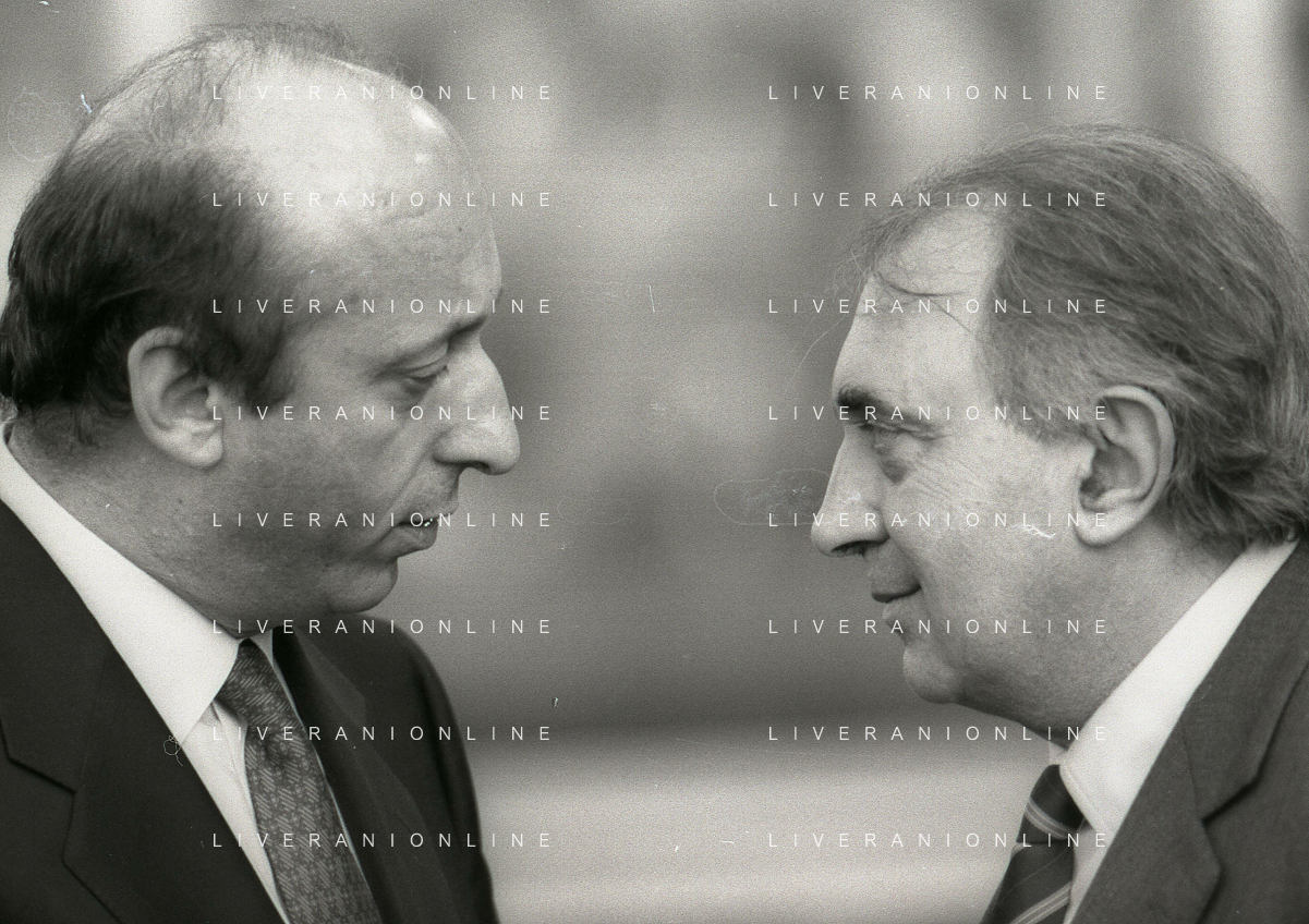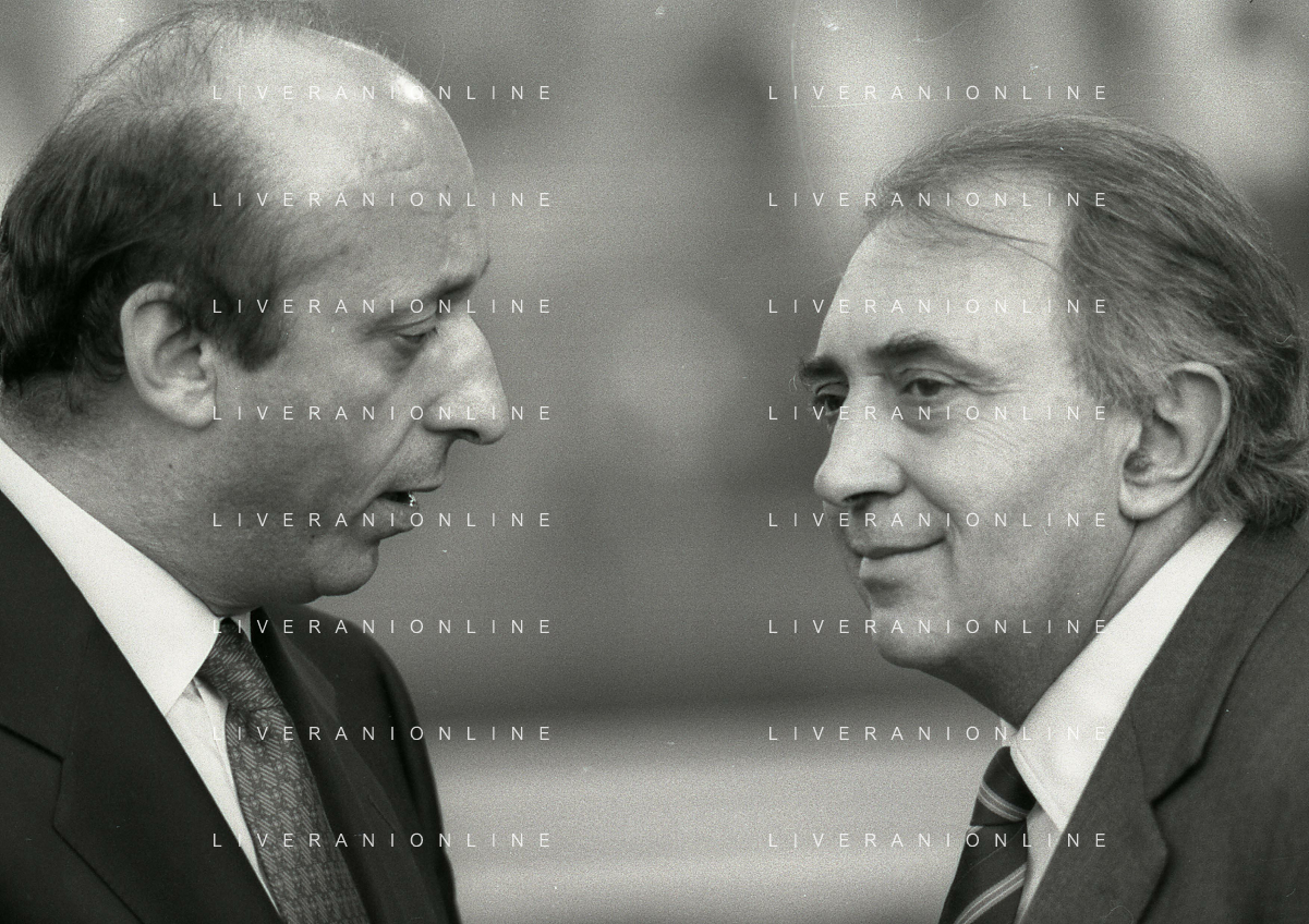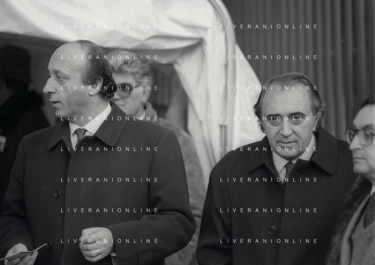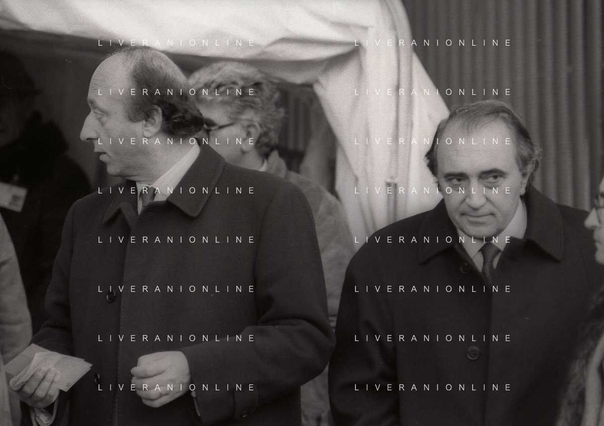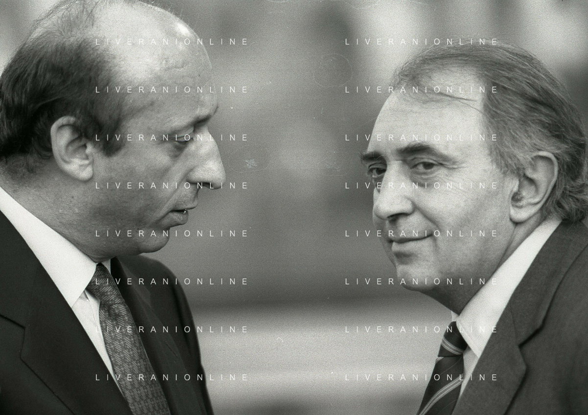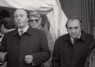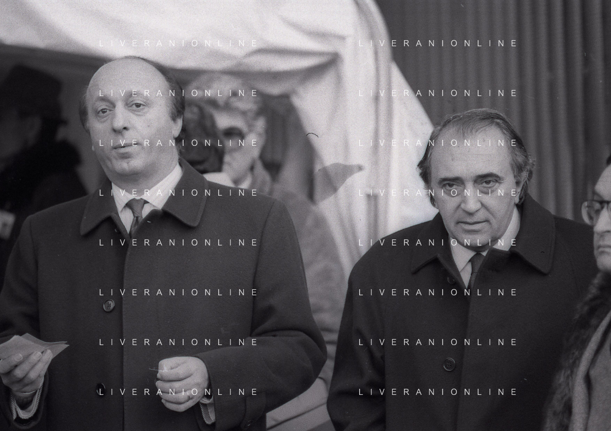 RETROSPETTIVA LUCIANO MOGGI DIRIGENTE SPORTIVO NELLA FOTO LUCIANO MOGGI NELL'ANNO 1988-1989 DIRIGENTE AL NAPOLI CALCIO CON IL PRESIDENTE DEL NAPOLI CALCIO CORRADO FERLAINO AG ALDO LIVERANI SAS