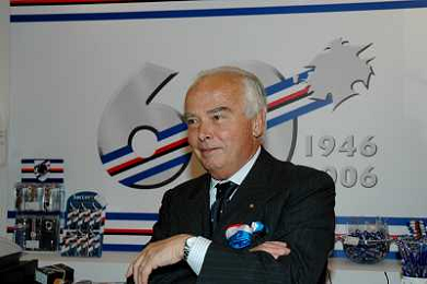Genova, 15/06/06 Inaugurazione della mostra 'Semper uniti in gloria. I sessant'anni della Sampdoria' Nella foto: Il Presidente Riccardo Garrone assediato da giornalisti e fotografi, ma sorride ph alessandro pintimalli / ag aldo liverani s.a.s.