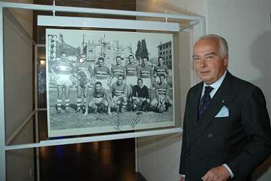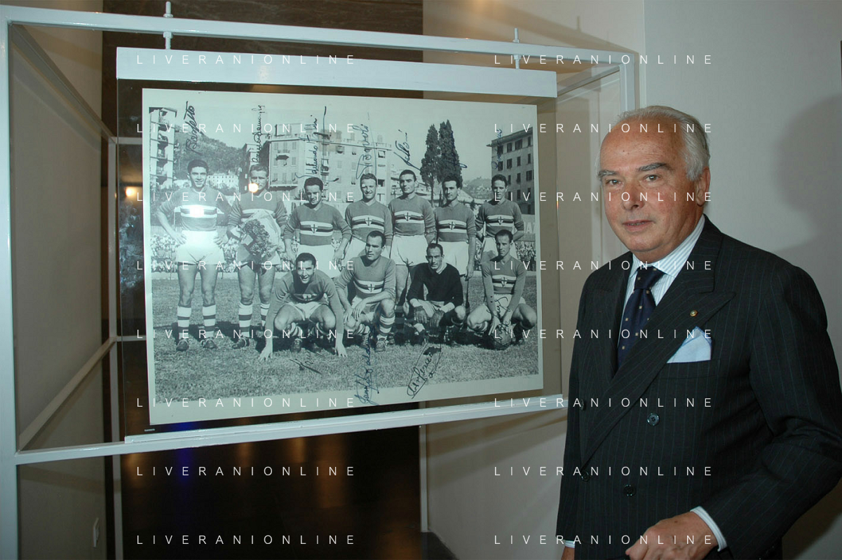 Genova, 15/06/06 Inaugurazione della mostra 'Semper uniti in gloria. I sessant'anni della Sampdoria' Nella foto: Il Presidente Riccardo Garrone posa davanti ad una foto di squadra del 1946 ph alessandro pintimalli / ag aldo liverani s.a.s.