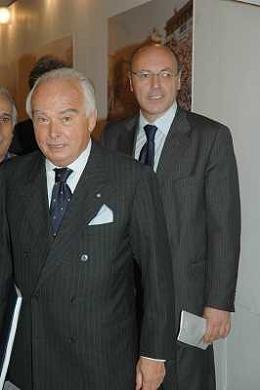 Genova, 15/06/06 Inaugurazione della mostra 'Semper uniti in gloria. I sessant'anni della Sampdoria' Nella foto: Il Presidente dell' U.C. Sampdoria, Riccardo Garrone, e l'amministratore delegato, Beppe Marotta. ph alessandro pintimalli / ag aldo