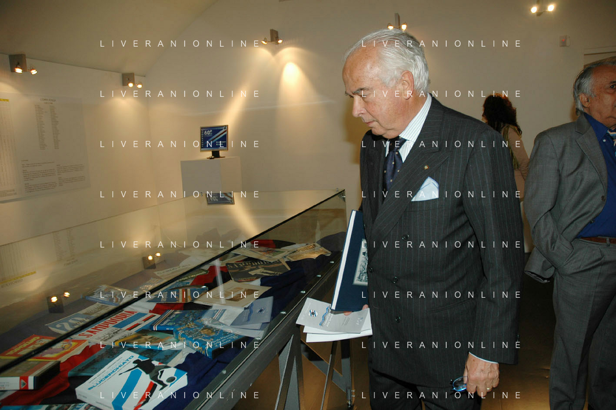 Genova, 15/06/06 Inaugurazione della mostra 'Semper uniti in gloria. I sessant'anni della Sampdoria' Nella foto: Il Presidente Riccardo Garrone osserva le pubblicazioni storiche riguardanti l'U.C. Sampdoria ph alessandro pintimalli / ag aldo liv