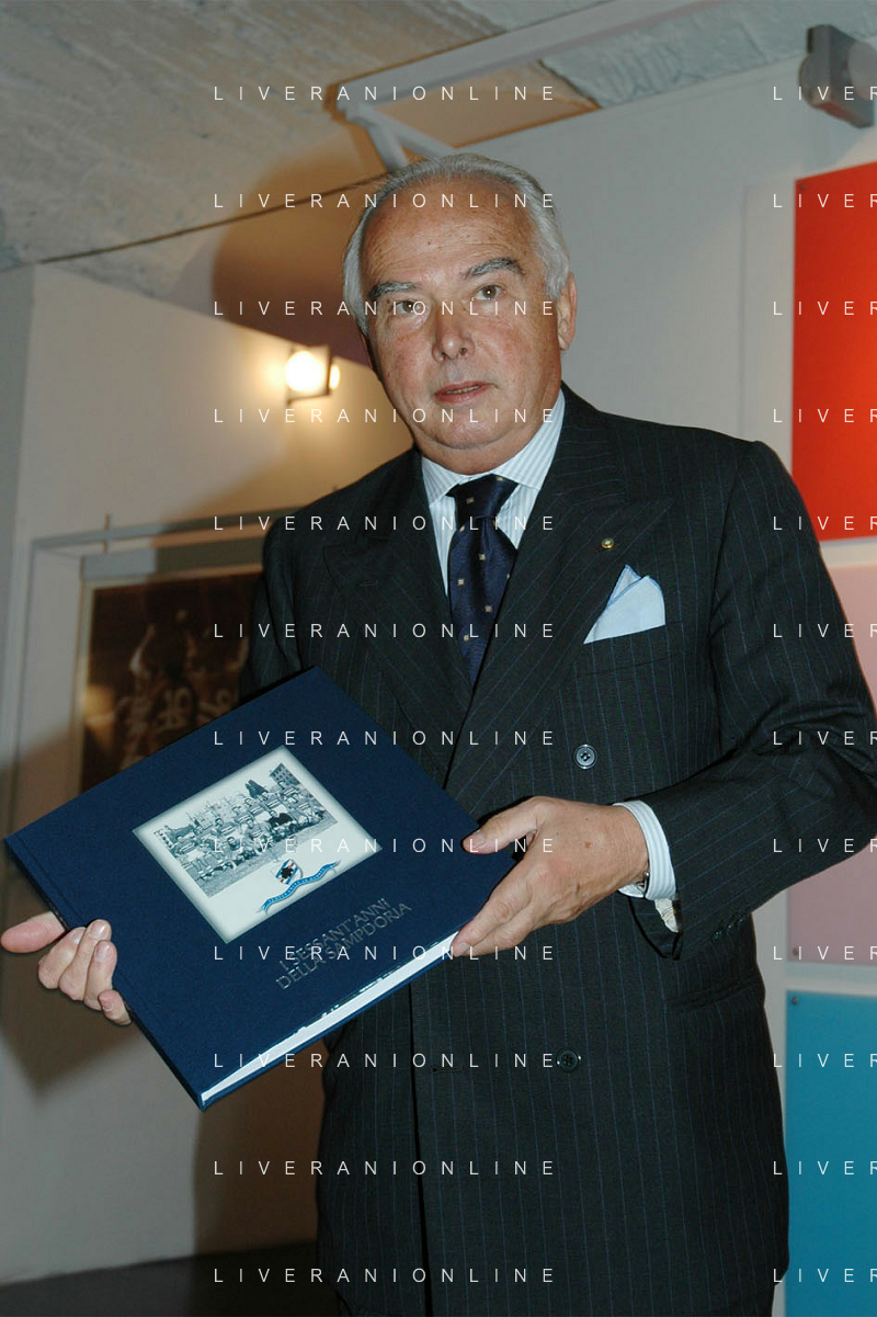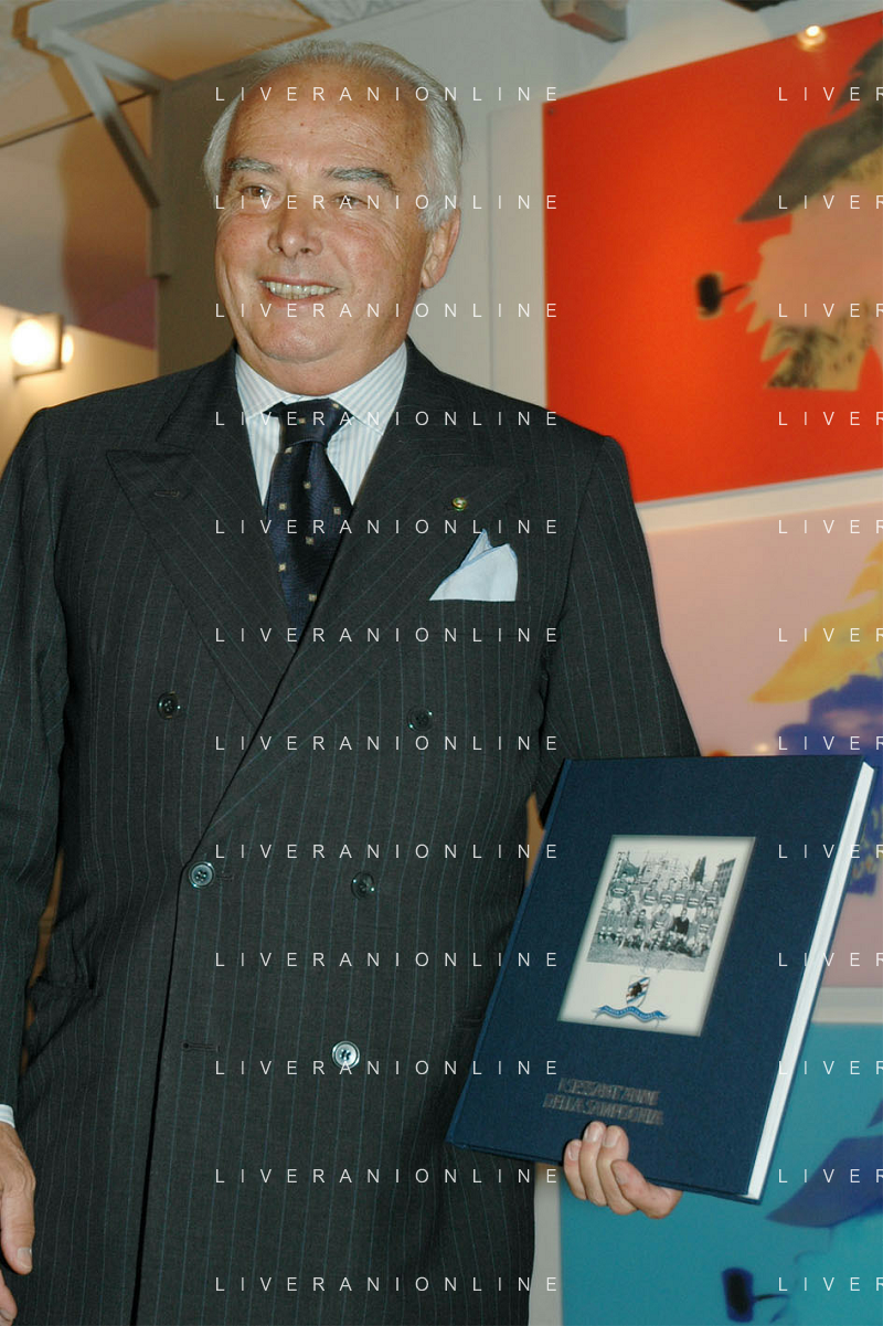 Genova, 15/06/06 Inaugurazione della mostra 'Semper uniti in gloria. I sessant'anni della Sampdoria' Nella foto: Il Presidente Riccardo Garrone mostra la pubblicazione 'I sessant'anni della Sampdoria' ph alessandro pintimalli / ag aldo