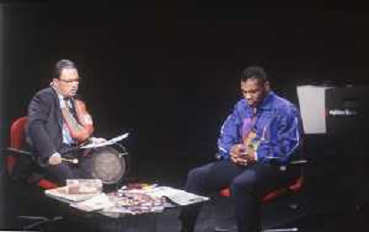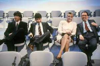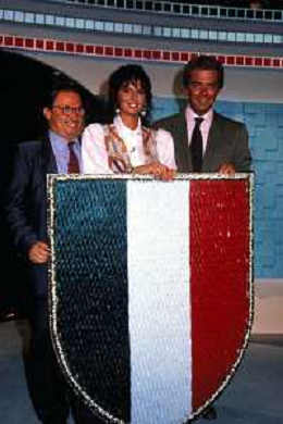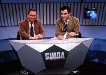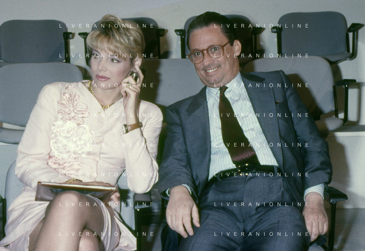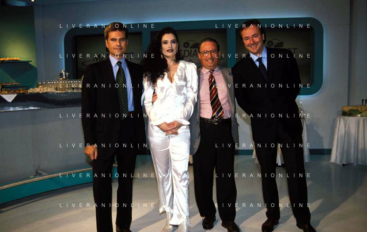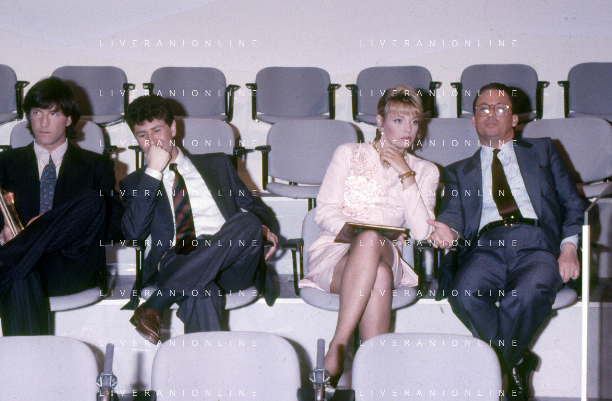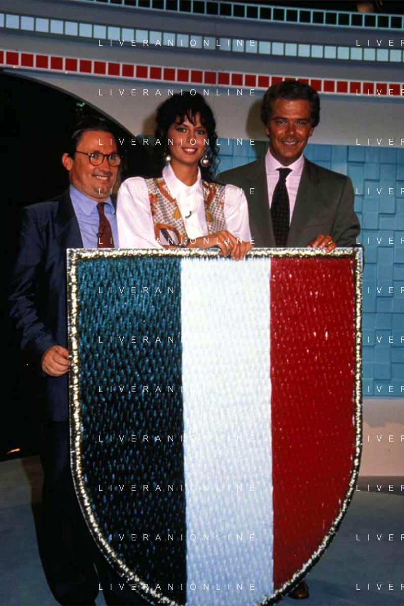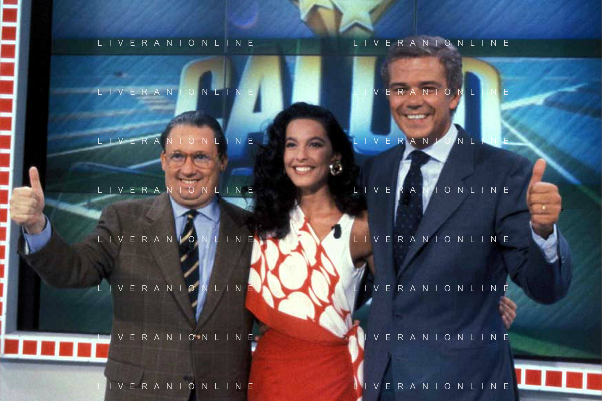 DIAP-RETROSPETTIVA MAURIZIO MOSCA GIORNALISTA NELLA FOTO MAURIZIO MOSCA CON FABIO FAZIO ROBERTA TERMALI E WALTER ZENGA TRASMISSIONE TELEVISIVA “FORZA ITALIA“ NELL'ANNO 1988 A MILANO AG ALDO LIVERANI SAS