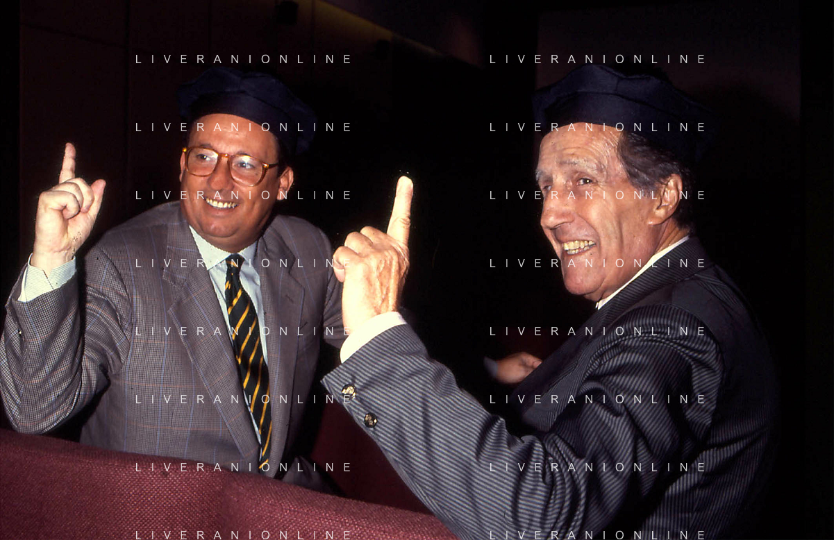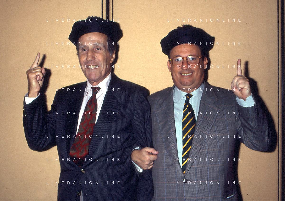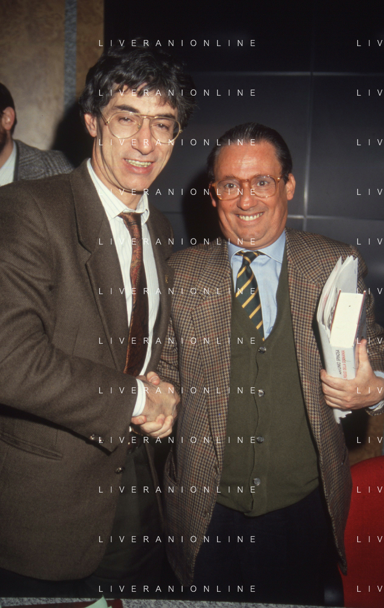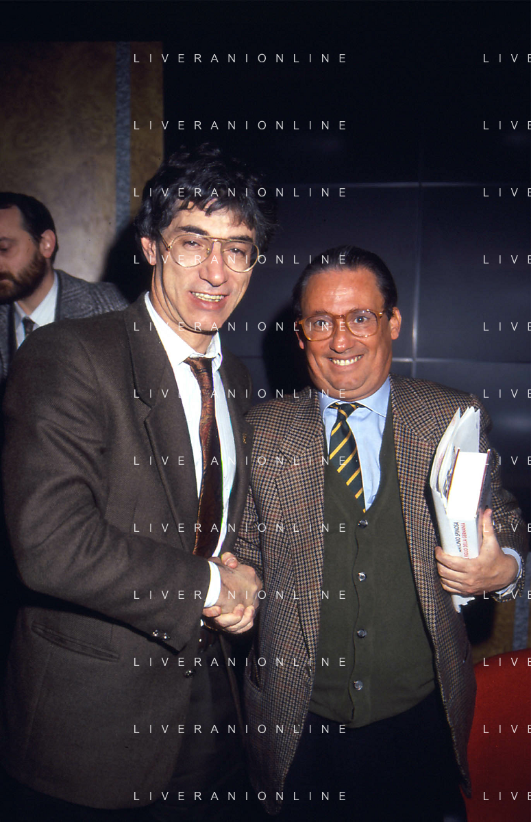 DIAP-RETROSPETTIVA MAURIZIO MOSCA GIORNALISTA E OPINIONISTA TELEVISIVO NELLA FOTO MAURIZIO MOSCACON SANDRO PICCININNI A MILANO NELL'ANNO 1994 AG ALDO LIVERANI SAS