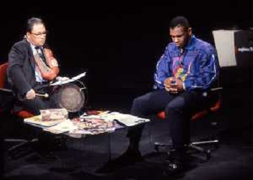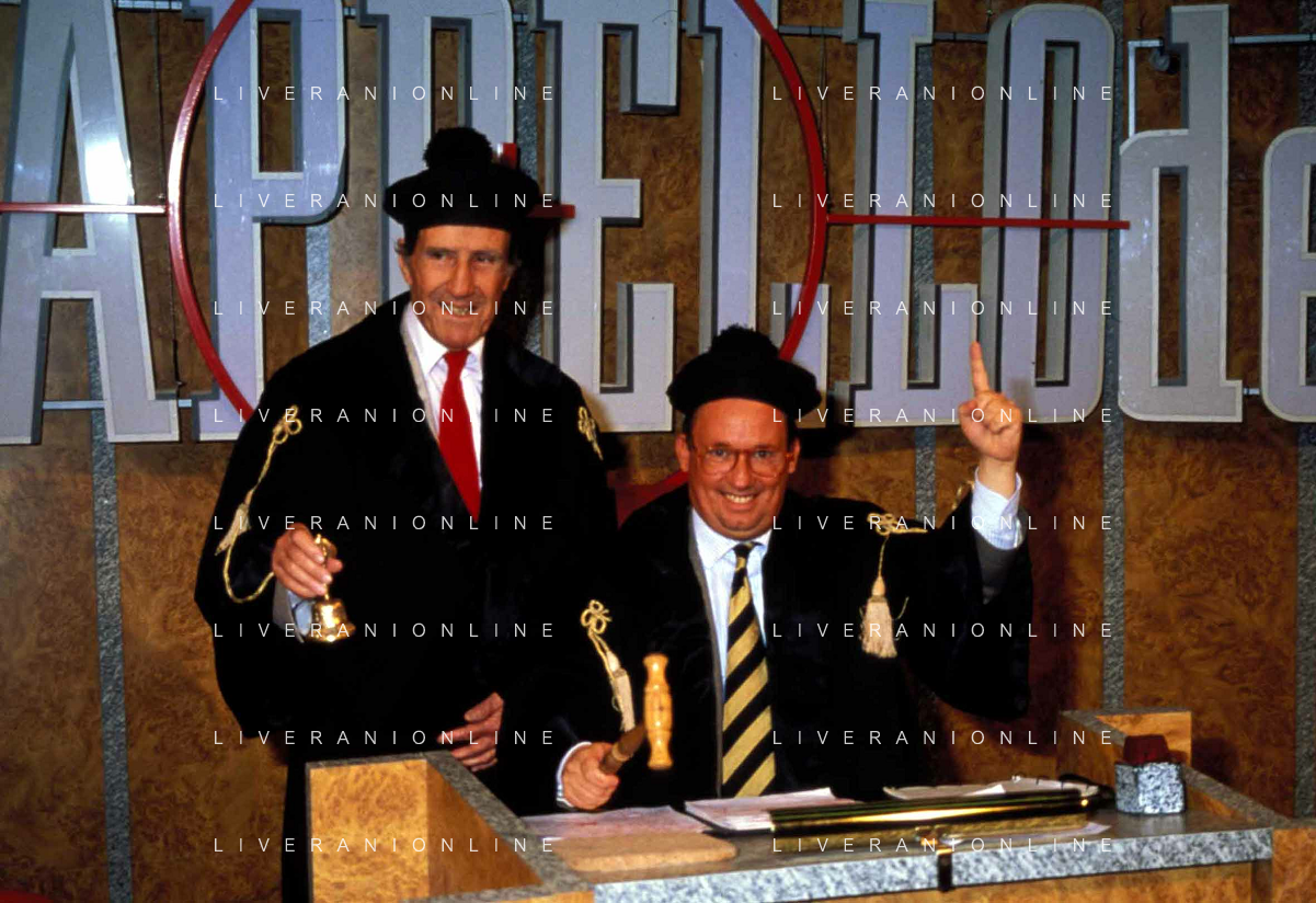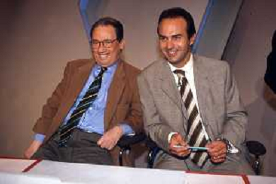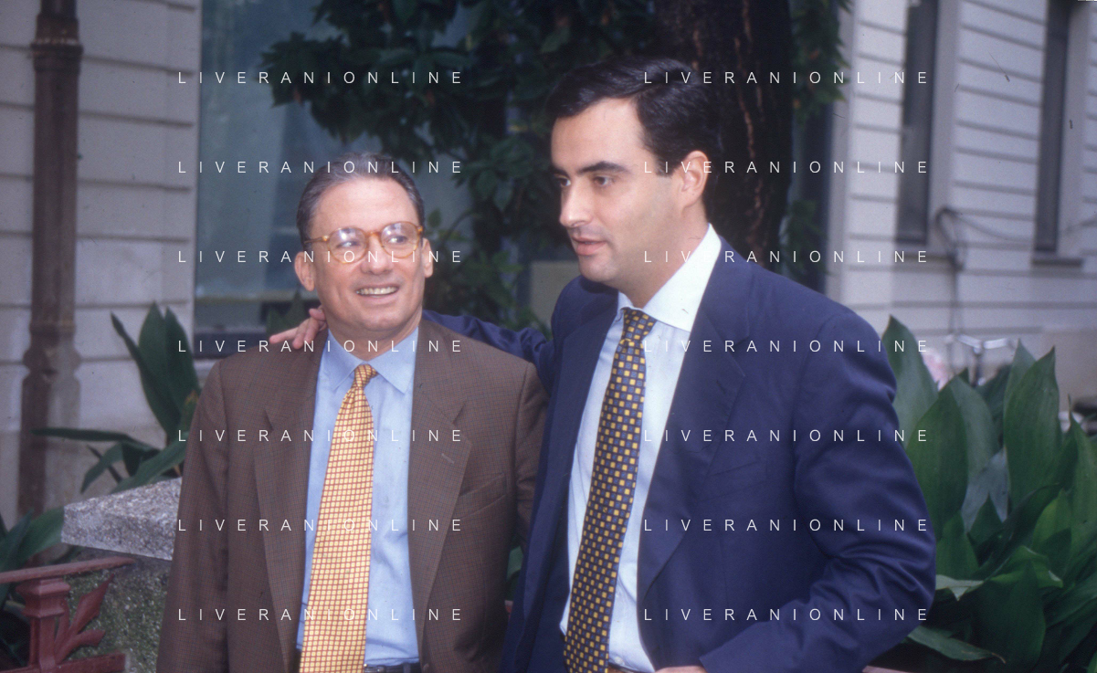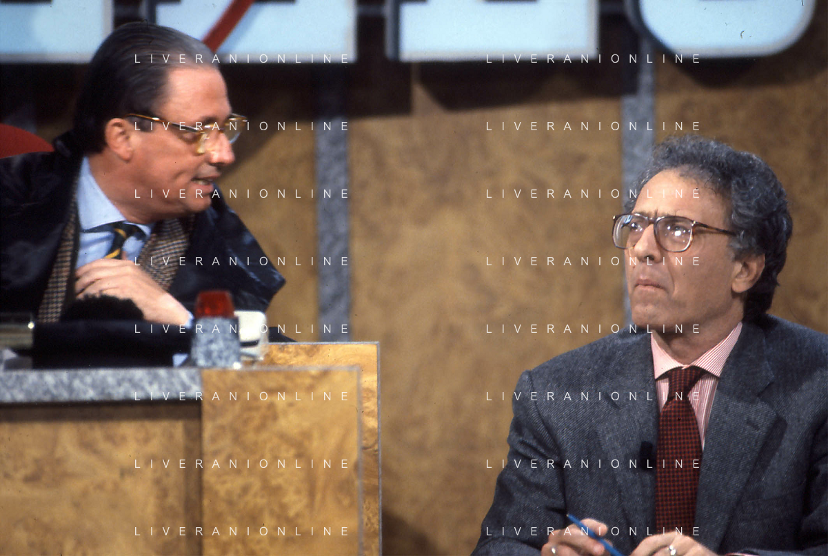 DIAP-RETROSPETTIVA MAURIZIO MOSCA GIORNALISTA E OPINIONISTA TELEVISIVO NELLA FOTO MAURIZIO MOSCACON SANDRO PICCININNI A MILANO NELL'ANNO 1994 AG ALDO LIVERANI SAS