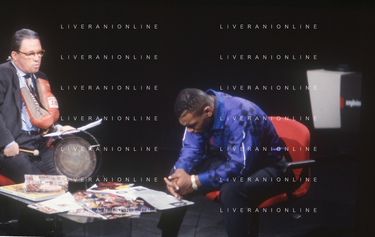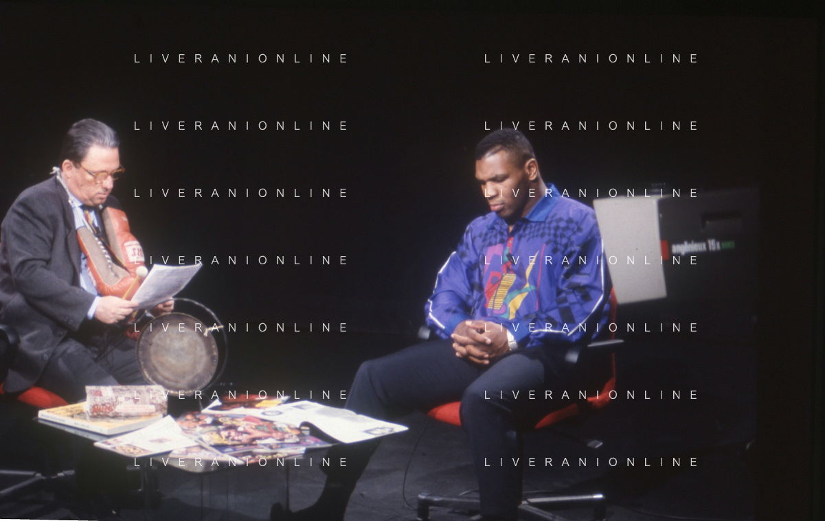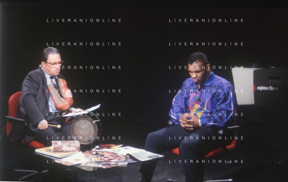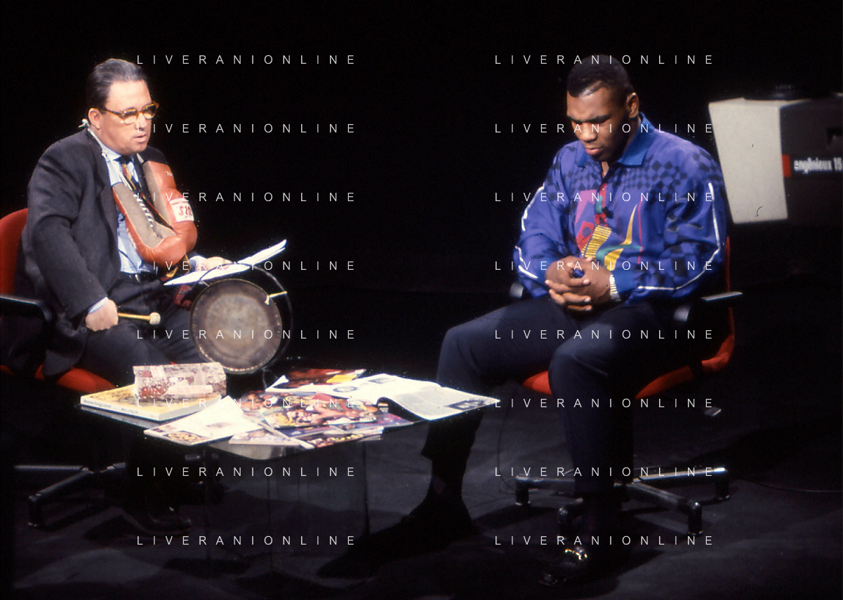 DIAP-RETROSPETTIVA MAURIZIO MOSCA GIORNALISTA NELLA FOTO MAURIZIO MOSCA E MIKE TYSON A MILANO AG ALDO LIVERANI SAS
