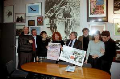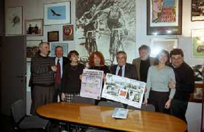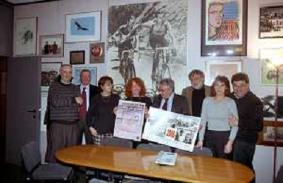 Gino Strada, medico fondatore assieme alla moglie Teresa Sarti dell'ONG italiana Emergency nella Redazione della Gazzetta dello Sport a Milano il 03.01.2000 Nella foto con il giornalista Sergio Gavardi, Roberto Milazzo vice direttore, Enrica Speroni, il Direttore Candido Cannavo', Gabriella Mancini e Daniele Redaelli ©Archivio Giovanni Liverani/DFP/AGENZIA ALDO LIVERANI SAS
