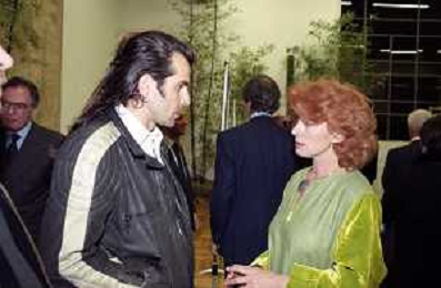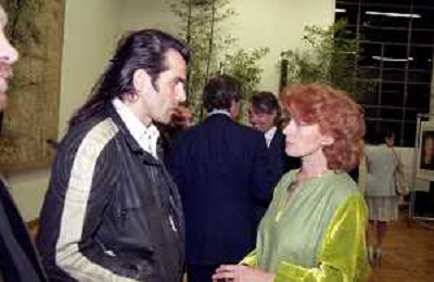 Teresa Sarti moglie di Gino Strada fondatore dell'ONG italiana Emergency, alla Mostra Benefica dell'Inter Calcio a Milano il 23.03.2000 Nella foto con Piero Pelu' ©Archivio Giovanni Liverani/DFP/AGENZIA ALDO LIVERANI SAS