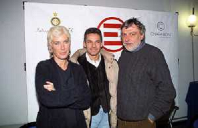 Teresa Sarti moglie di Gino Strada fondatore dell'ONG italiana Emergency, alla Mostra Benefica dell'Inter Calcio a Milano il 23.03.2000 Nella foto con Giacinto Facchetti e Ricky Gianco ©Archivio Giovanni Liverani/DFP/AGENZIA ALDO LIVERANI SAS