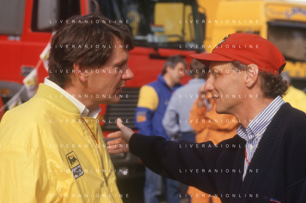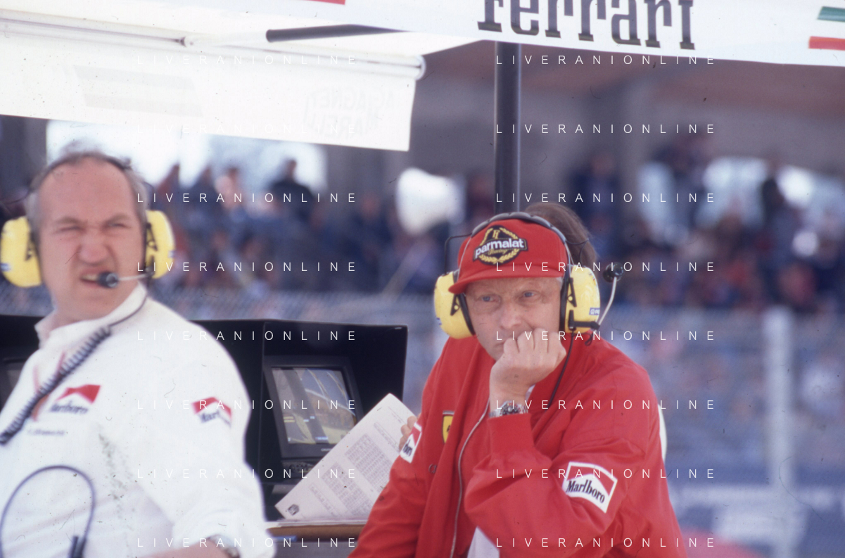 DIAP-RETROSPETTIVA NIKI LAUDA PILOTA F1 NELLA FOTO NIKI LAUDA NELL'ANNO 1987 CON JOHN BARNARD AG ALDO LIVERANI SAS