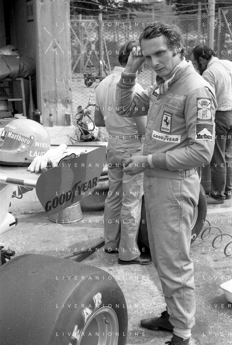 NEG-RETROSPETTIVA NIKI LAUDA PILOTA NELLA FOTO NIKI LAUDA A MONZA NELL'ANNO 1975 ARCHIVIO GIOVANNI LIVERANI-AG ALDO LIVERANI SAS