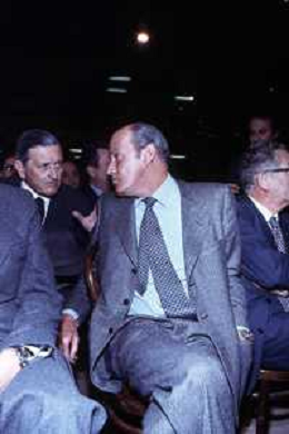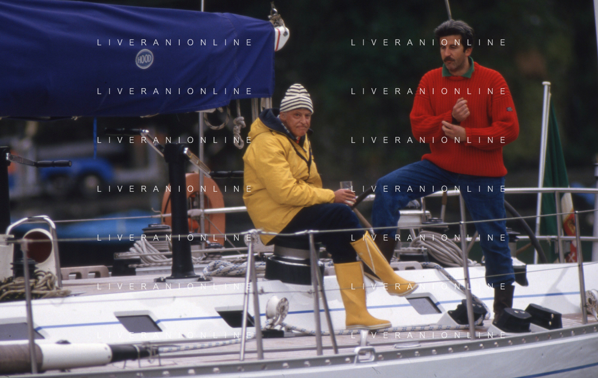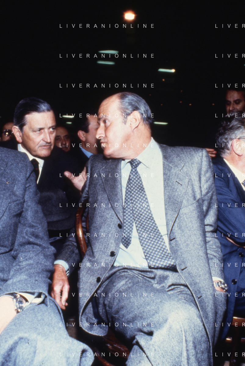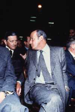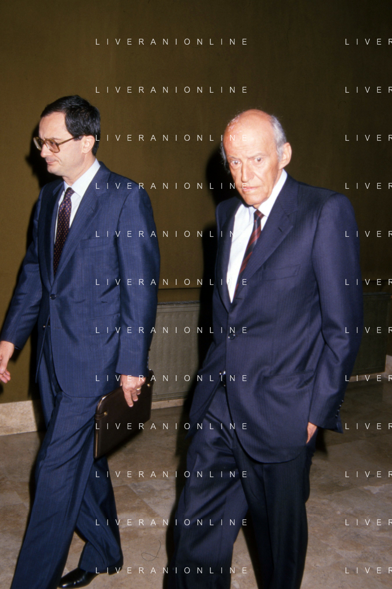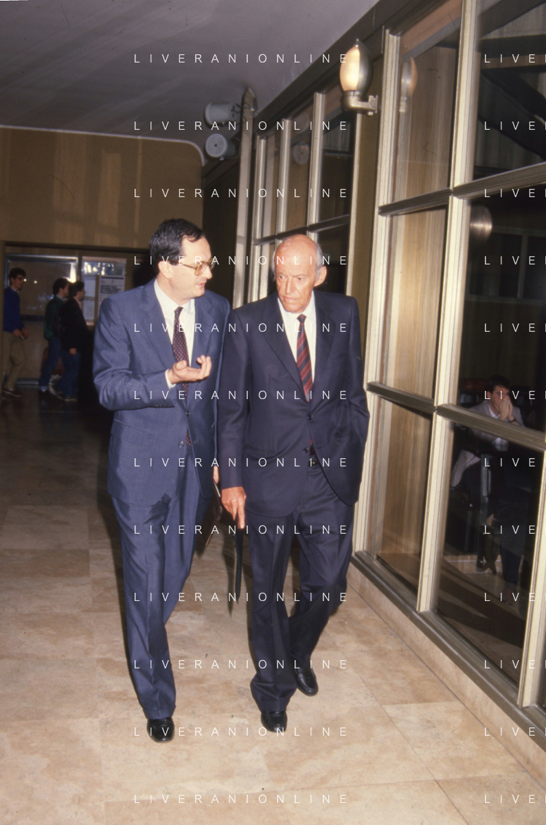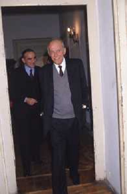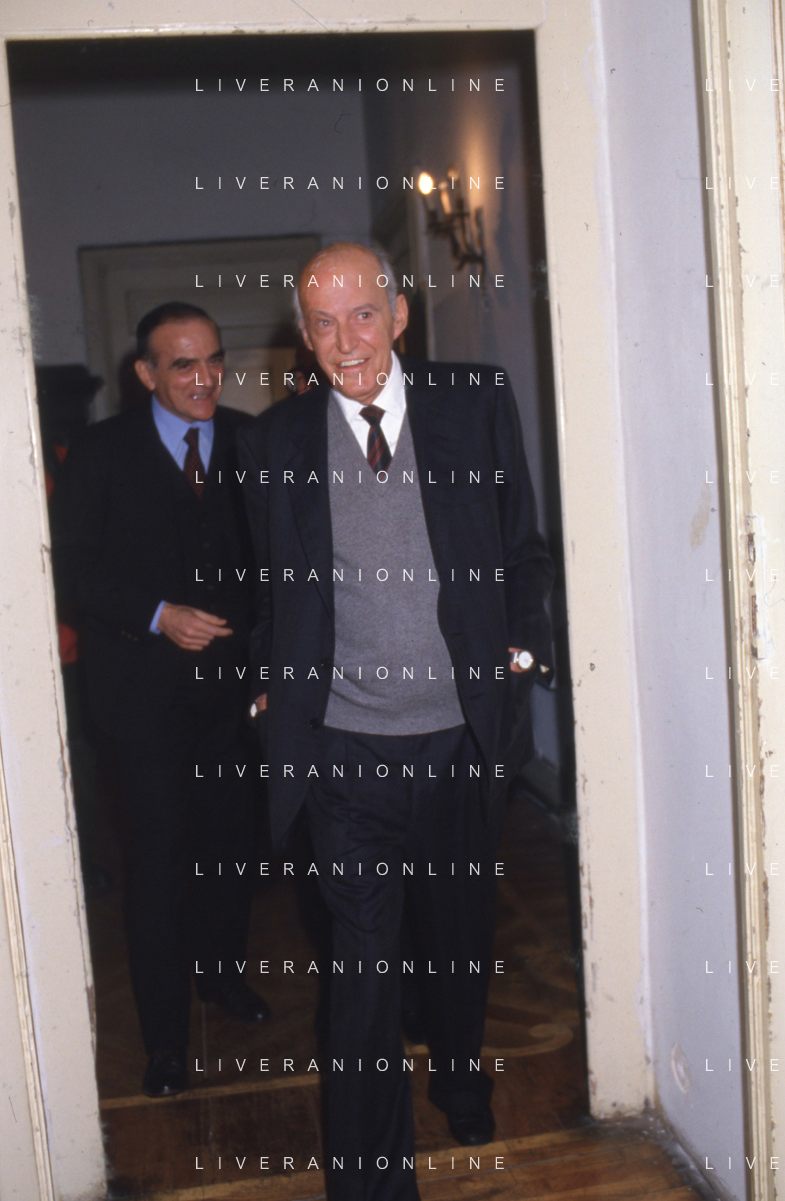 ST-RETROSPETTIVA LEOPOLDO PIRELLI INDUSTRIALE NELLA FOTO LEOPOLDO PIRELLI NELL'ANNO 1988 A MILANO CON VITTORIO GREGOTTI AG ALDO LIVERANI SAS