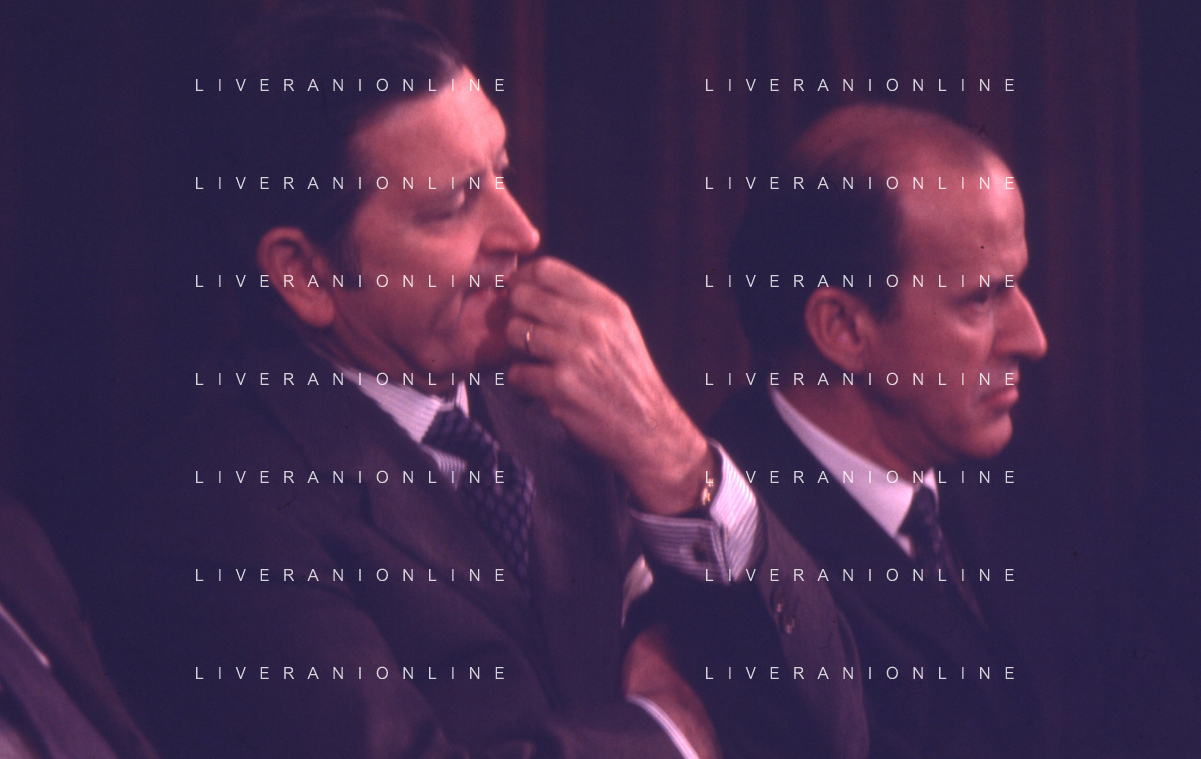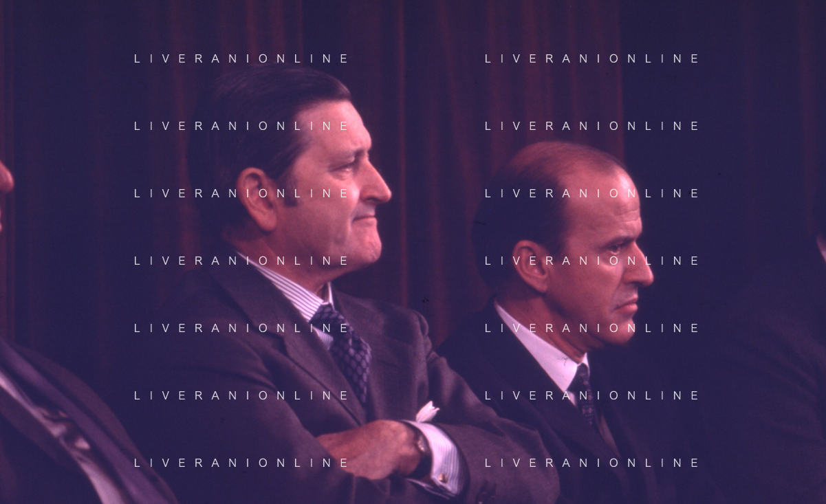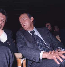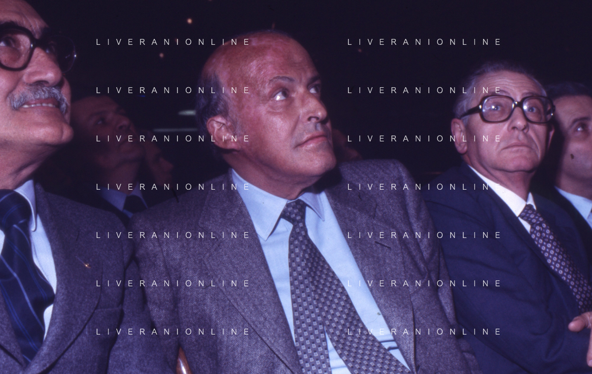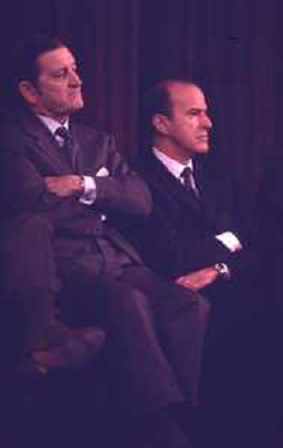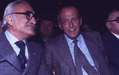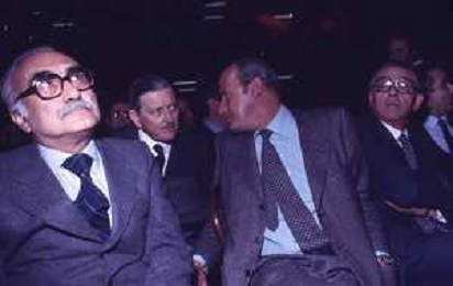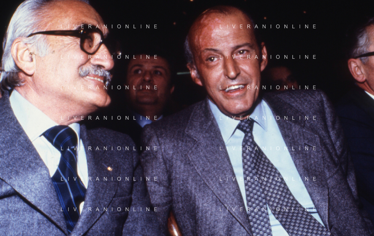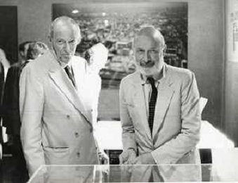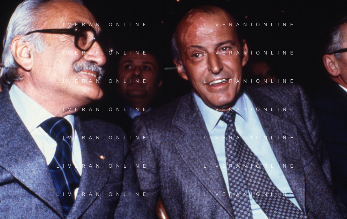 ST-RETROSPETTIVA LEOPOLDO PIRELLI INDUSTRIALE NELLA FOTO LEOPOLDO PIRELLI NELL'ANNO 1988 A MILANO CON VITTORIO GREGOTTI AG ALDO LIVERANI SAS