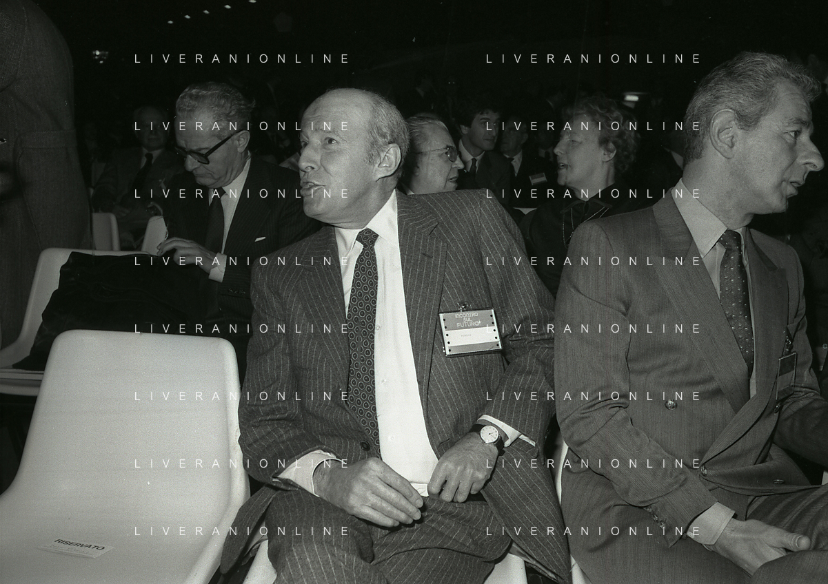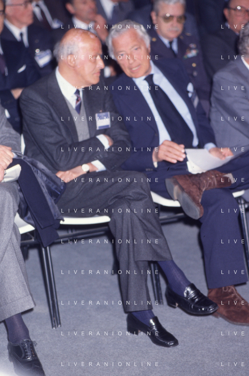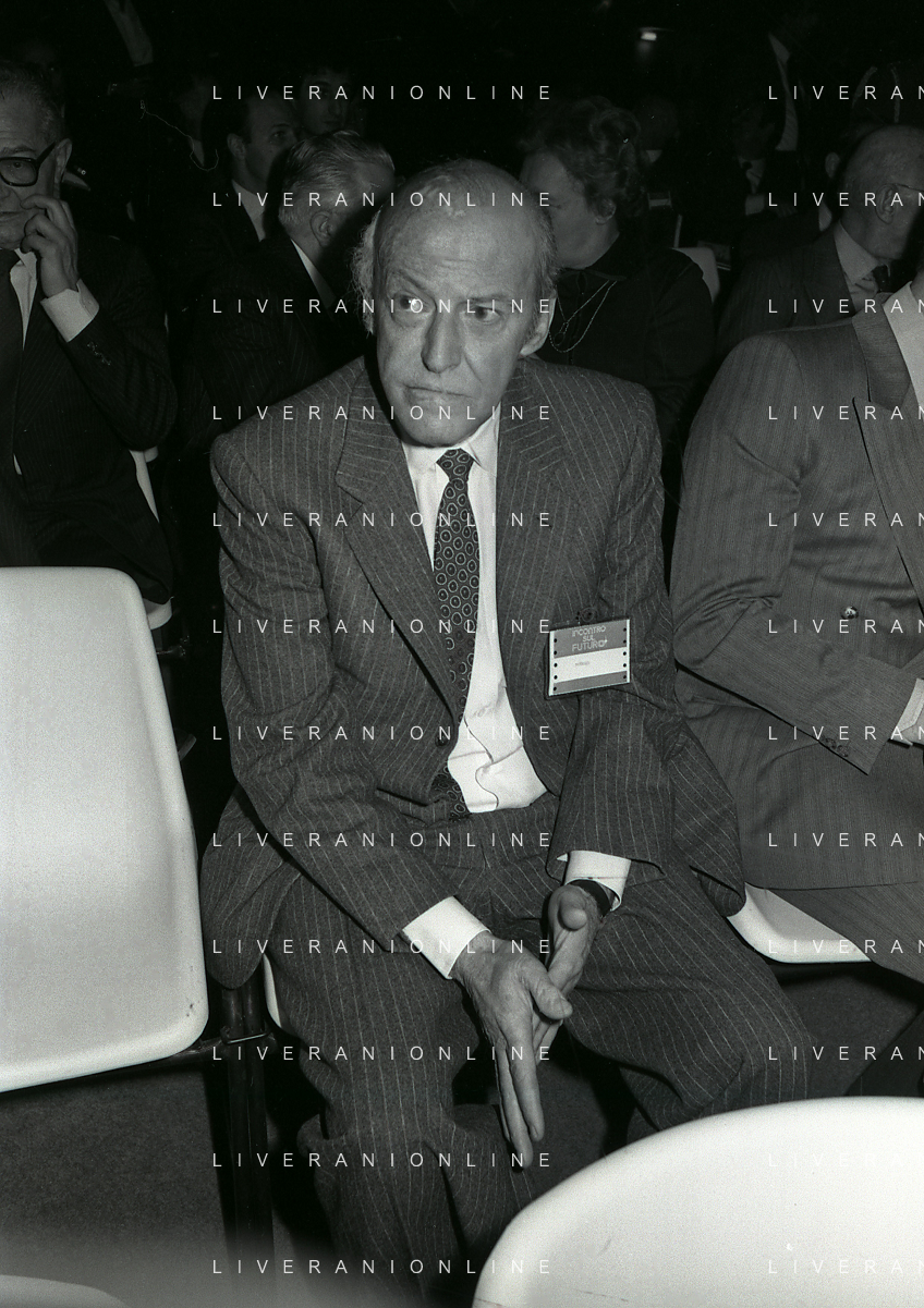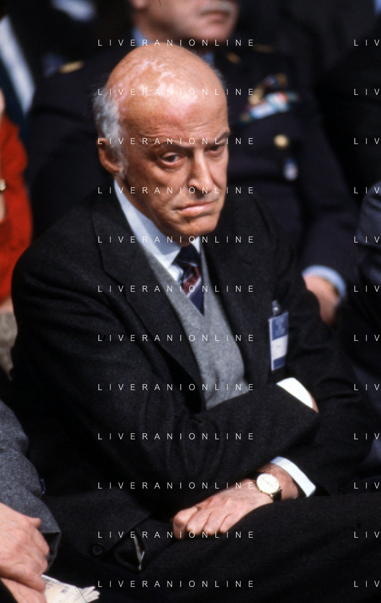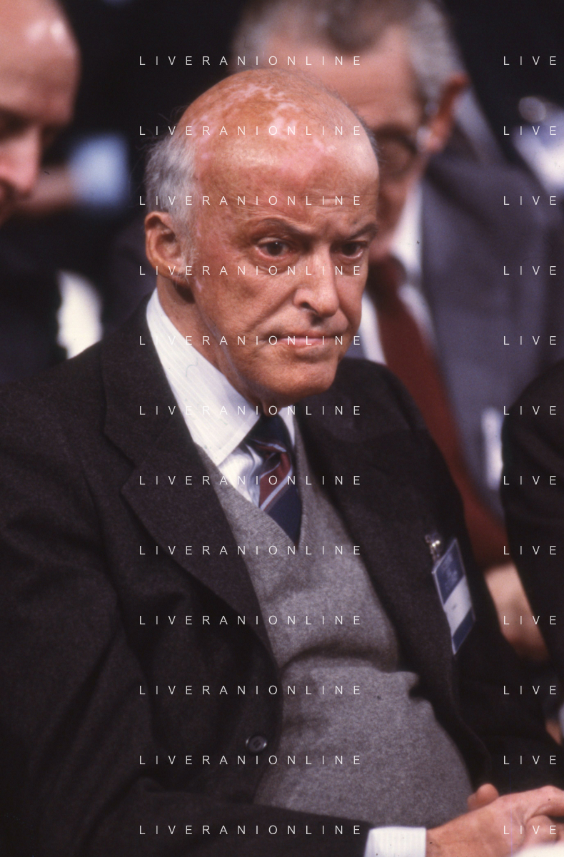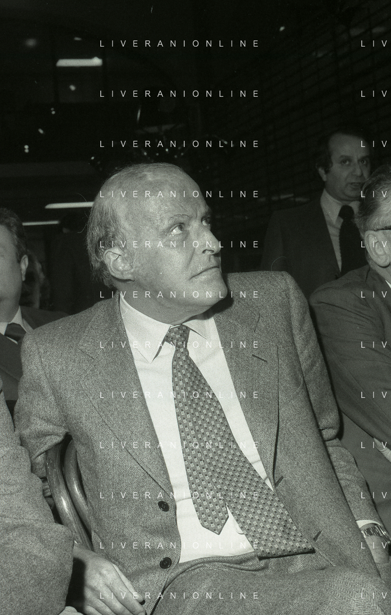 RETROSPETTIVA LEOPOLDO PIRELLI INDUSTRIALE NELLA FOTO LEOPOLDO PIRELLI PRESENZIA A UN CONVEGNO A MILANO DI CONFINDUSTRIA NELL'ANNO 1984 AG ALDO LIVERANI SAS
