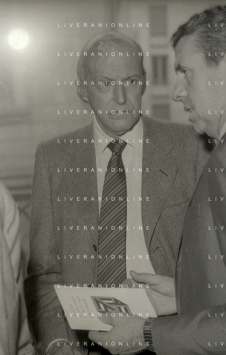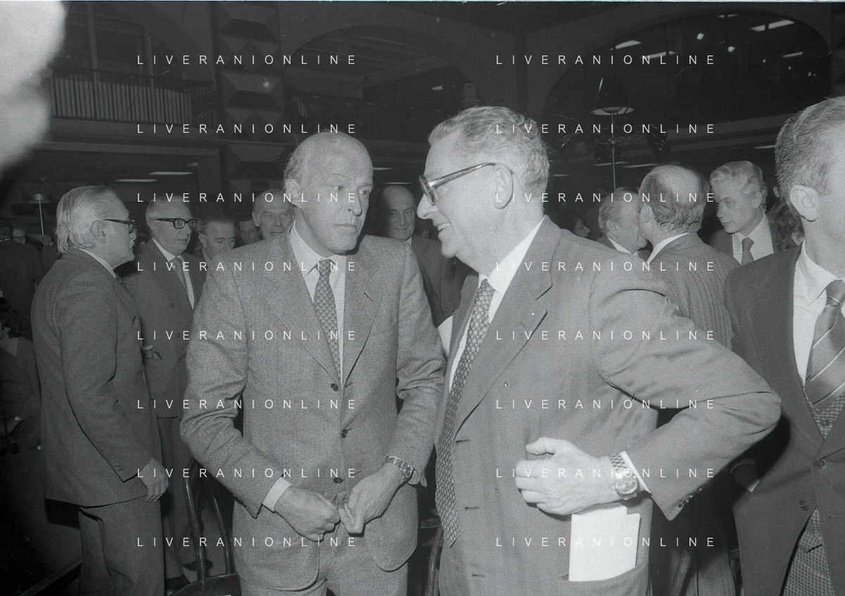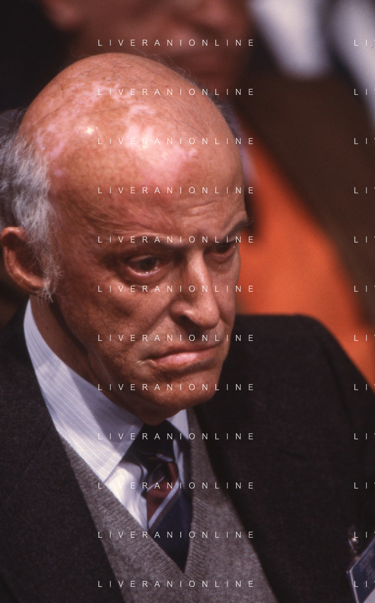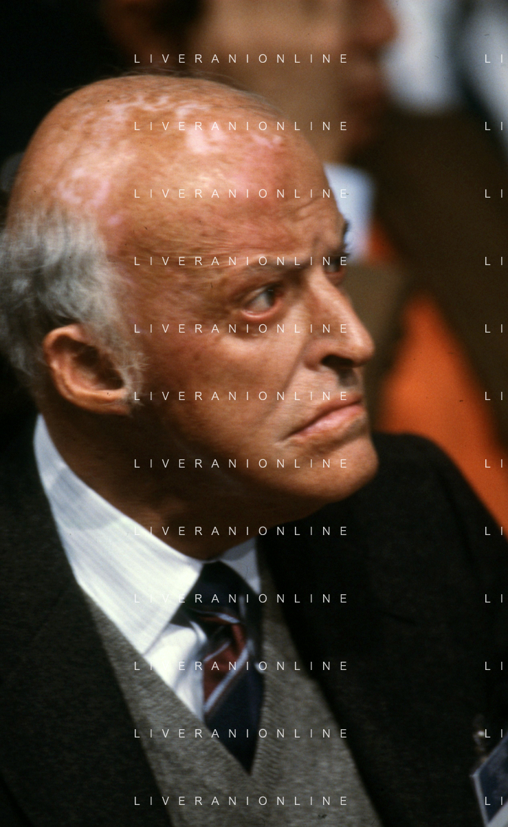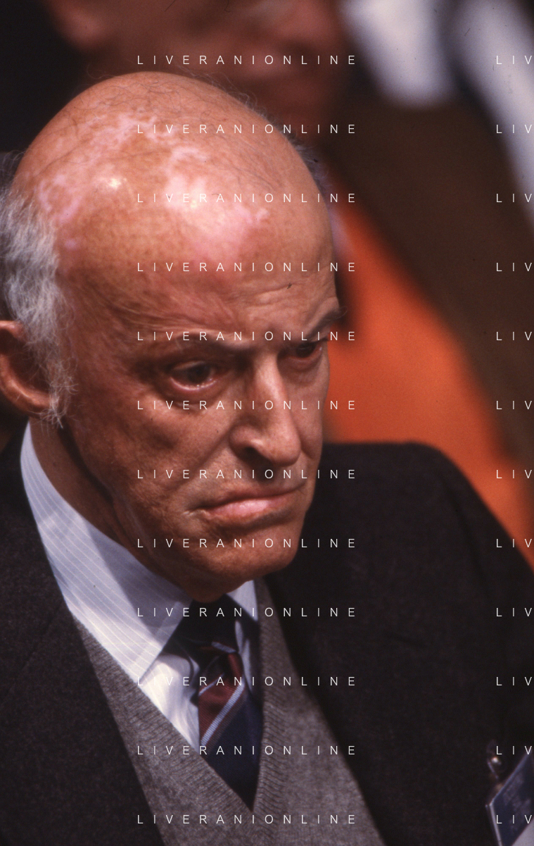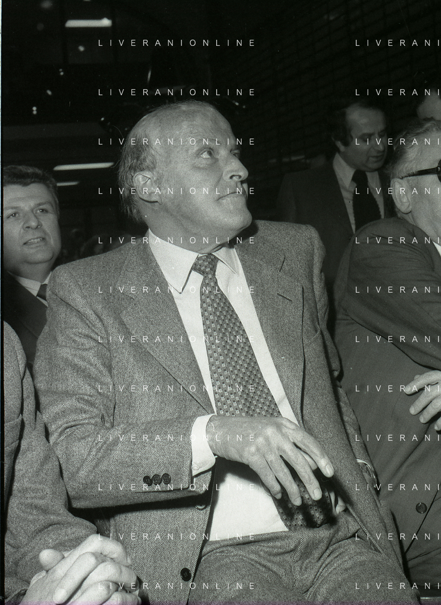 RETROSPETTIVA LEOPOLDO PIRELLI INDUSTRIALE NELLA FOTO LEOPOLDO PIRELLI PRESENZIA A UN CONVEGNO A MILANO DI CONFINDUSTRIA NELL'ANNO 1984 AG ALDO LIVERANI SAS