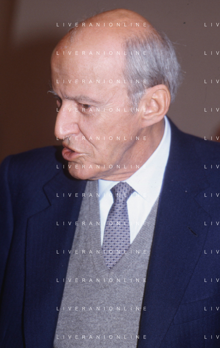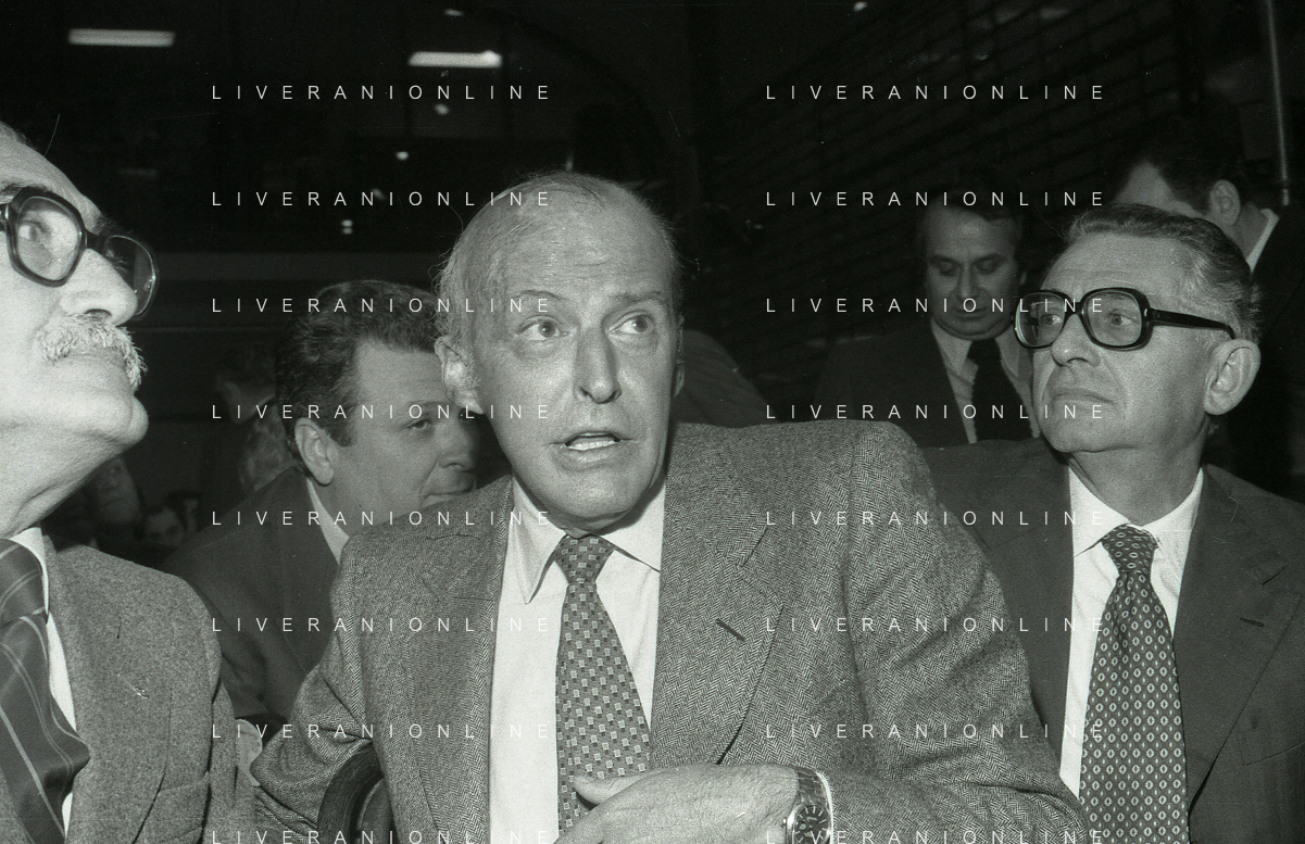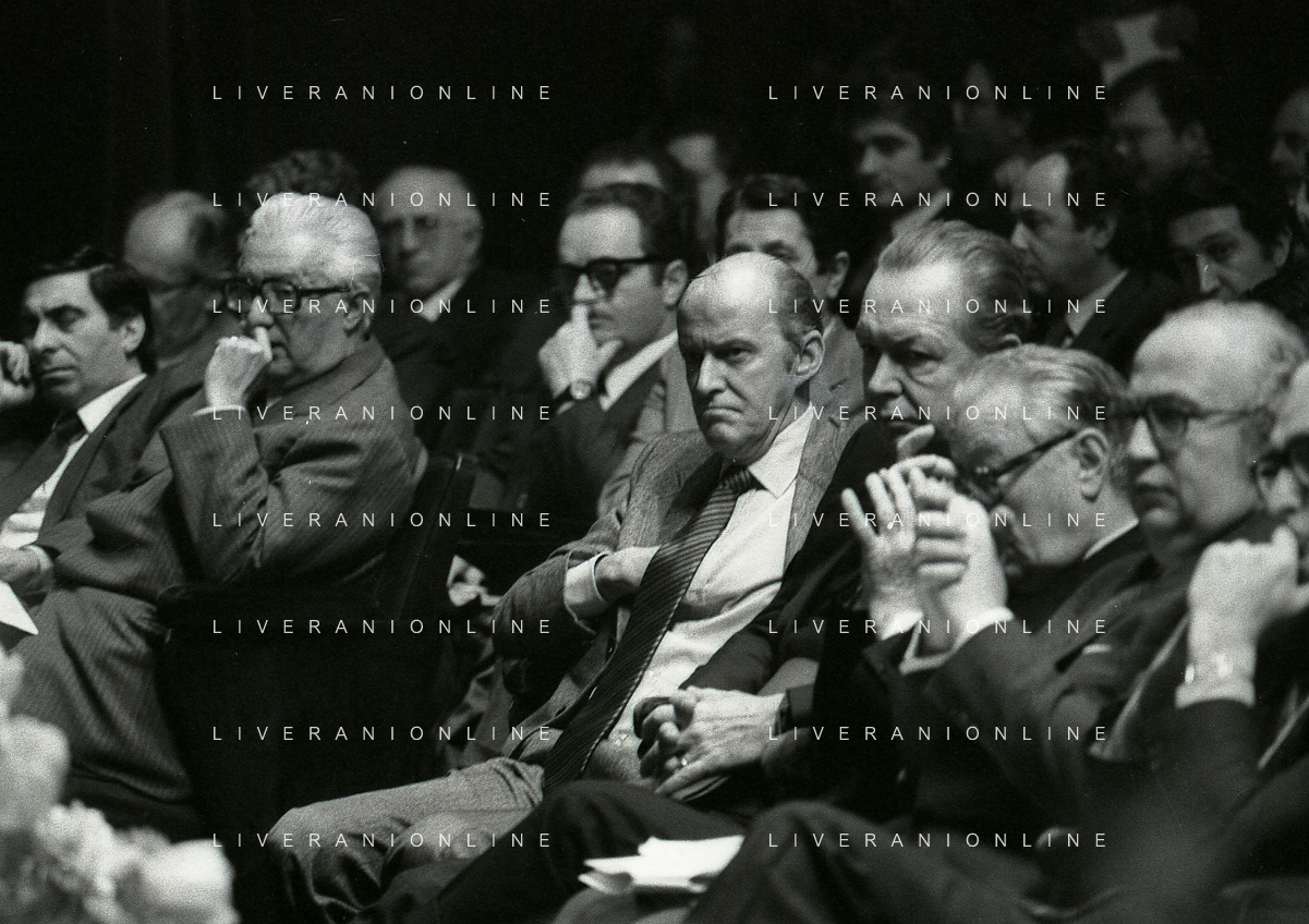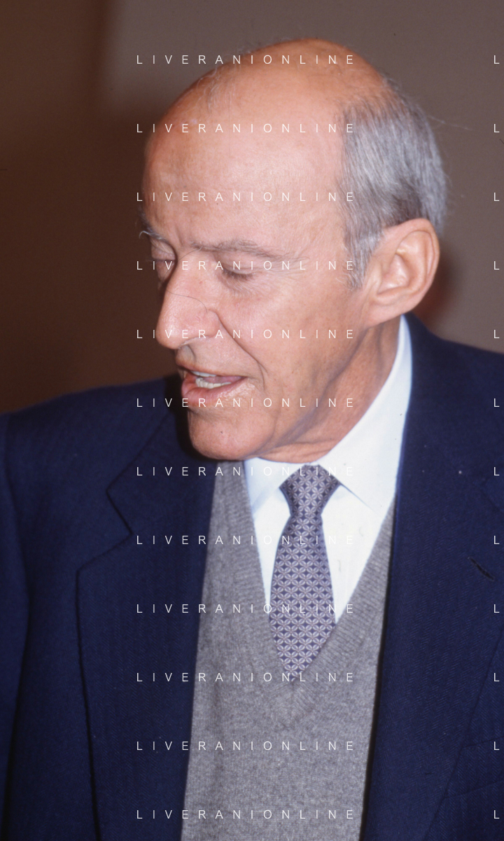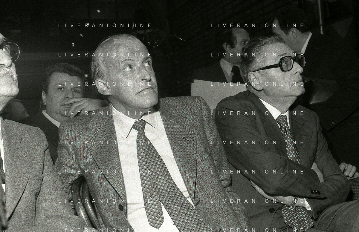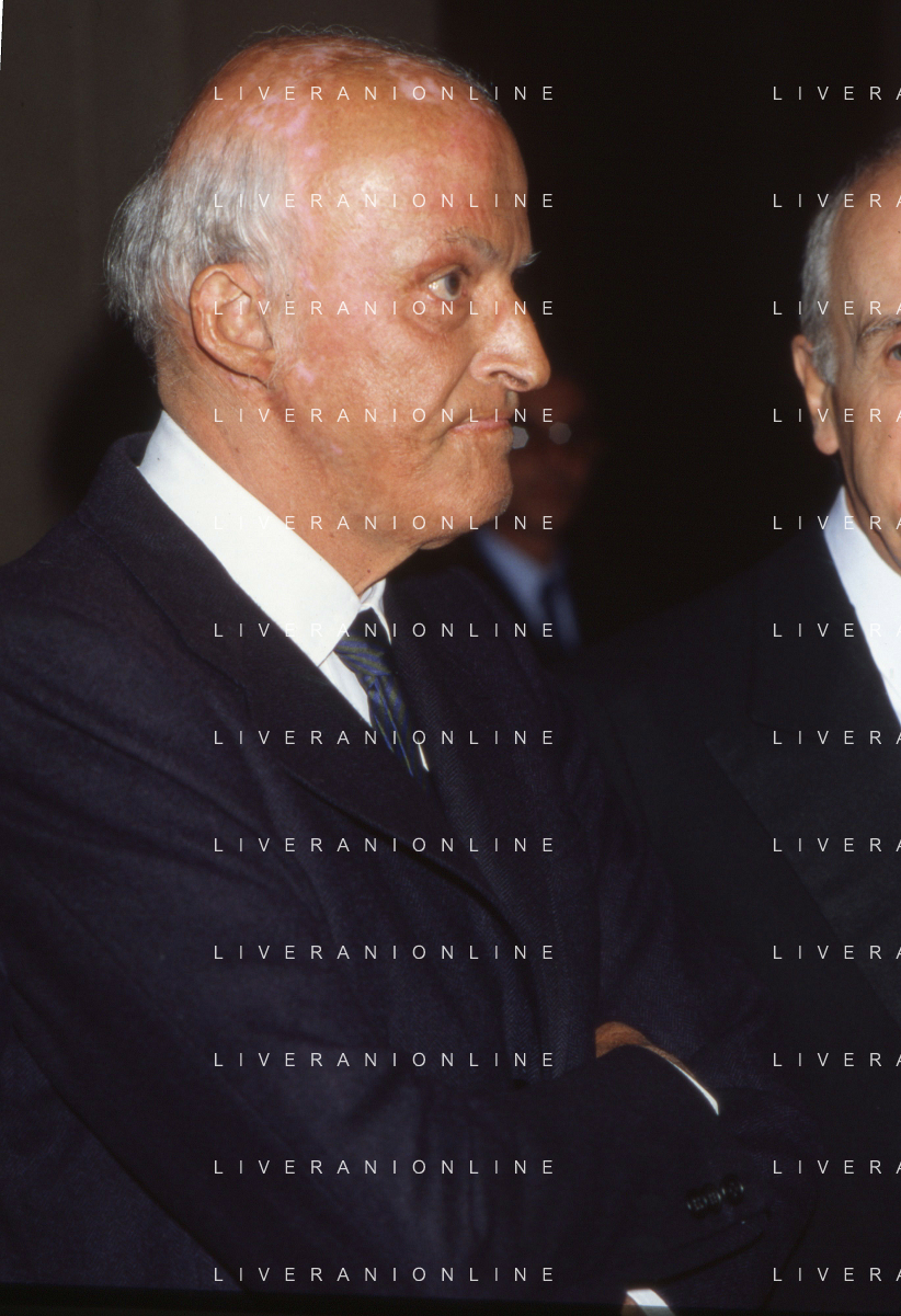RETROSPETTIVA LEOPOLDO PIRELLI INDUSTRIALE NELLA FOTO LEOPOLDO PIRELLI PRESENZIA A UN CONVEGNO A MILANO DI CONFINDUSTRIA NELL'ANNO 1984 AG ALDO LIVERANI SAS