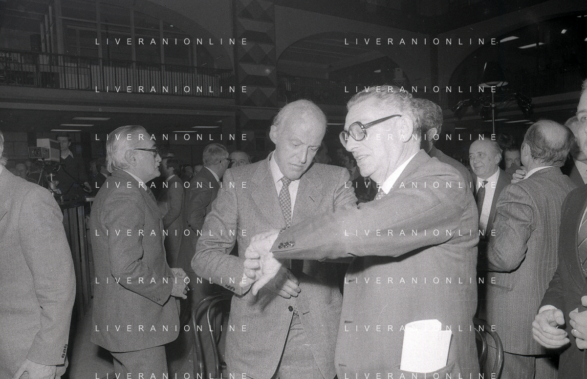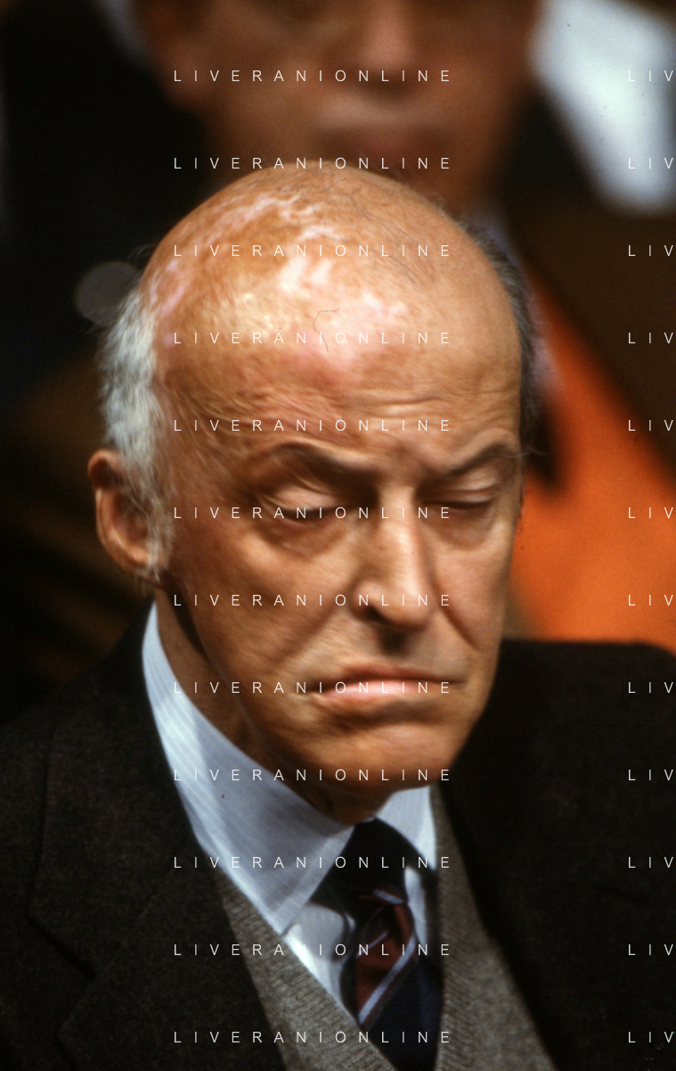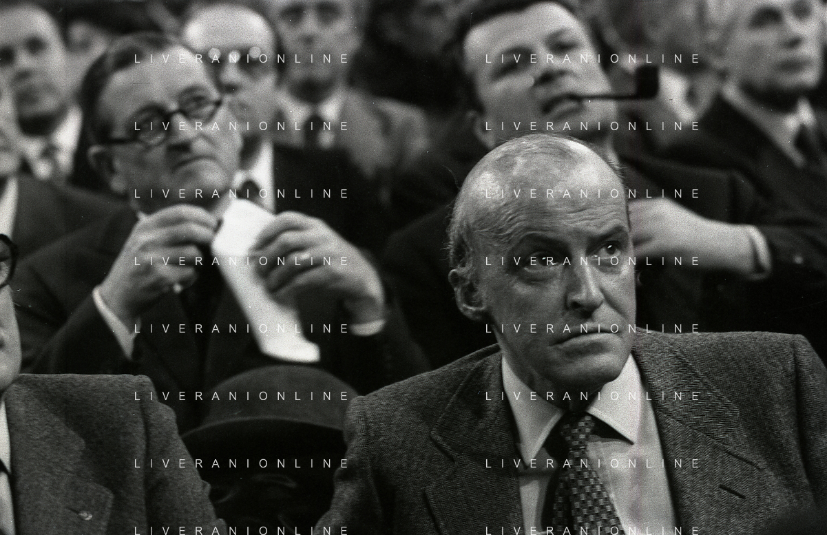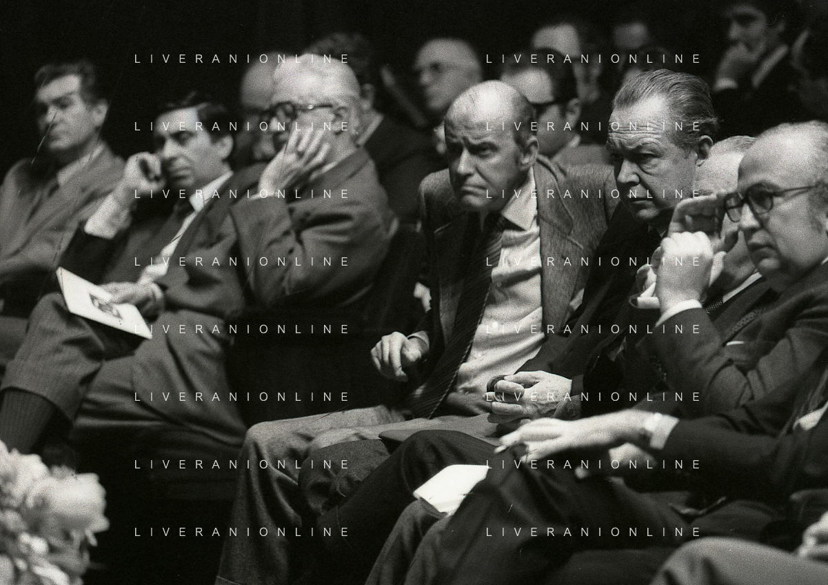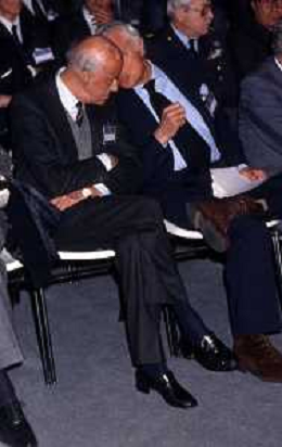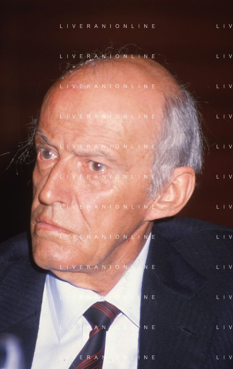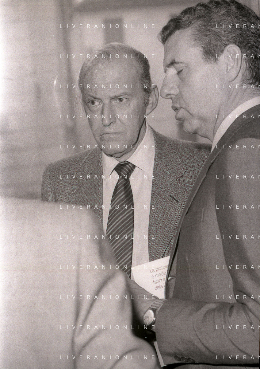 RETROSPETTIVA LEOPOLDO PIRELLI INDUSTRIALE NELLA FOTO LEOPOLDO PIRELLI PRESENZIA A UN CONVEGNO A MILANO DI CONFINDUSTRIA NELL'ANNO 1984 AG ALDO LIVERANI SAS