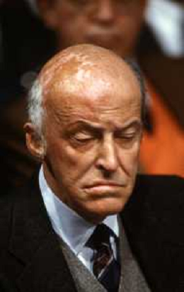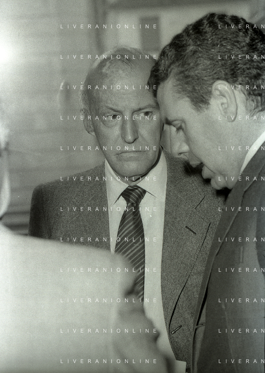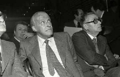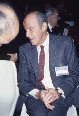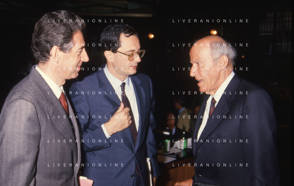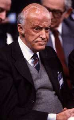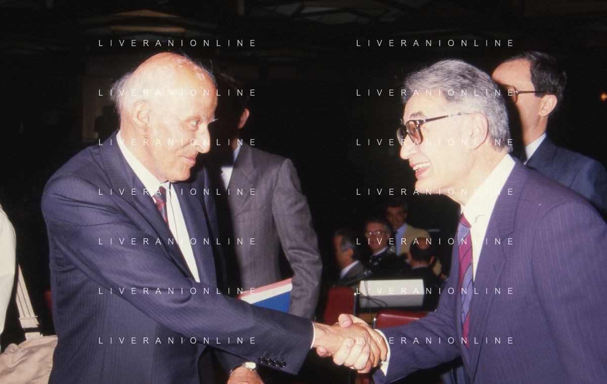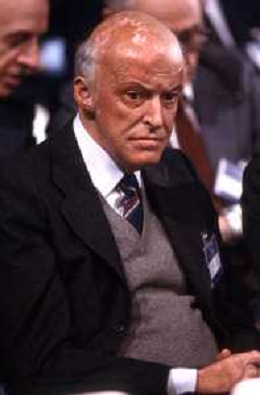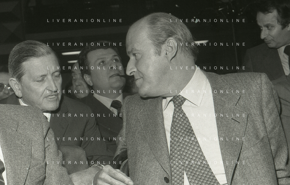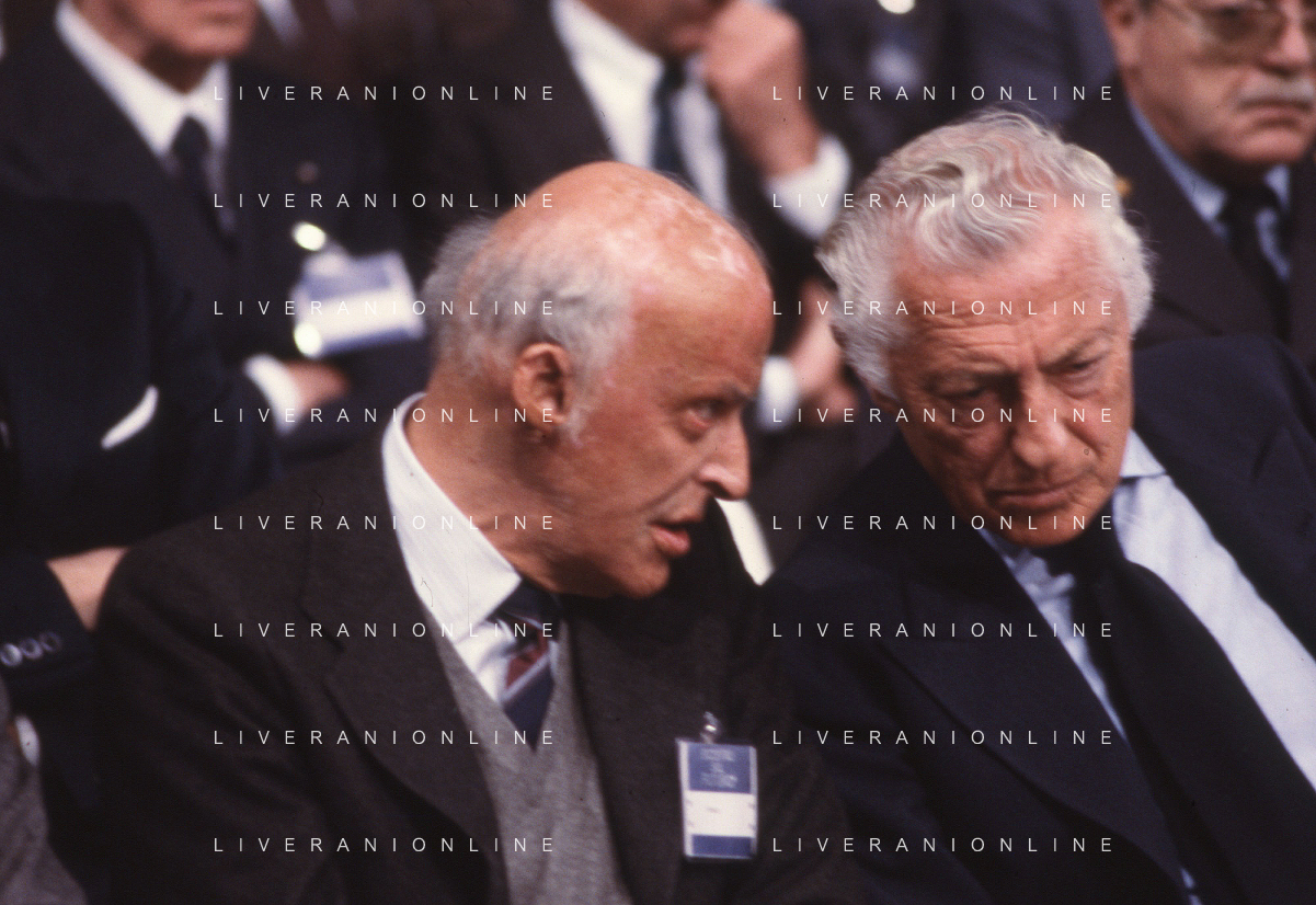 RETROSPETTIVA LEOPOLDO PIRELLI INDUSTRIALE NELLA FOTO LEOPOLDO PIRELLI PRESENZIA A UN CONVEGNO A MILANO DI CONFINDUSTRIA NELL'ANNO 1984 AG ALDO LIVERANI SAS