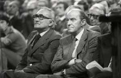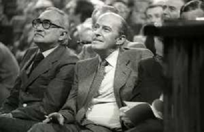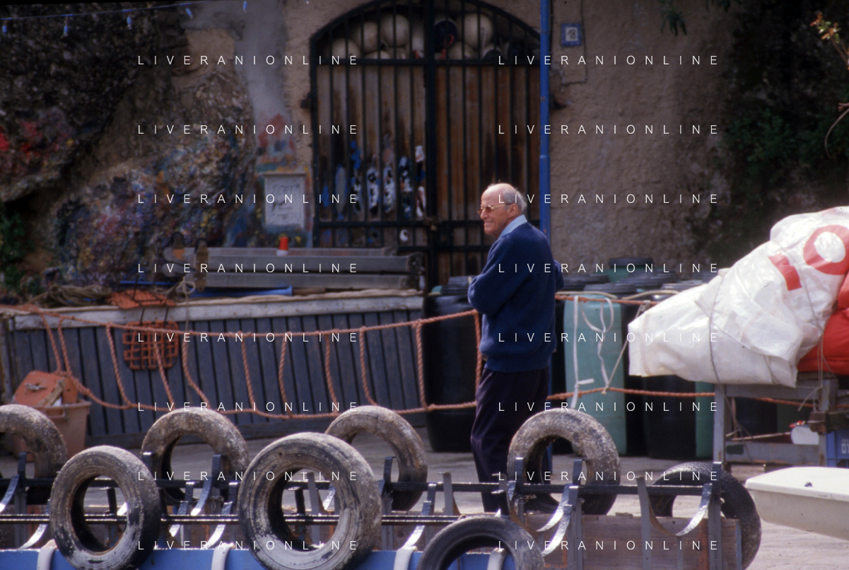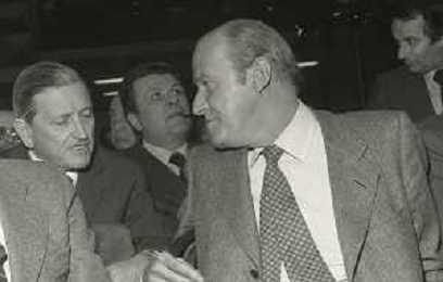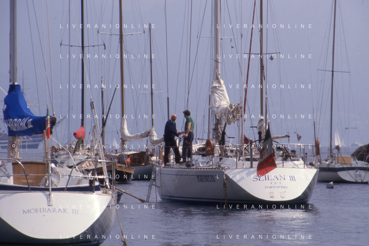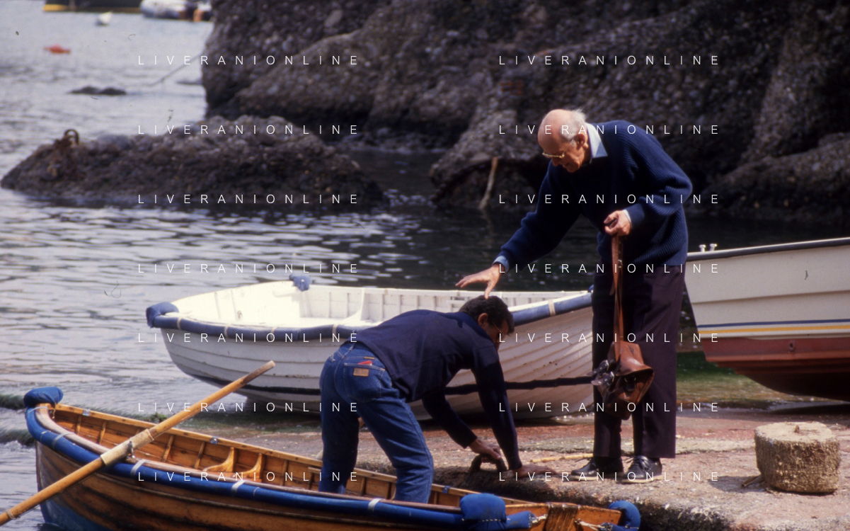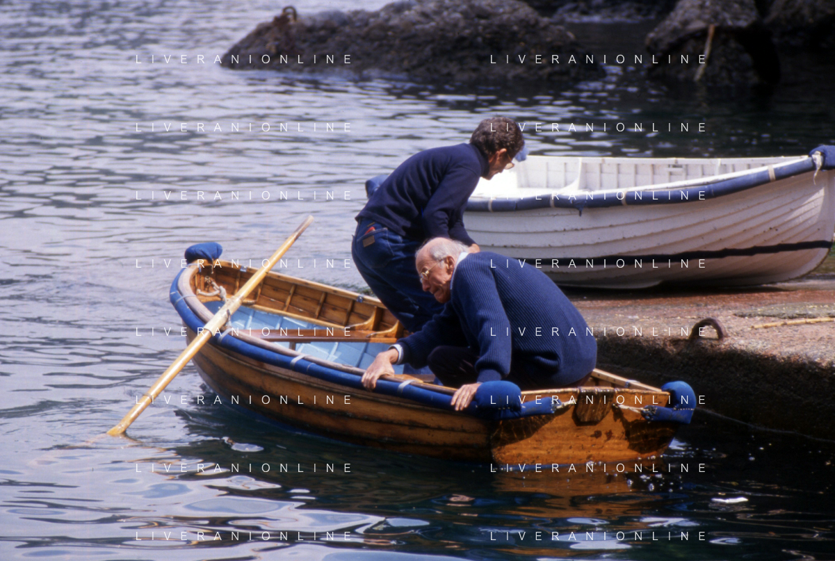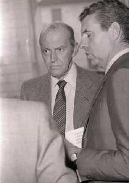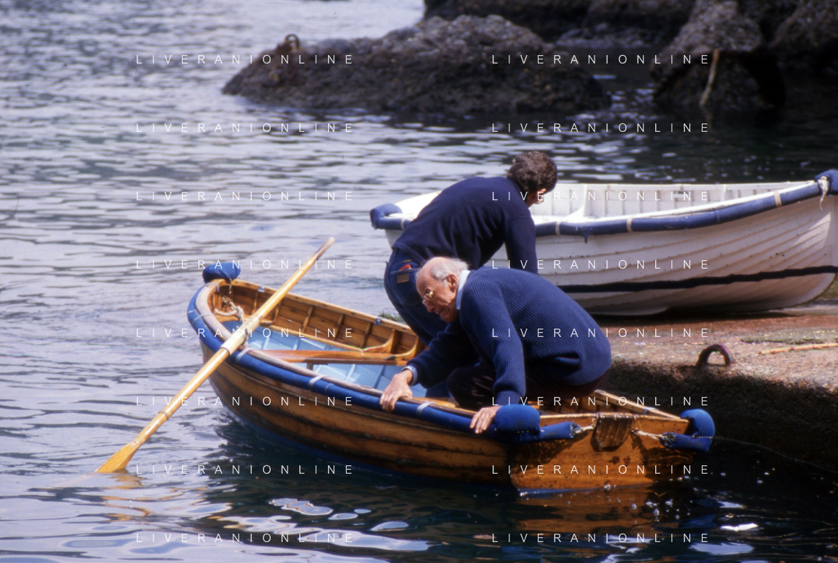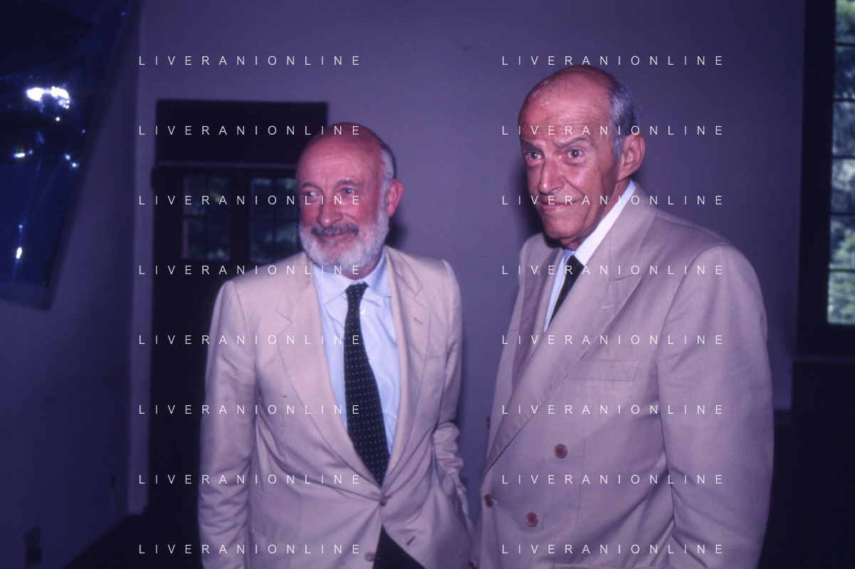 RETROSPETTIVA LEOPOLDO PIRELLI INDUSTRIALE NELLA FOTO LEOPOLDO PIRELLI A RAPALLO NELL'ANNO 1980 CON ROSARIO PRIMO DE RIVERA AG ALDO LIVERANI SAS