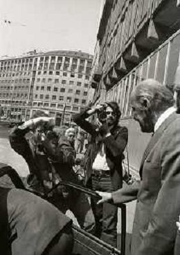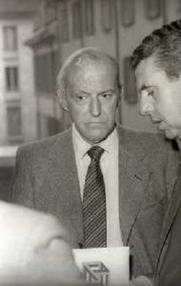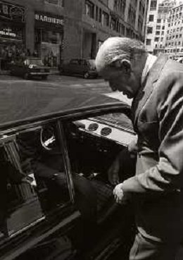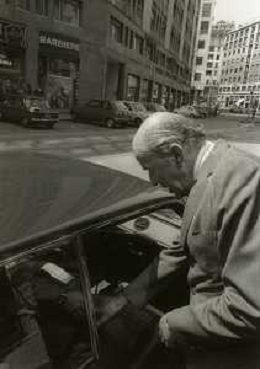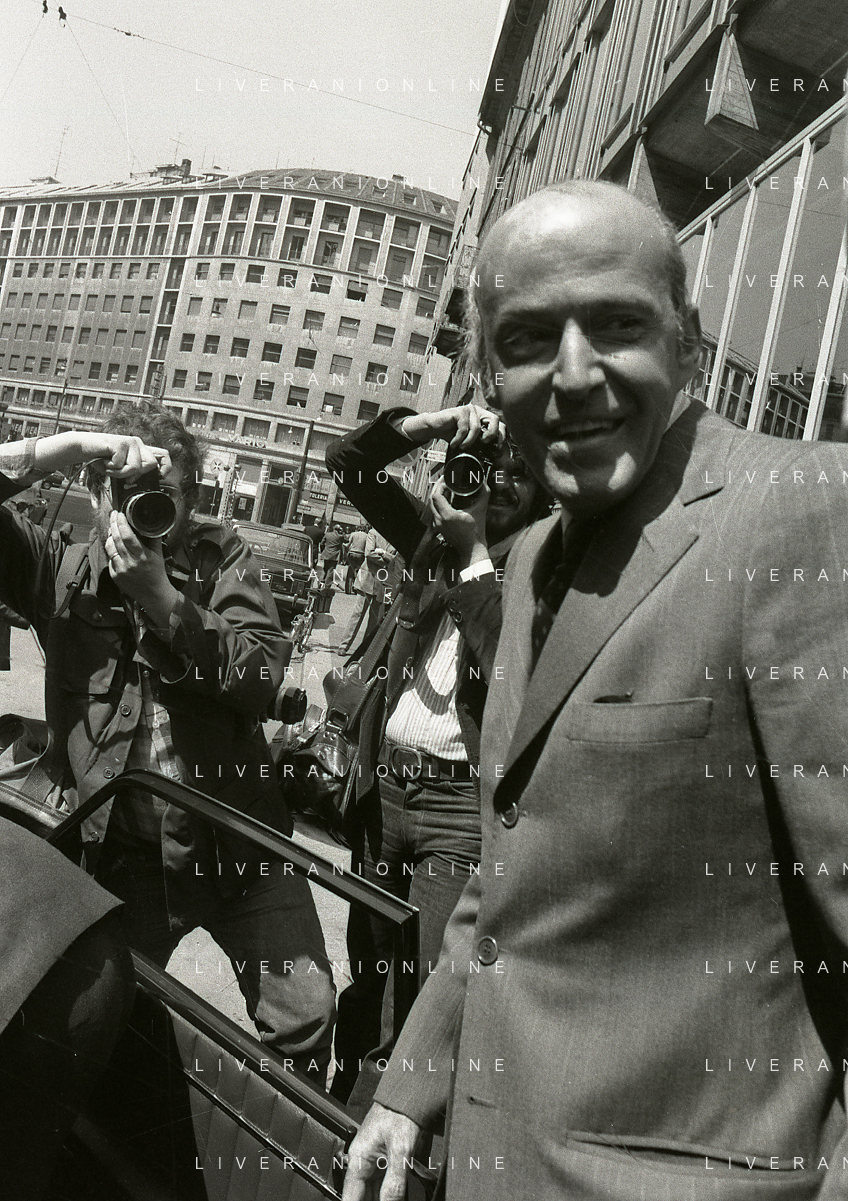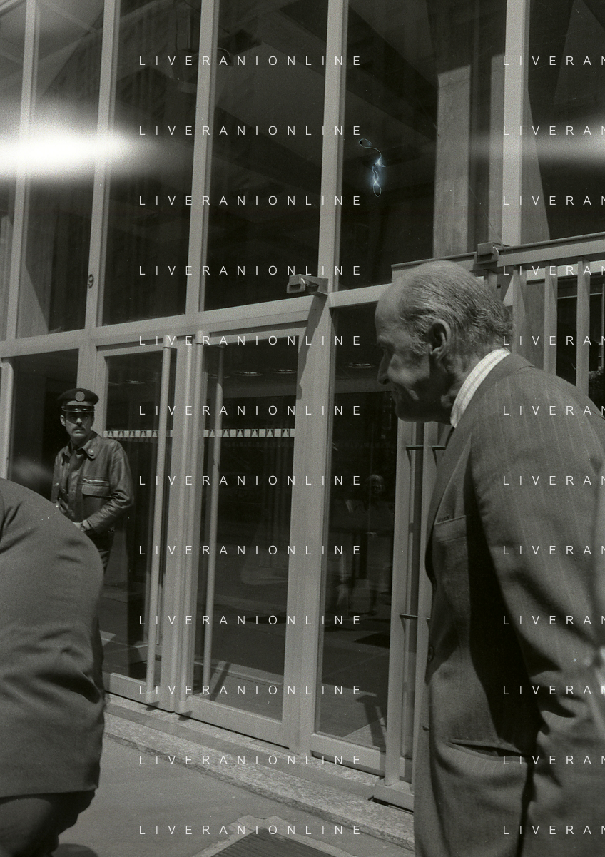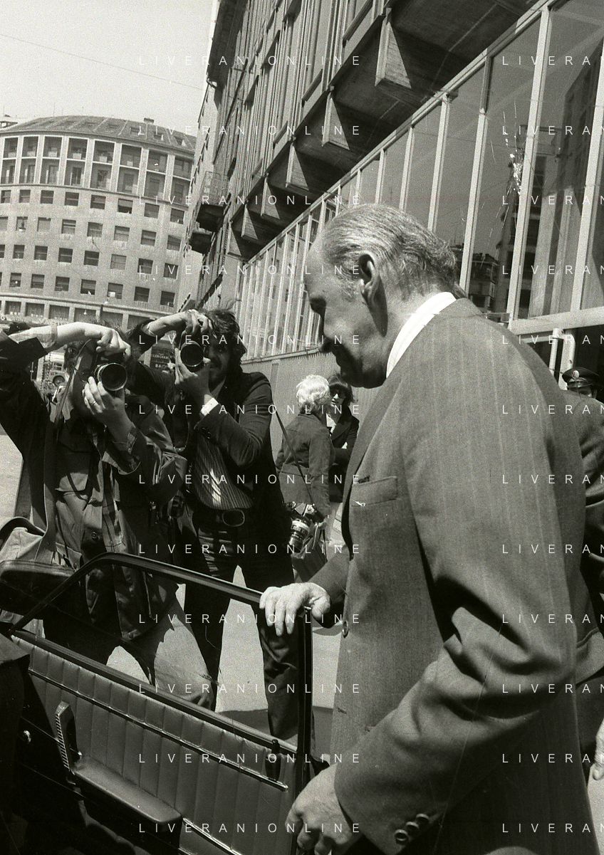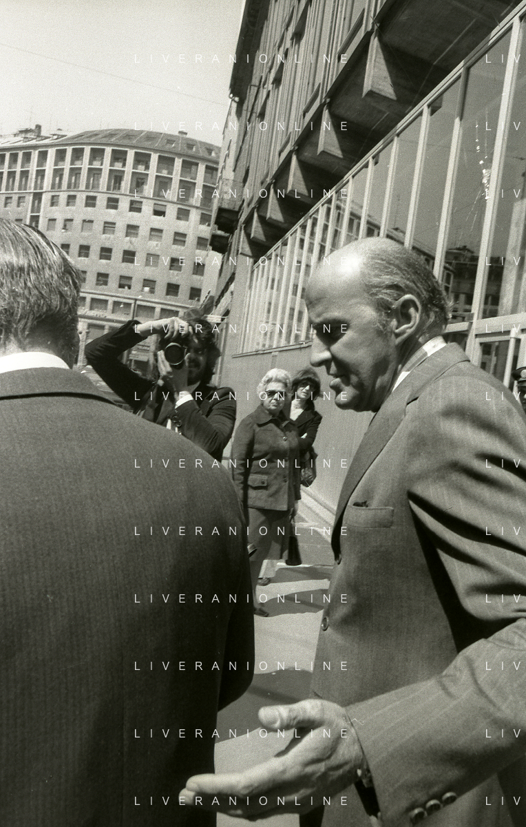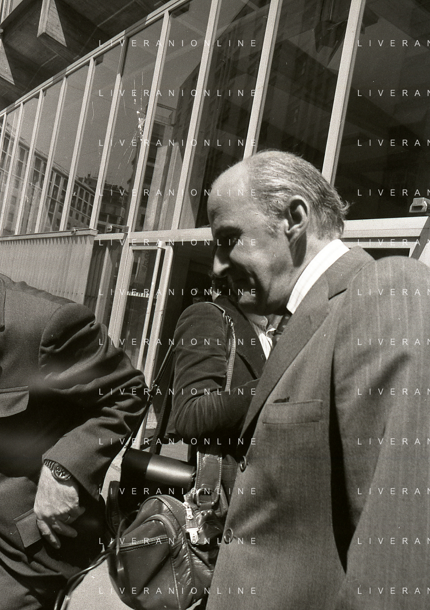 RETROSPETTIVA LEOPOLDO PIRELLI INDUSTRIALE NELLA FOTO LEOPOLDO PIRELLI ALL'USCITA IN VIA PANTANO DA ASSOLOMBARDA NELL'ANNO 1976 AG ALDO LIVERANI SAS