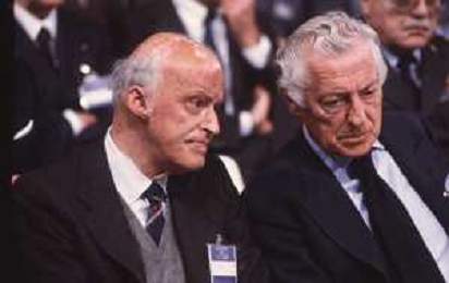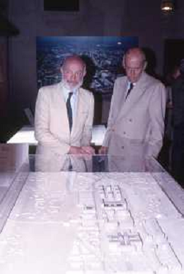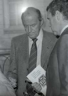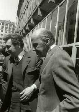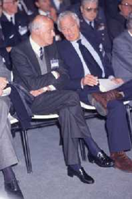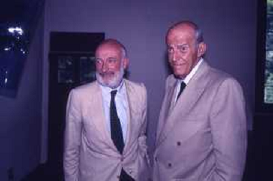 DIAP-RETROSPETTIVA LEOPOLDO PIRELLI INDUSTRIALE NELLA FOTO LEOPOLDO PIRELLI NELL'ANNO 1988 CON VITTORIO GREGOTTI AG ALDO LIVERANI SAS