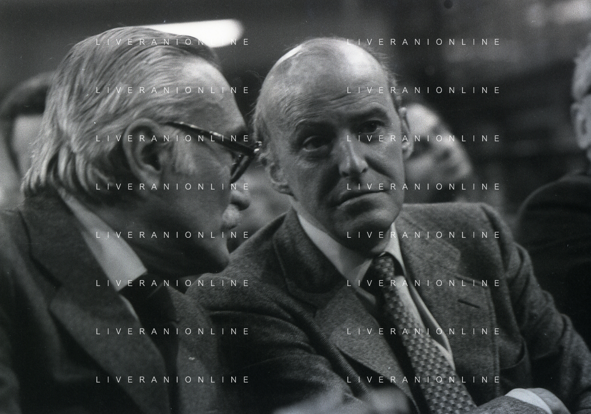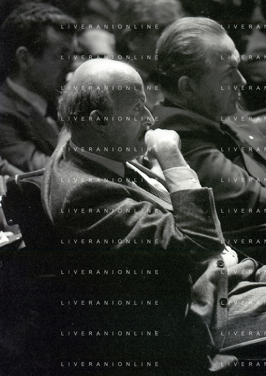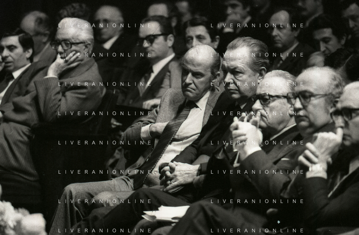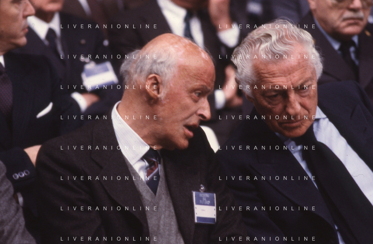 RETROSPETTIVA LEOPOLDO PIRELLI INDUSTRIALE NELLA FOTO LEOPOLDO PIRELLI PRESENZIA A UN CONVEGNO A MILANO NELL'ANNO 1977 AG ALDO LIVERANI SAS