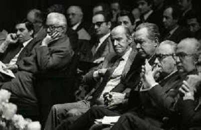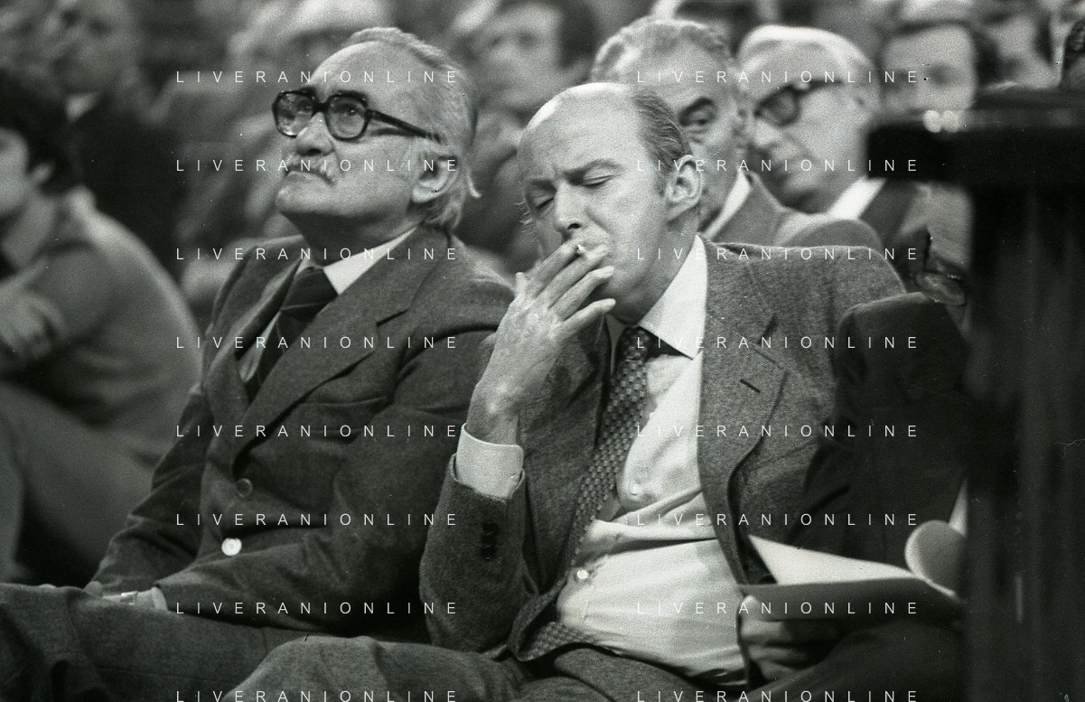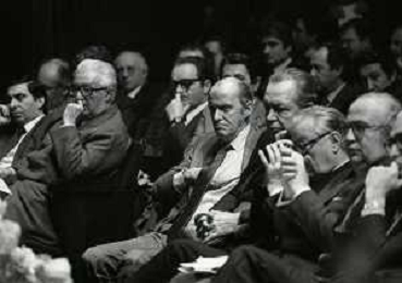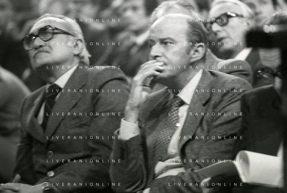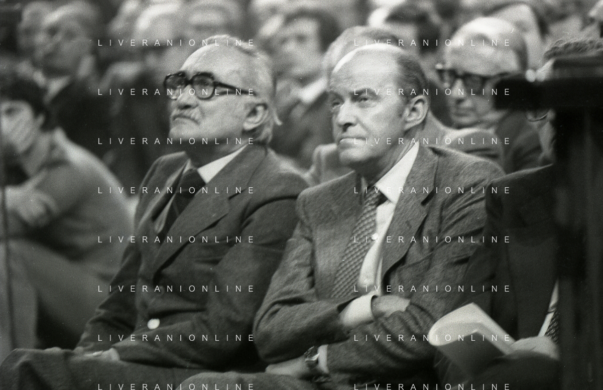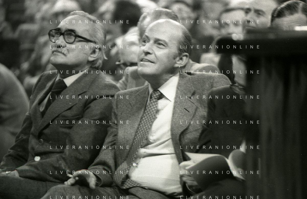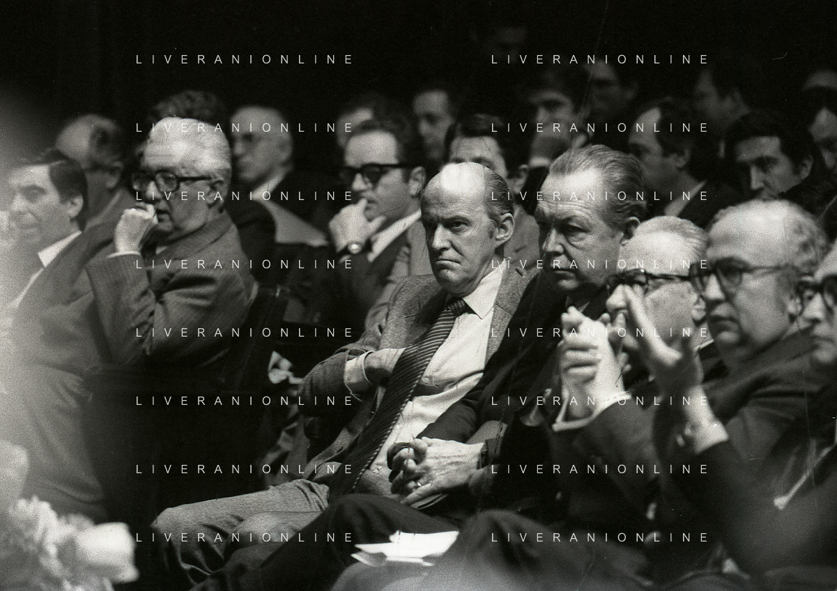 RETROSPETTIVA LEOPOLDO PIRELLI INDUSTRIALE NELLA FOTO LEOPOLDO PIRELLI PRESENZIA A UN CONVEGNO A MILANO NELL'ANNO 1977 AG ALDO LIVERANI SAS