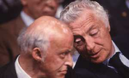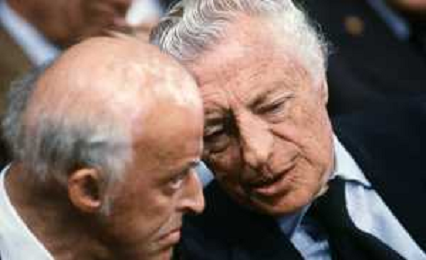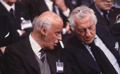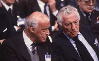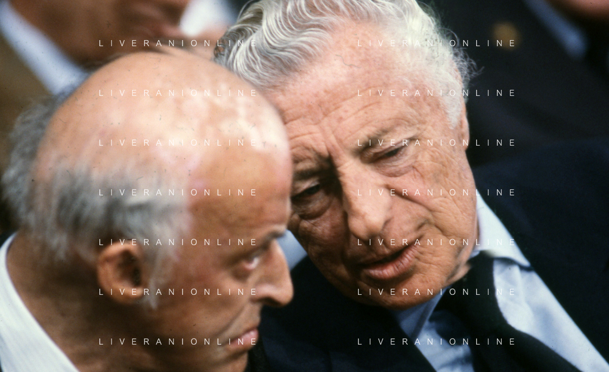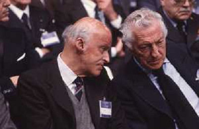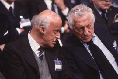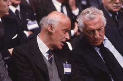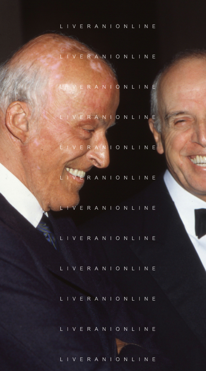 DIAP-RETROSPETTIVA LEOPOLDO PIRELLI INDUSTRIALE NELLA FOTO LEOPOLDO PIRELLI CON GIANNI AGNELLI NELL'ANNO 1984 A MILANO AG ALDO LIVERANI SAS
