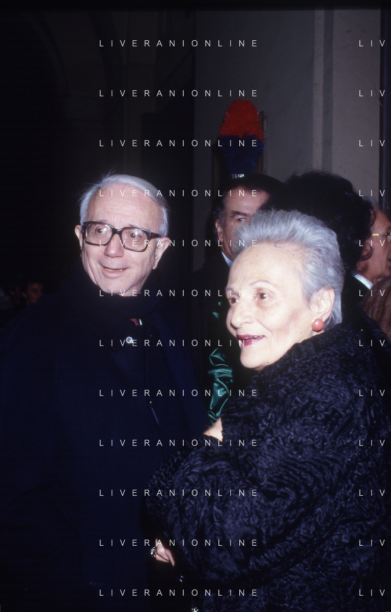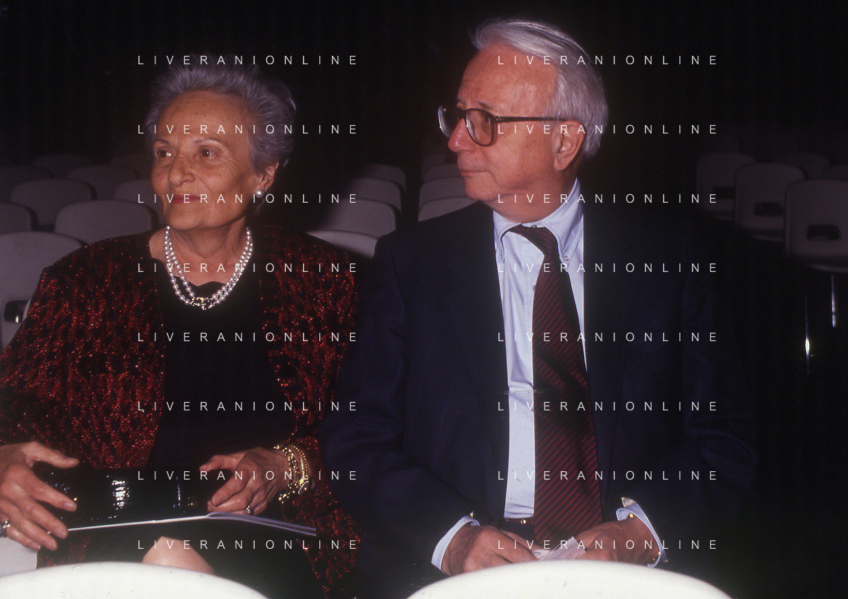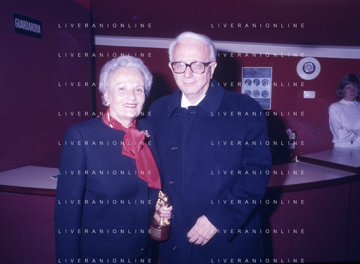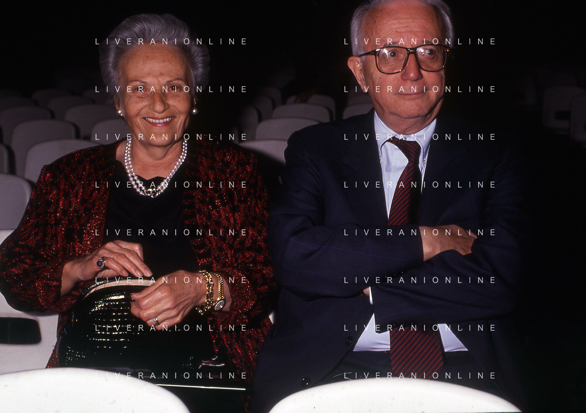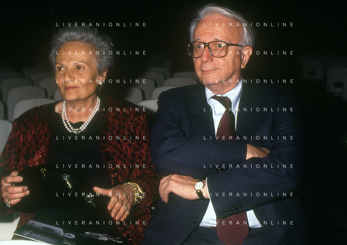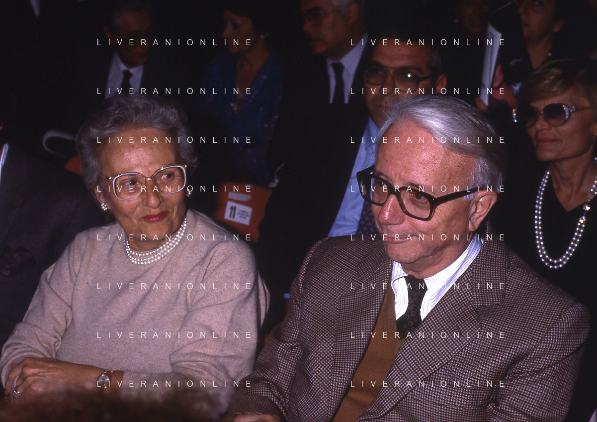 RETROSPETTIVA ENZO BIAGI GIORNALISTA E SCRITTORE E CONDUTTORE TELEVISIVO NELLA FOTO ENZO BIAGI A MILANO CON LA MOGLIE LUCIA GHETTI NELL'ANNO 1987 AG ALDO LIVERANI SAS