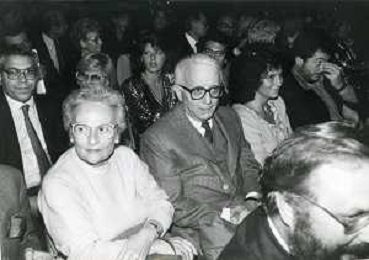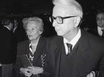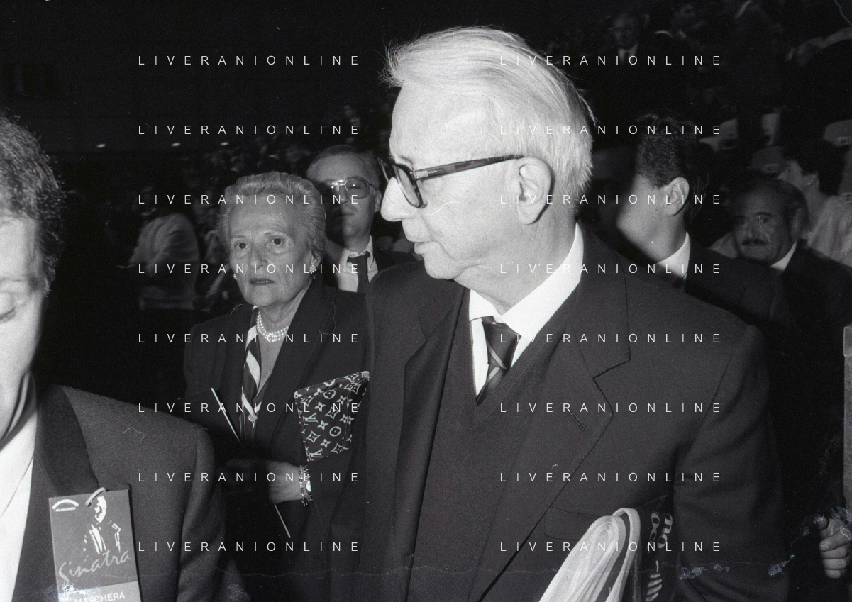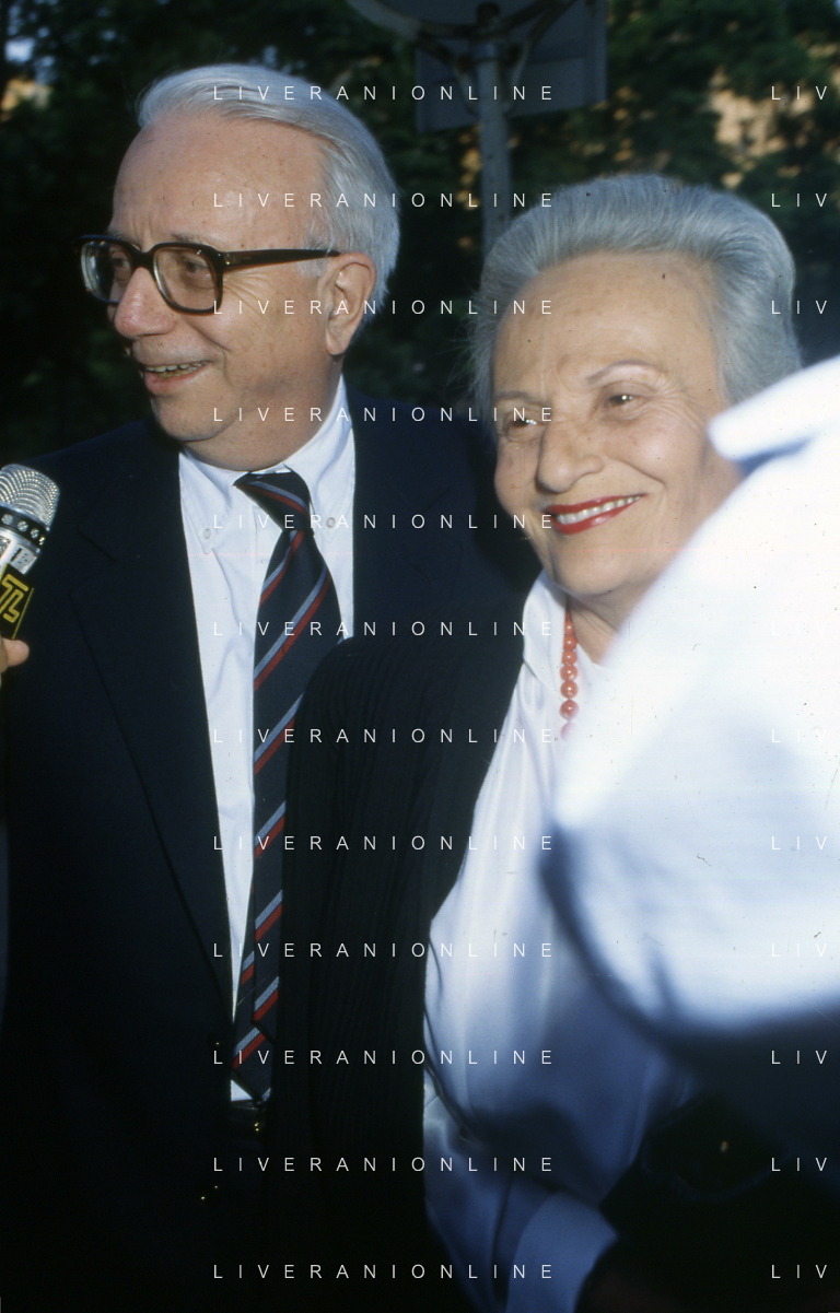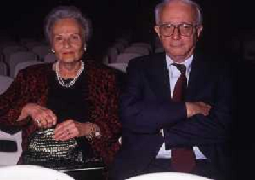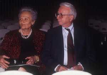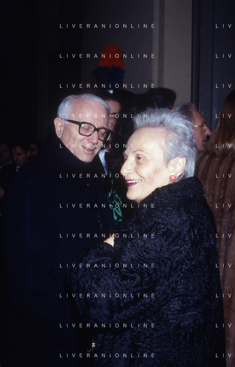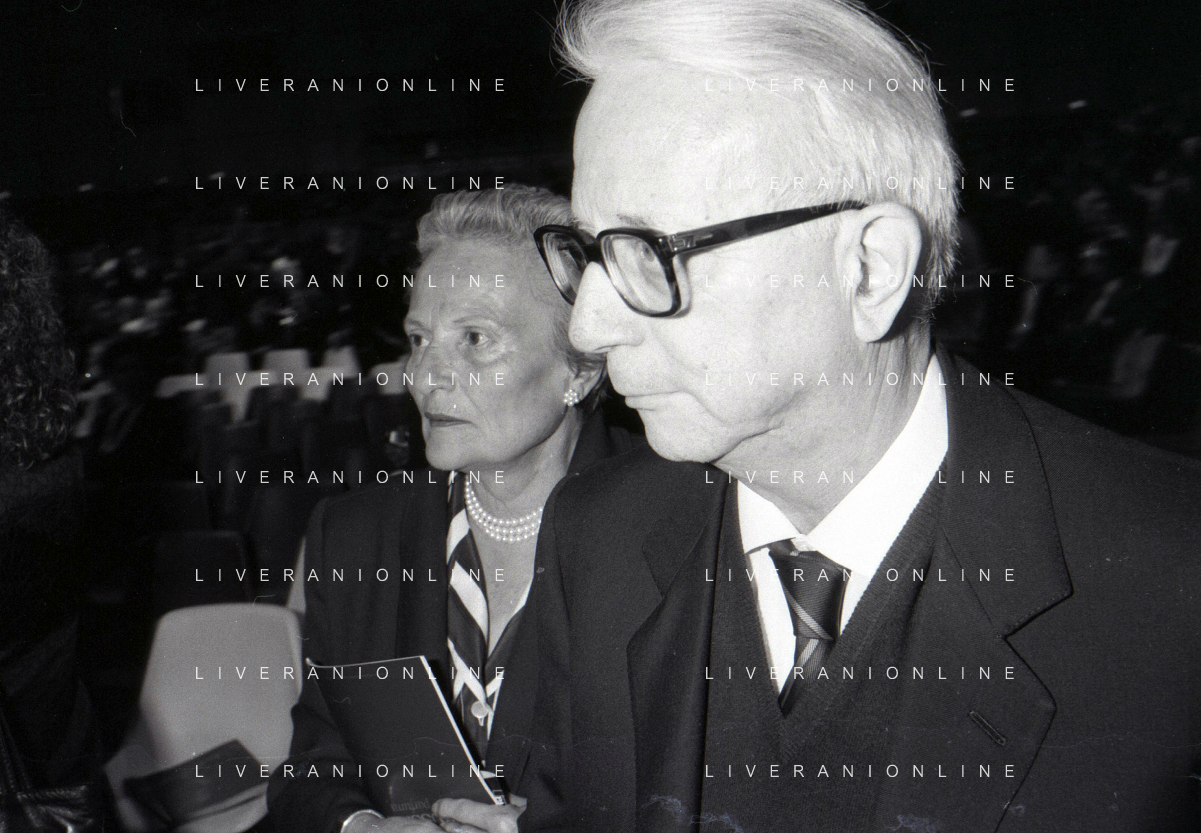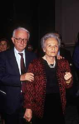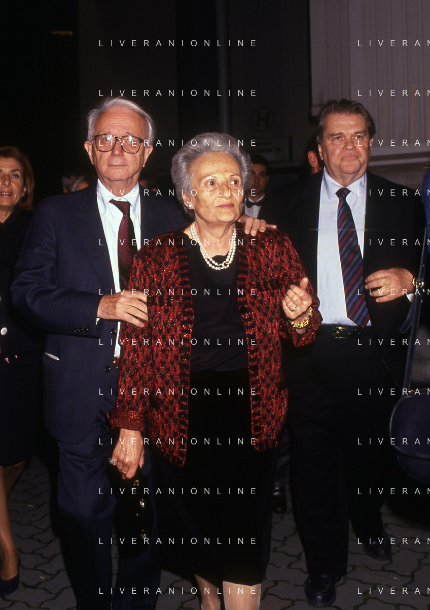 RETROSPETTIVA ENZO BIAGI GIORNALISTA E SCRITTORE E CONDUTTORE TELEVISIVO NELLA FOTO ENZO BIAGI A MILANO CON LA MOGLIE LUCIA GHETTI NELL'ANNO 1987 AG ALDO LIVERANI SAS