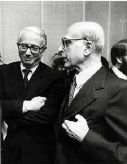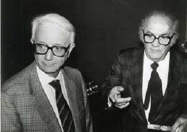 RETROSPETTIVA ENZO BIAGI GIORNALISTA E SCRITTORE E CONDUTTORE TELEVISIVO NELLA FOTO ENZO BIAGI CON IL REGISTA FEDERICO FELLINI A MILANO AG ALDO LIVERANI SAS