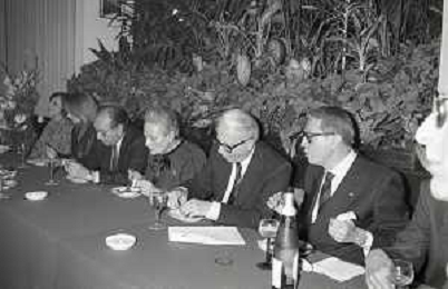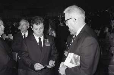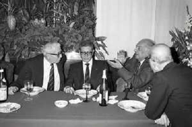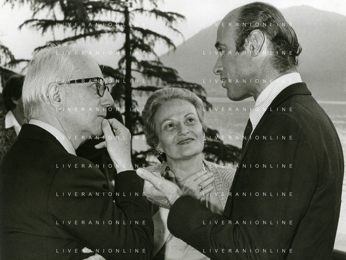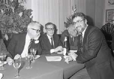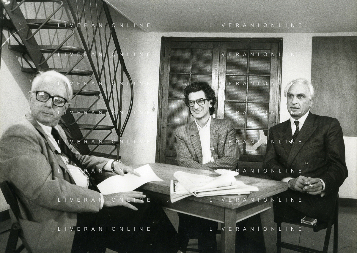 NEG-RETROSPETTIVA ENZO BIAGI GIORNALISTA-SCRITTORE E CONDUTTORE TELEVISIVO NELLA FOTO ENZO BIAGI CON DANIELE PIOMBI E GIGI VESIGNA A MILANO NELL'ANNO 1985 AG ALDO LIVERANI SAS