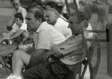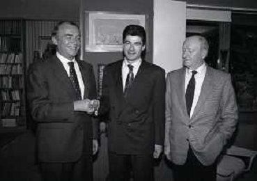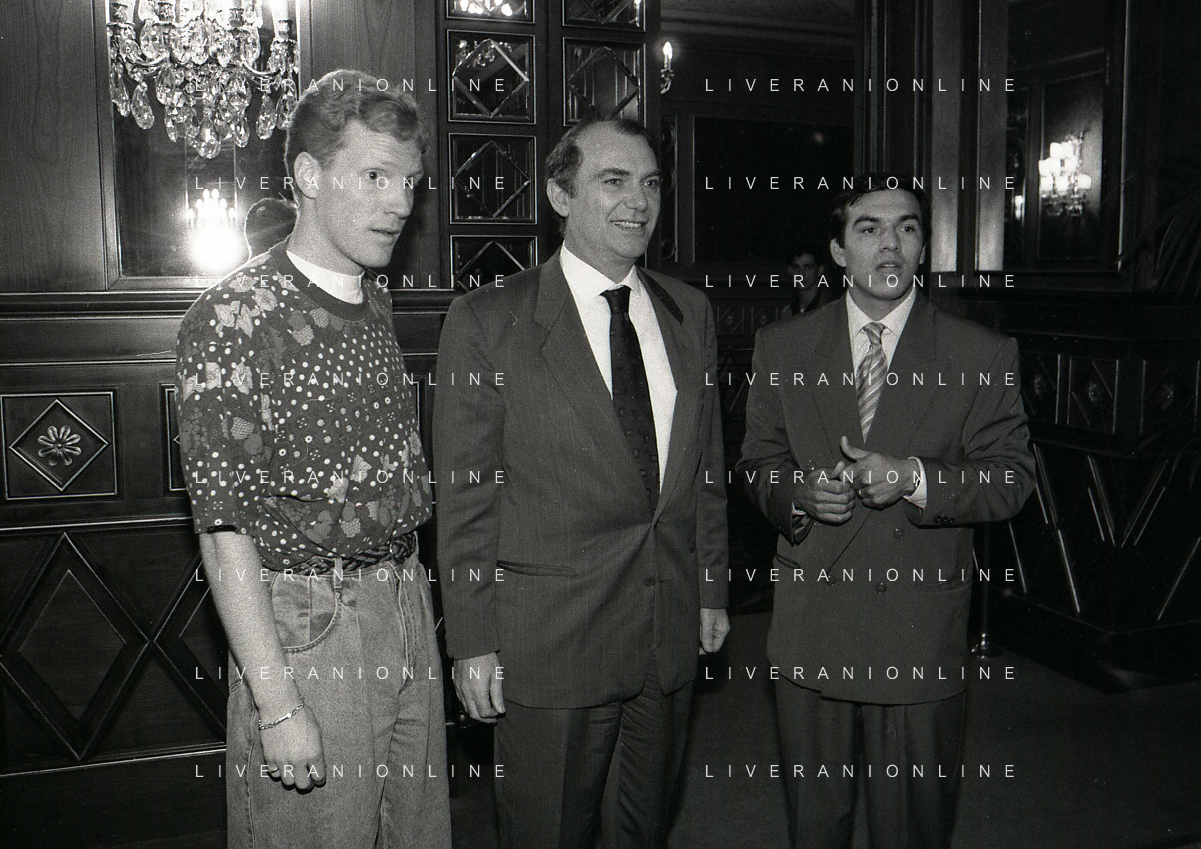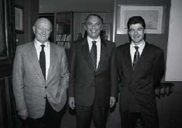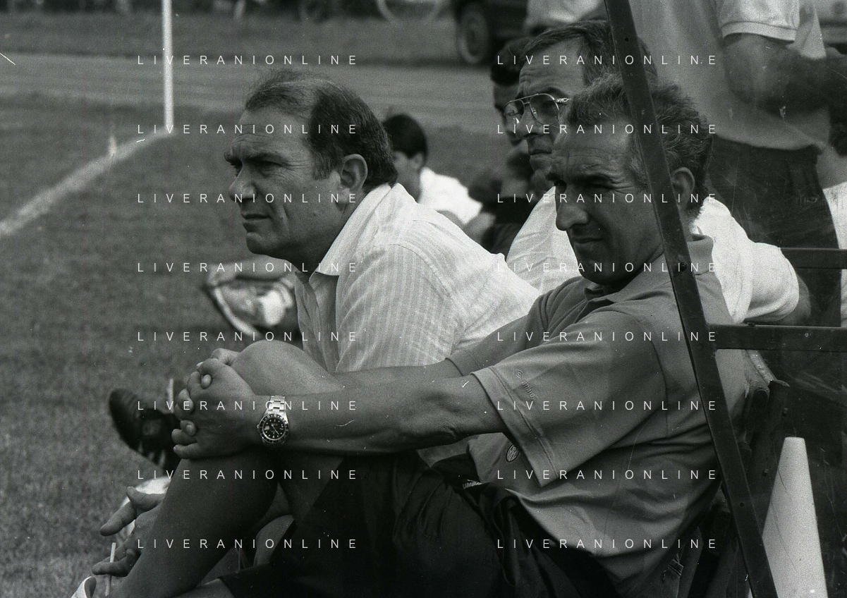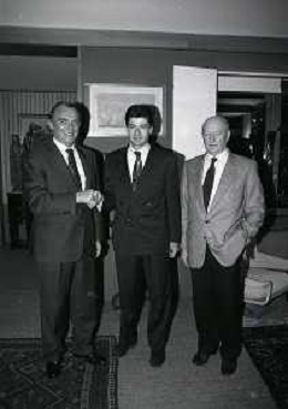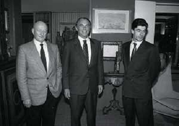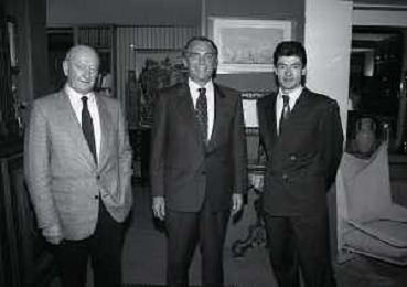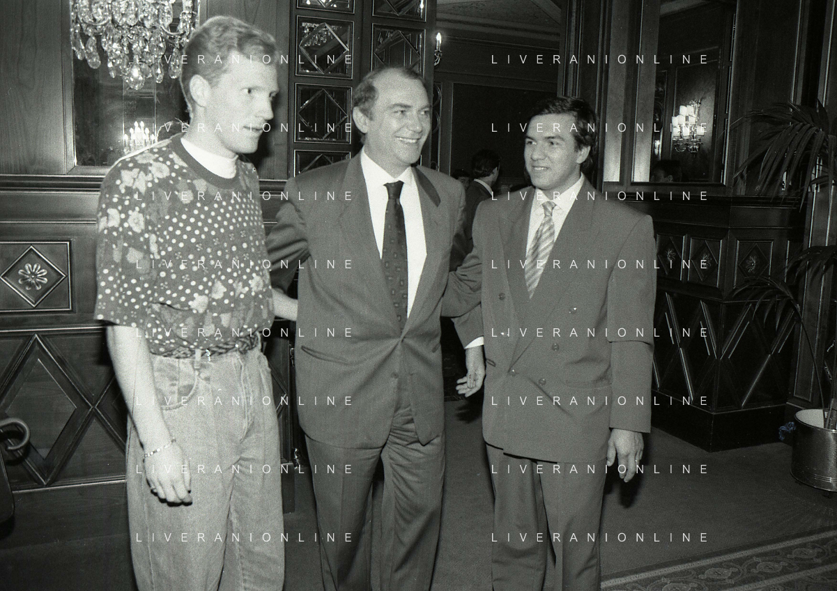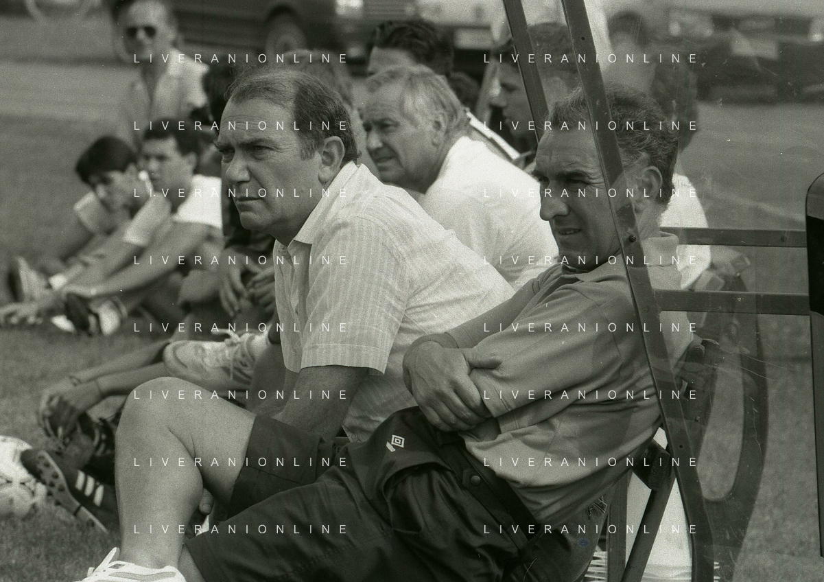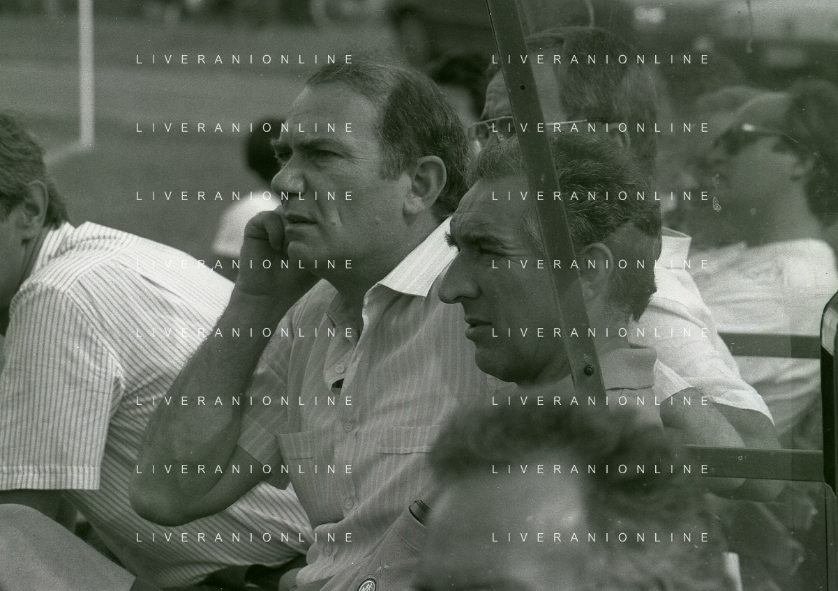 RETROSPETTIVA ERNESTO PELLEGRINI PRESIDENTE FC INTER NELLA FOTO ERNESTO PELLEGRINI NELL'ANNO 1992-1993 CON AGOSTINO OMINI E GIANNI BUGNO IN VILLA DA ERNESTO PELLEGRINI AG ALDO LIVERANI SAS