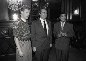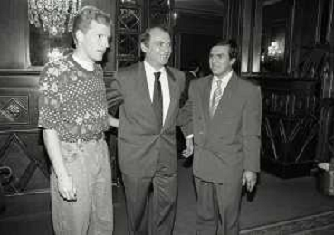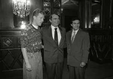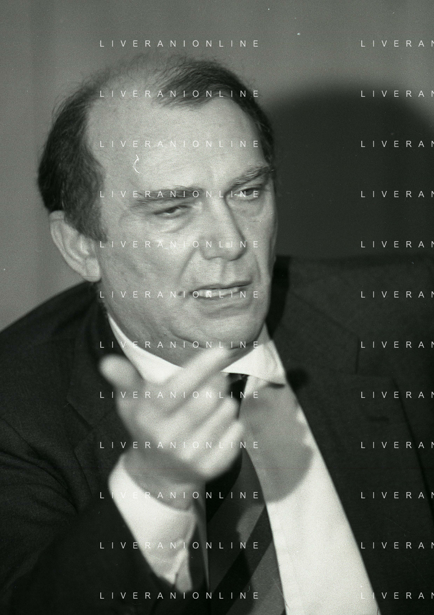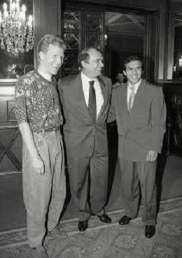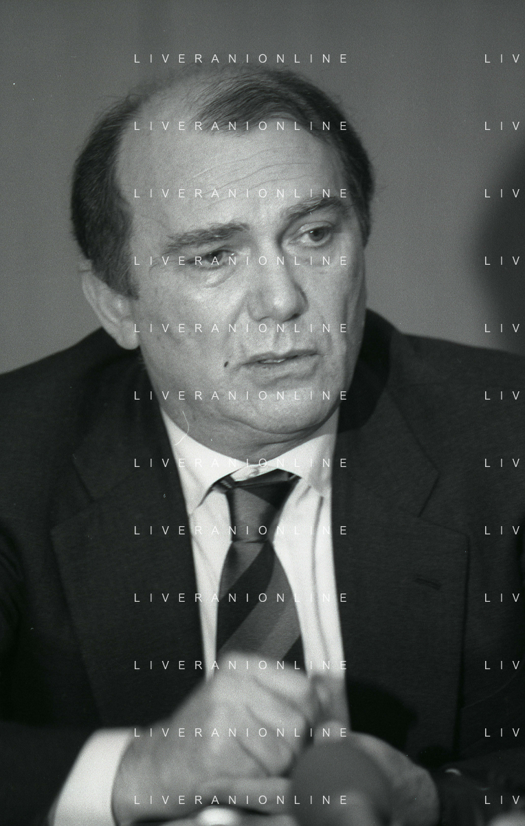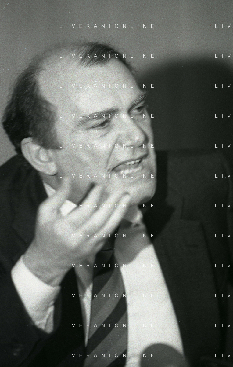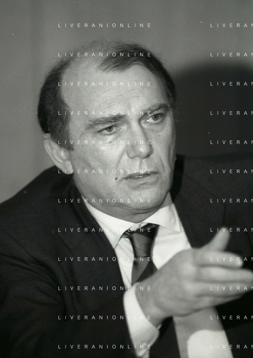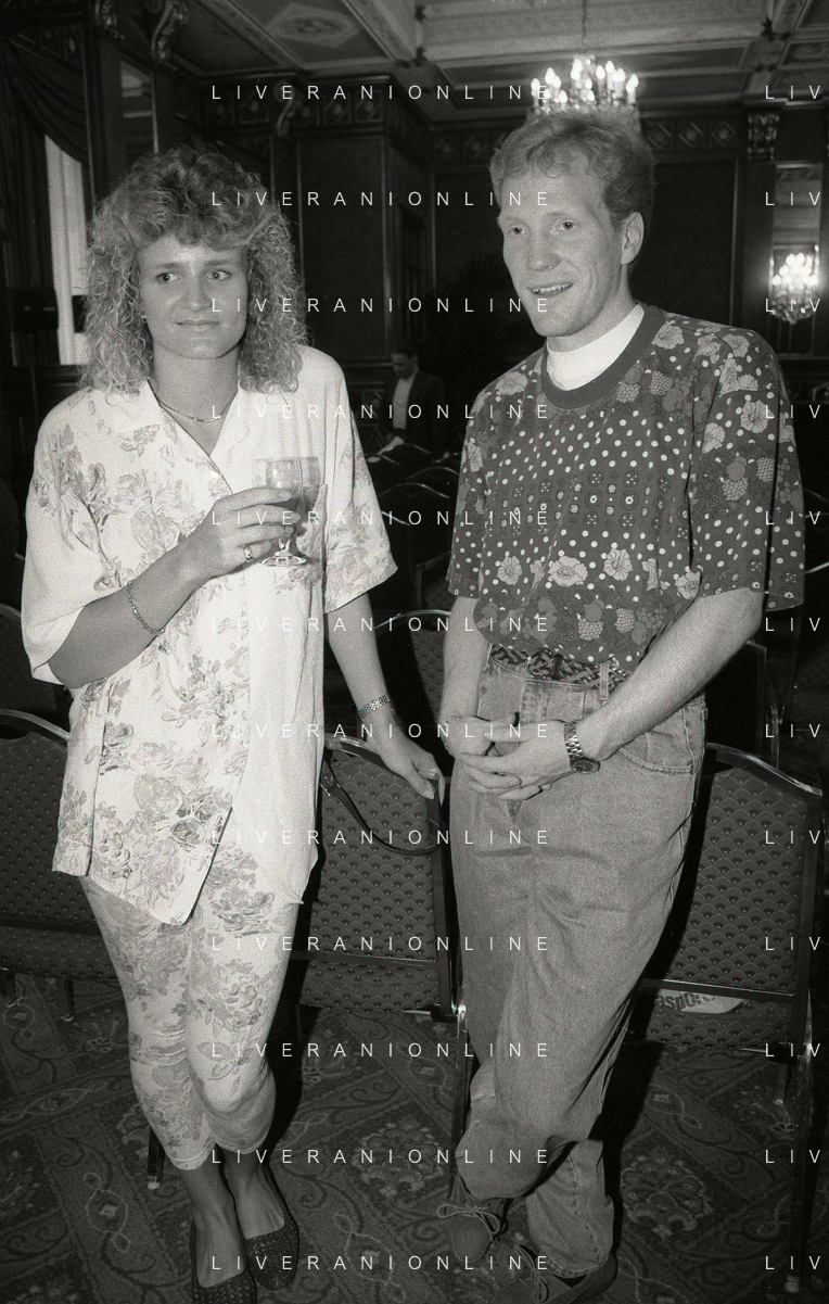 RETROSPETTIVA ERNESTO PELLEGRINI PRESIDENTE FC INTER NELLA FOTO ERNESTO PELLEGRINI NELL'ANNO 1992-1993 ALLA PRESENTAZIONE DEI NUOVI ACQUISTI MATTHIAS SAMMER E RUBEN SOSA AG ALDO LIVERANI SAS