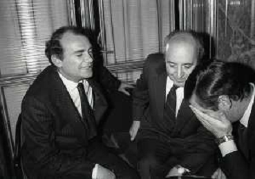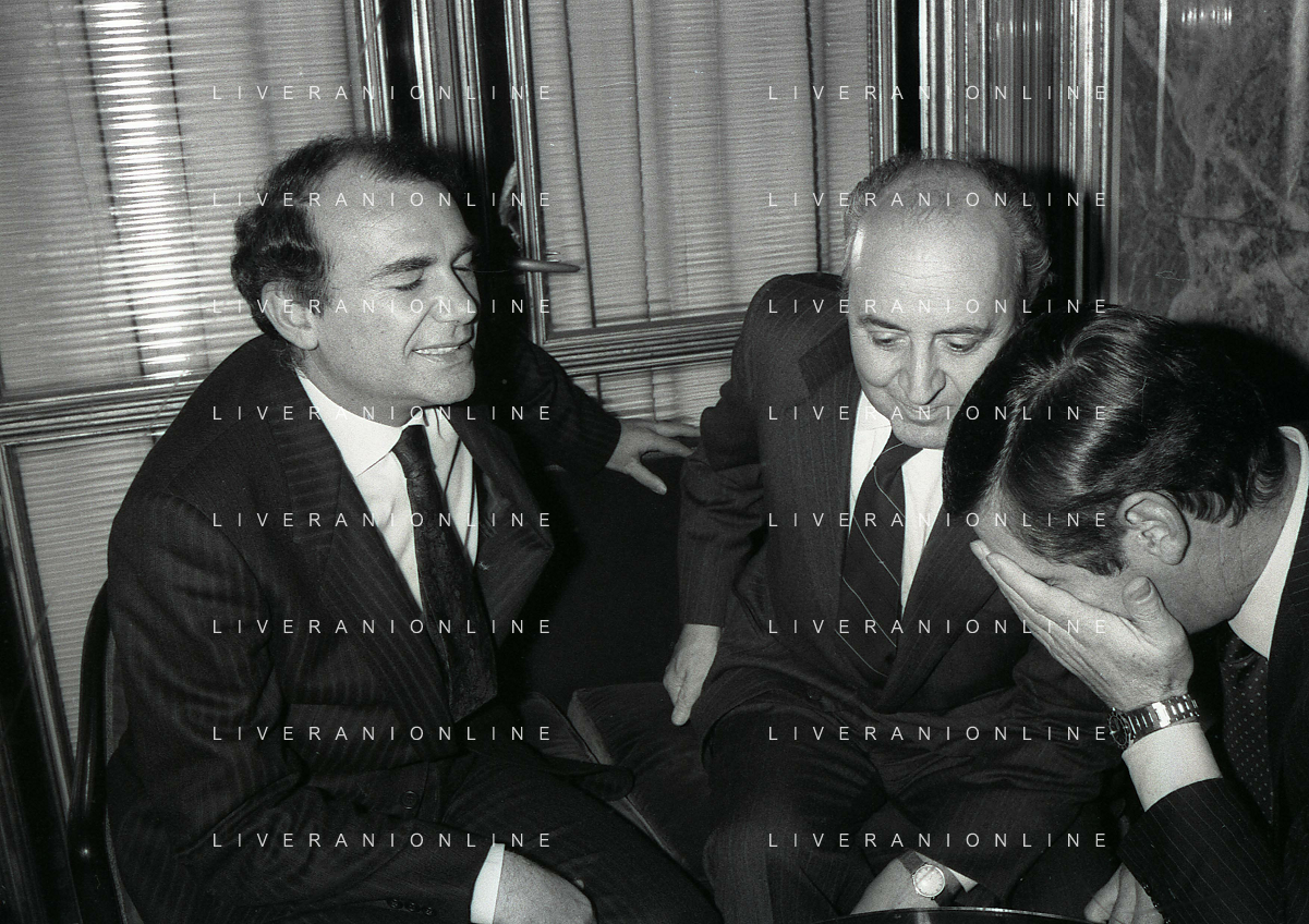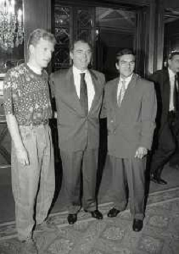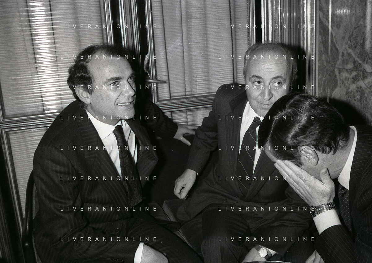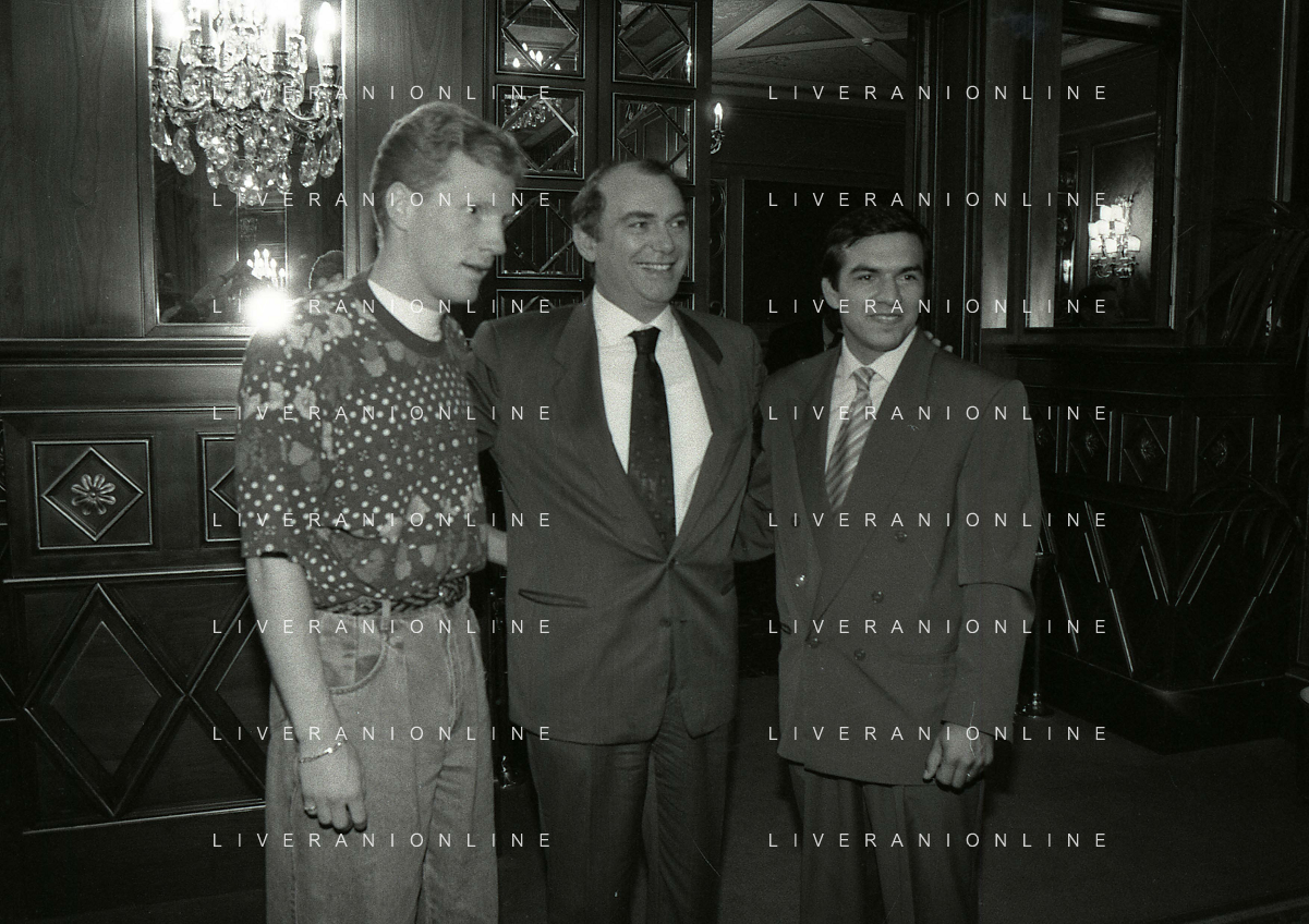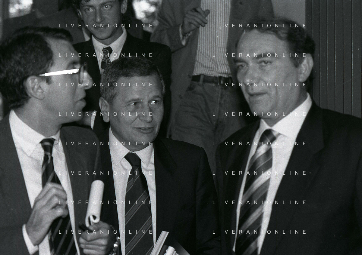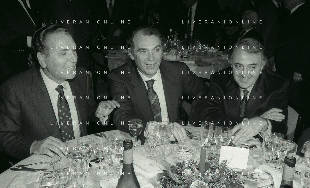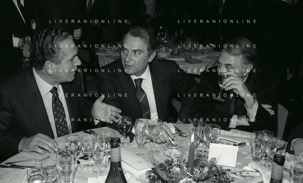 RETROSPETTIVA ERNESTO PELLEGRINI PRESIDENTE FC INTER NELLA FOTO ERNESTO PELLEGRINI NELL'ANNO 1990 CON CORRADO FERLAINO PRESIDENTE NAPOLI CALCIO E ANTONIO MATARRESE PRESIDENTE DEL BARI CALCIO AG ALDO LIVERANI SAS