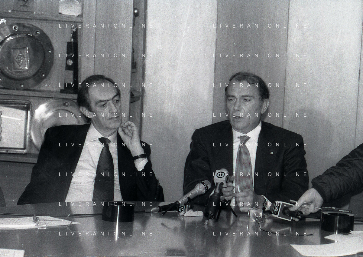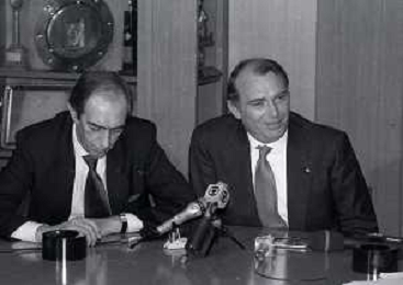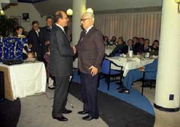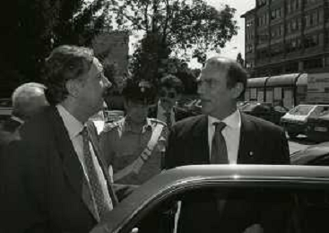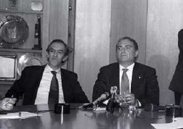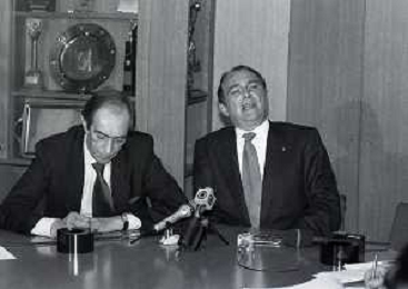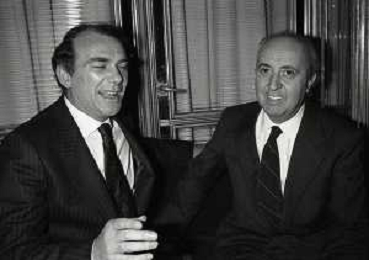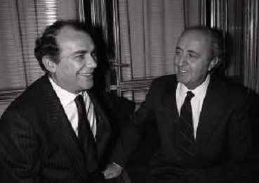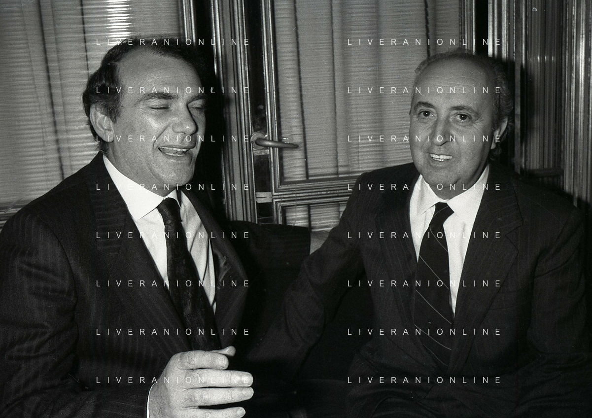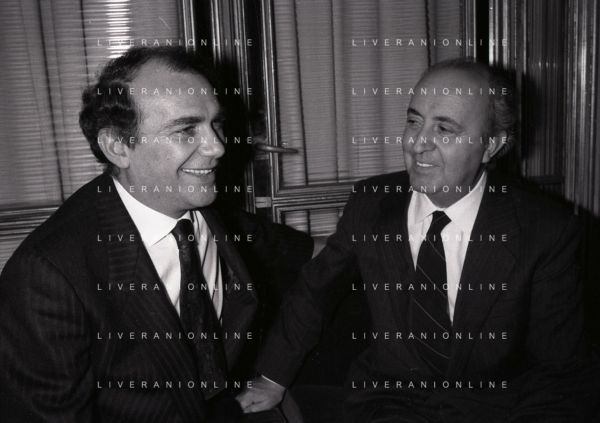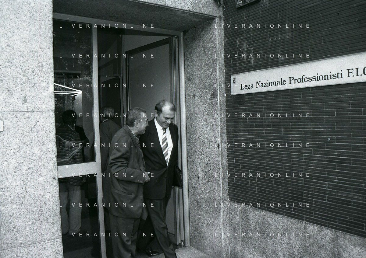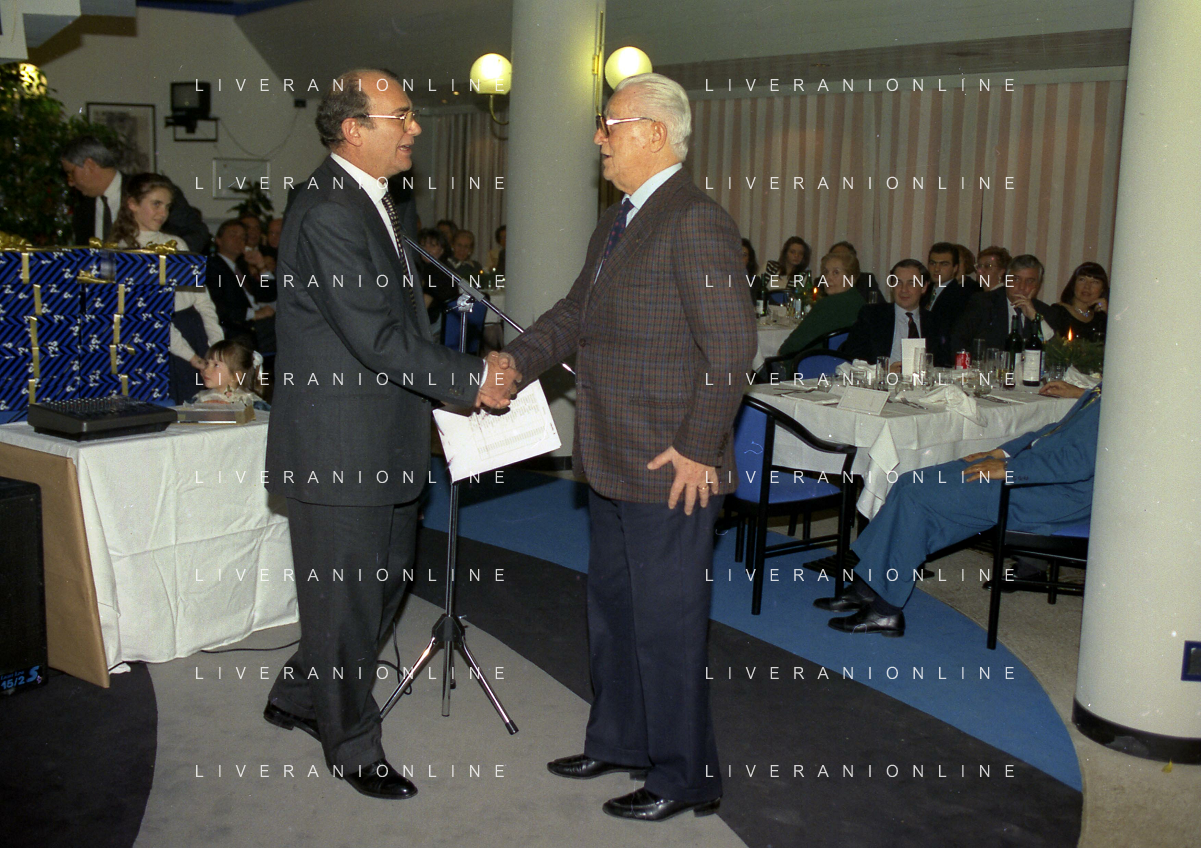 RETROSPETTIVA ERNESTO PELLEGRINI PRESIDENTE FC INTER NELLA FOTO ERNESTO PELLEGRINI NELL'ANNO 1992-1993 CON IL GIORNAISTA FABIO MONTI AG ALDO LIVERANI SAS