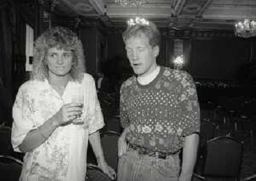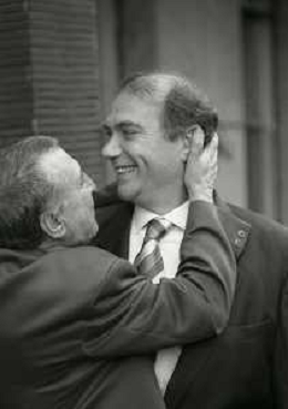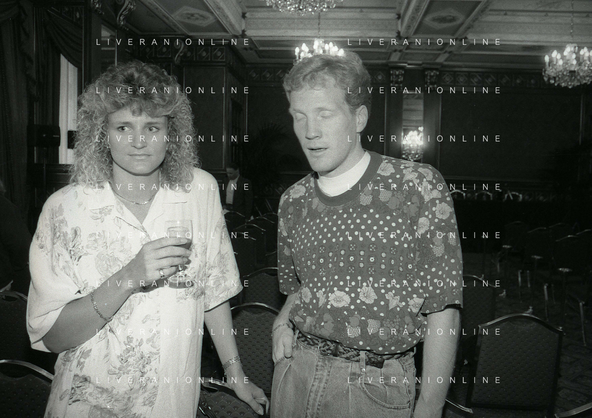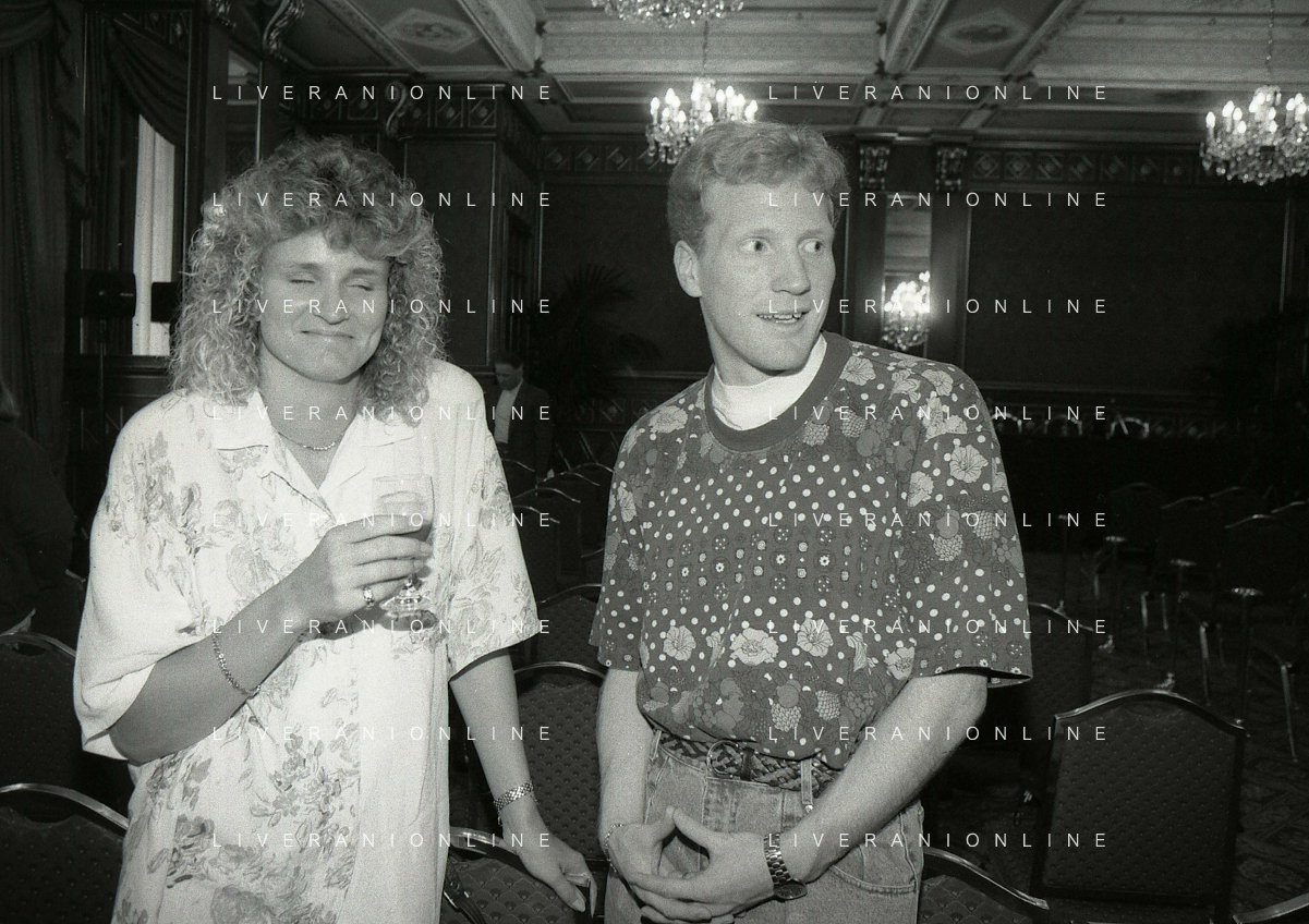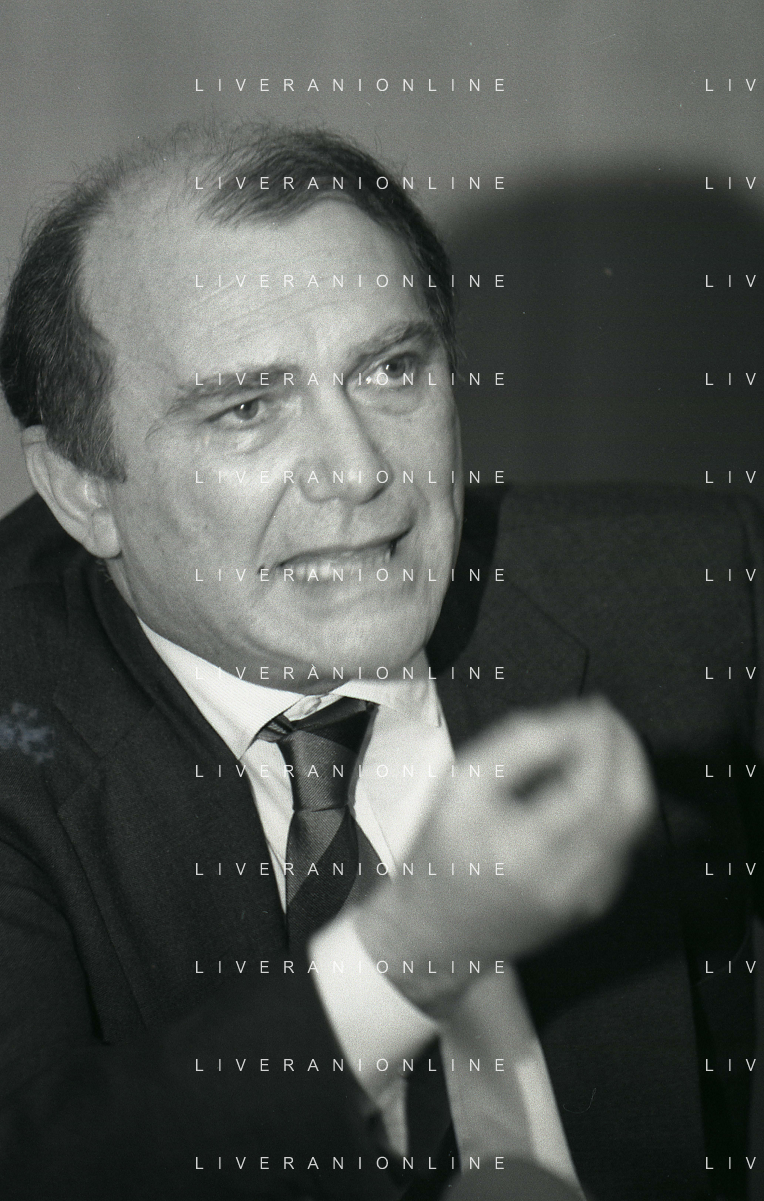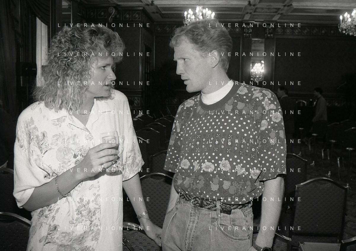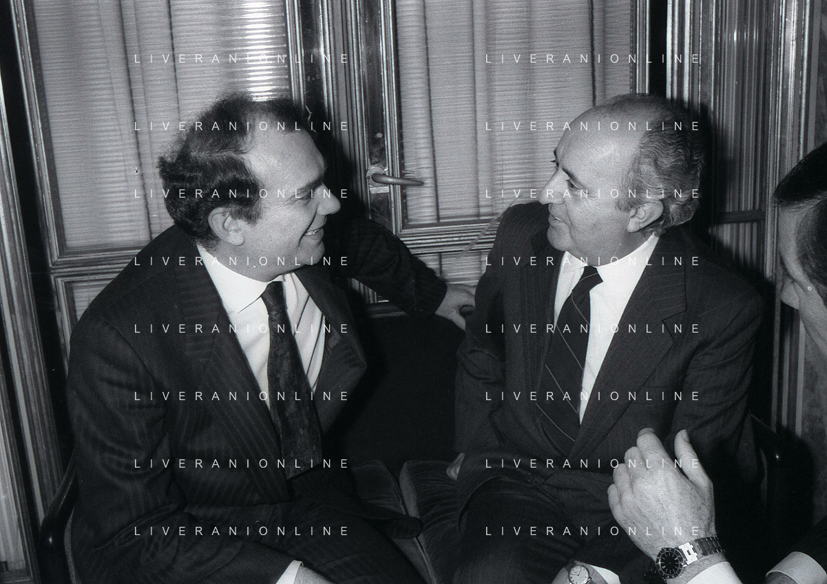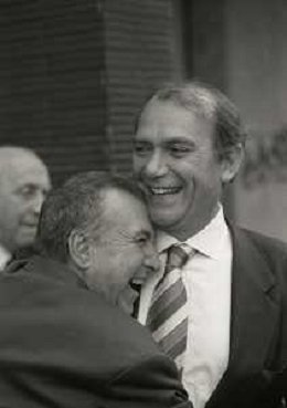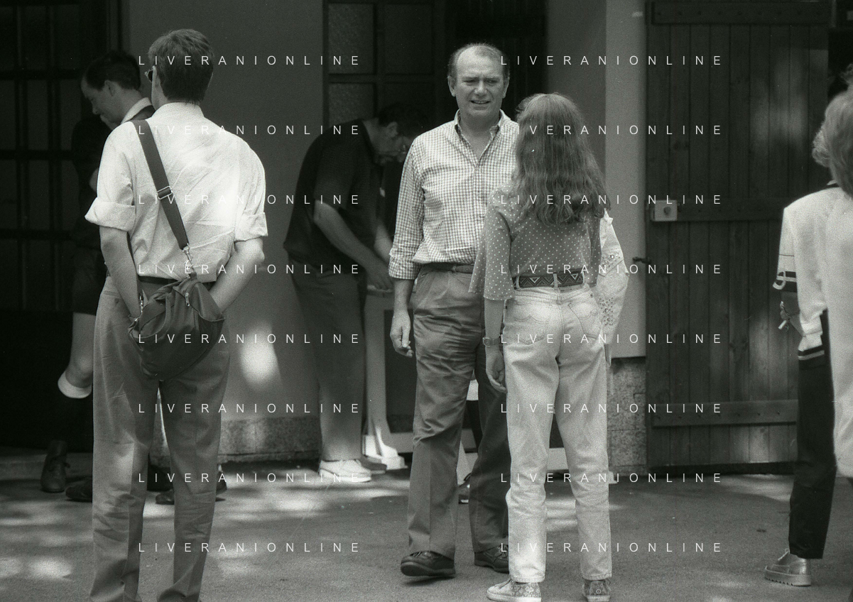 RETROSPETTIVA ERNESTO PELLEGRINI PRESIDENTE FC INTER NELLA FOTO ERNESTO PELLEGRINI NELL'ANNO 1992-1993 CON IL GIORNAISTA FABIO MONTI AG ALDO LIVERANI SAS