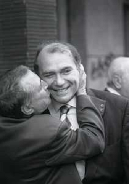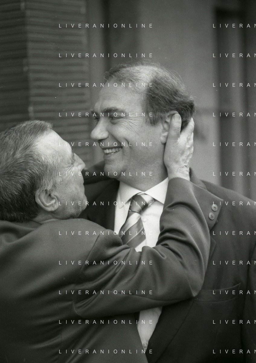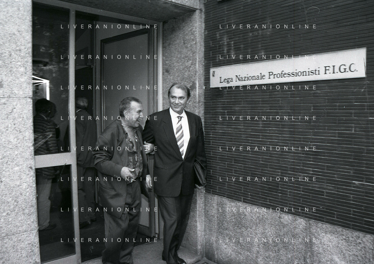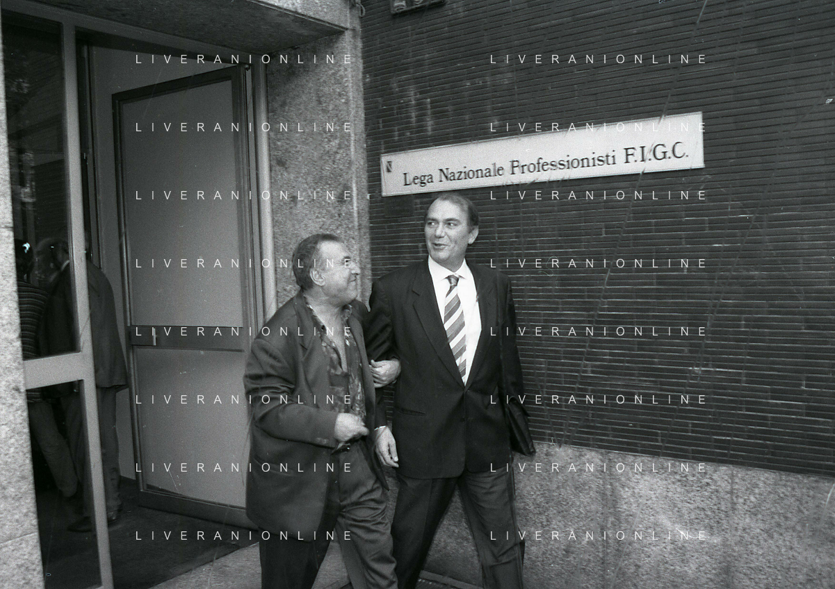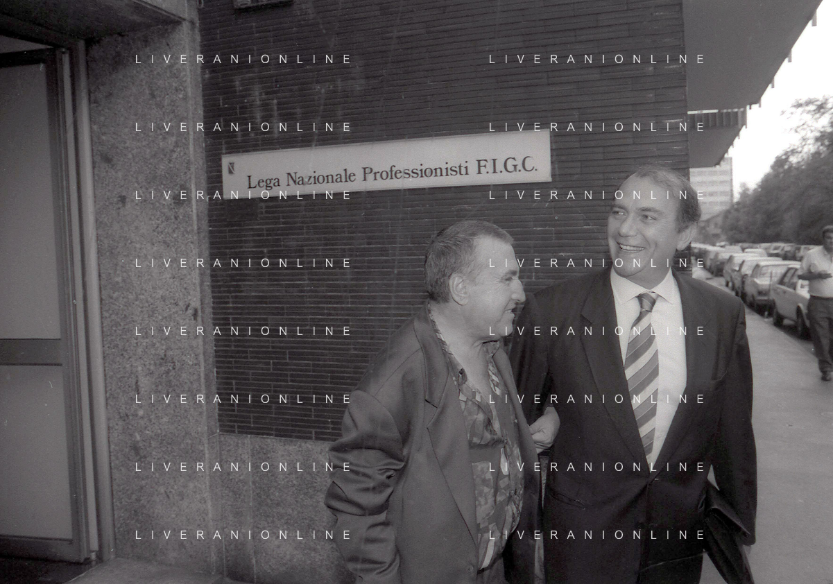 RETROSPETTIVA ERNESTO PELLEGRINI PRESIDENTE FC INTER NELLA FOTO ERNESTO PELLEGRINI NELL'ANNO 1992-1993 IN LEGA CALCIO CON JIMMY IL FENOMENO AG ALDO LIVERANI SAS