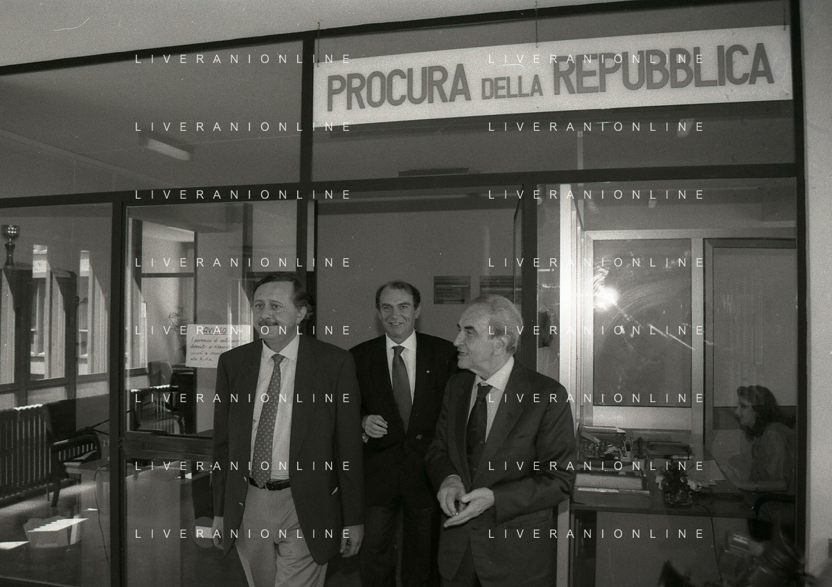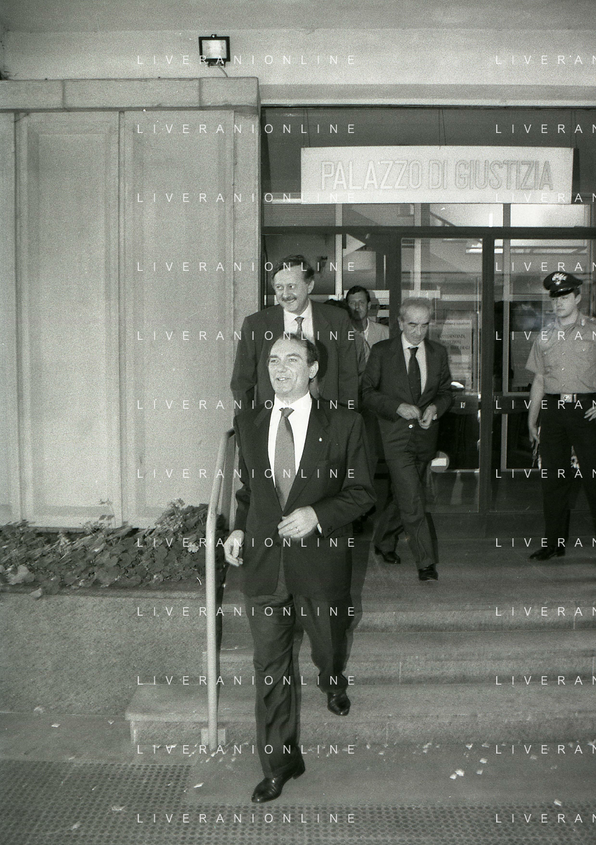 RETROSPETTIVA ERNESTO PELLEGRINI PRESIDENTE INTER NELLA FOTO ERNESTO PELLEGRINI PRESIDENTE INTER NELL'ANNO 1994 AL TRIBUNALE DI VERBANIA CON I SUOI LEGALI L'AVVOCATO MASSIMO DI NOIA E L'AVVOCATO GIUSEPPE PRISCO AG ALDO LIVERANI SAS