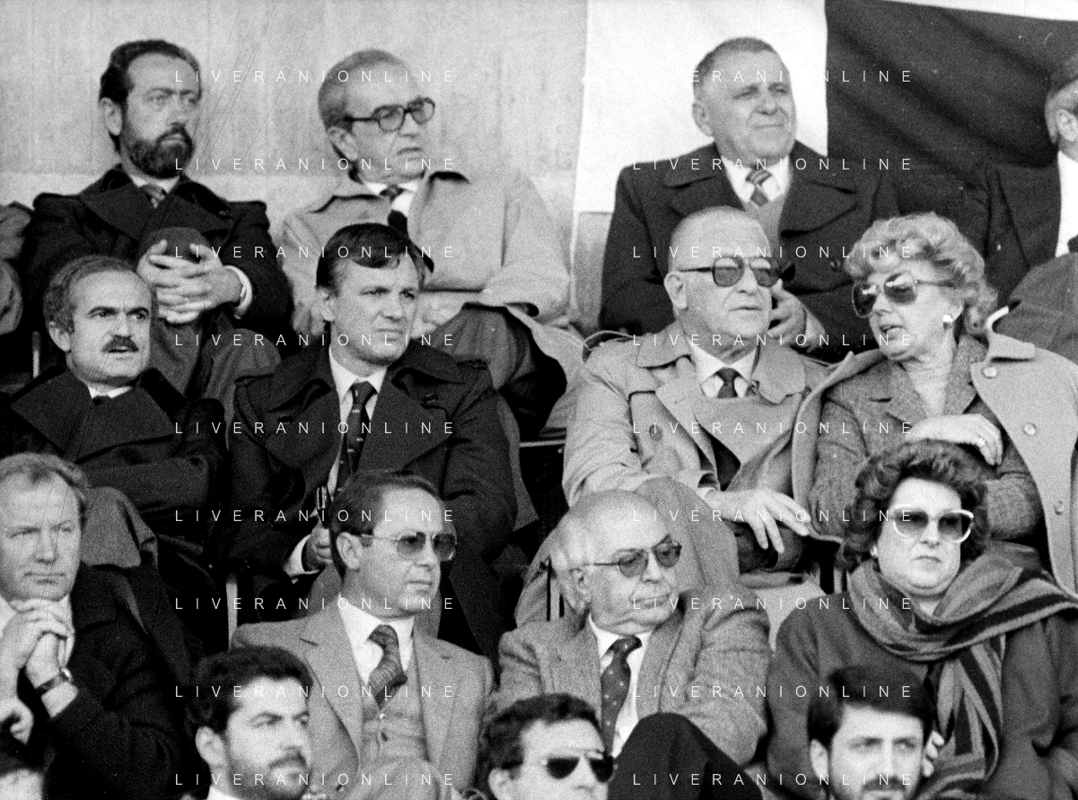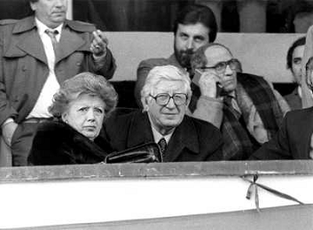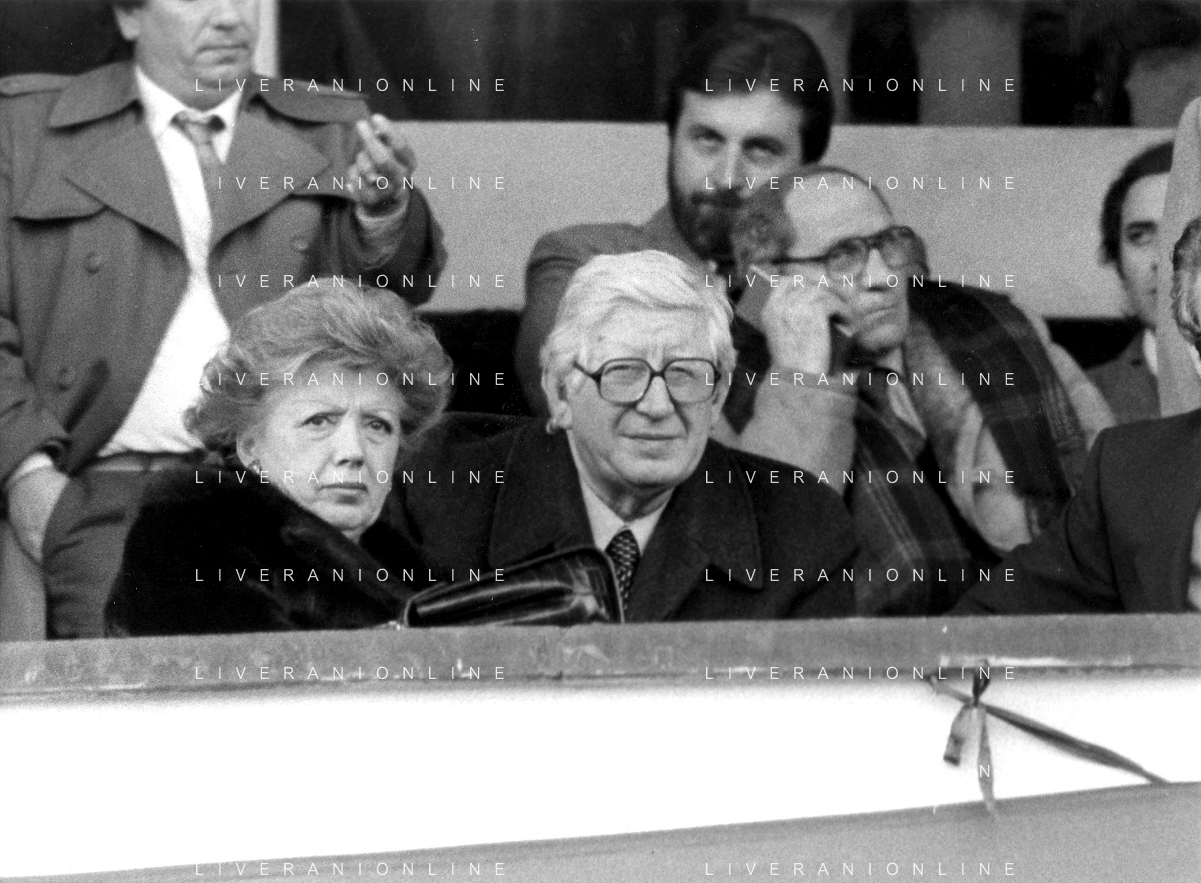 Ivanoe Fraizzoli Presidente Inter anni '70 in tribuna con la moglie, Sandro Mazzola, Giancarlo Beltrami e Peppino Prisco ph archivio ag. aldo liverani sas retrospettiva